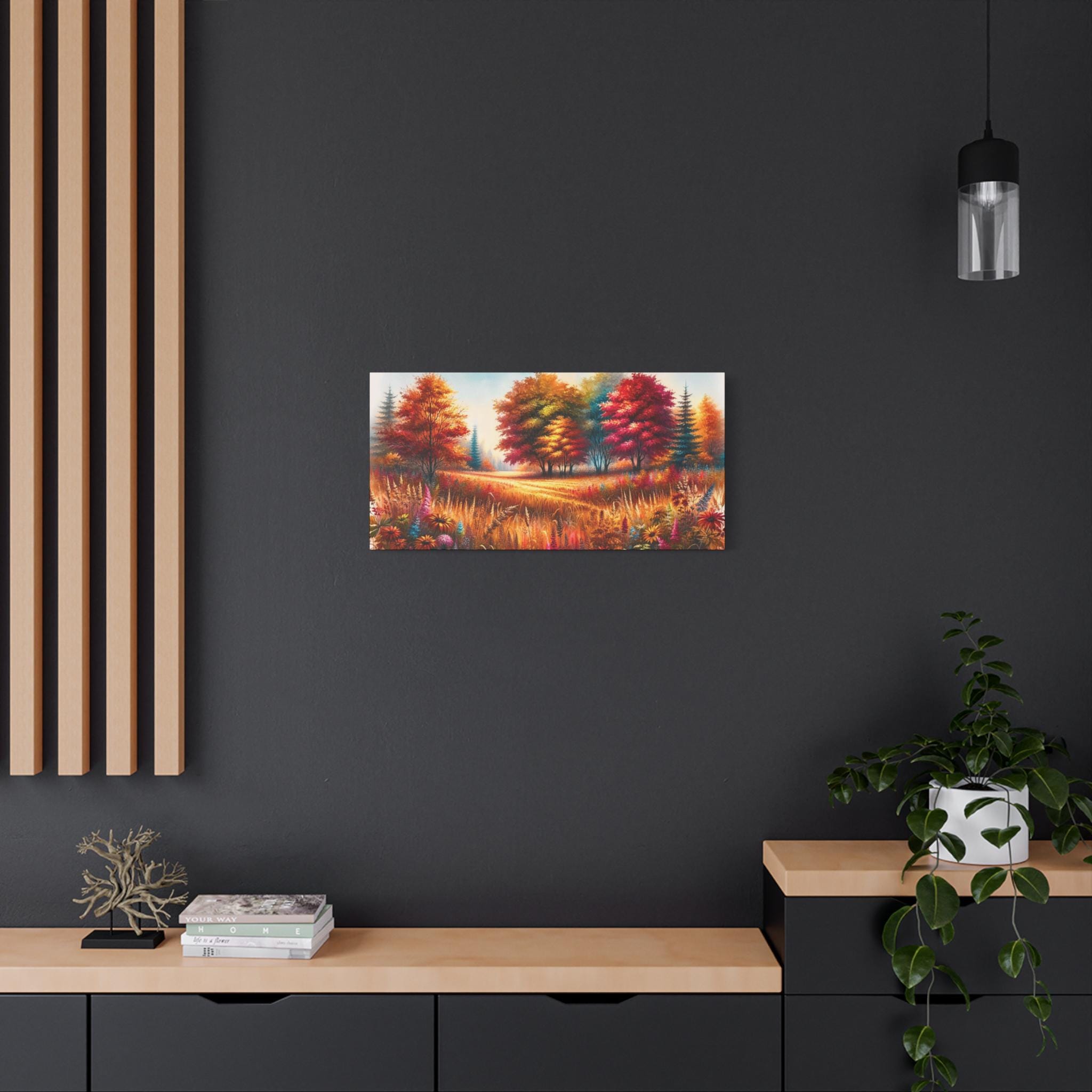 Transform your living space with this stunning matte canvas wall art, featuring a vibrant autumn landscape that brings the warmth and beauty of fall indoors. This captivating piece exudes a cozy, inviting atmosphere, perfect for brightening up any room or creating a serene focal point in your home. Ideal for art lovers, nature enthusiasts, or anyone looking to enhance their decor, this canvas is perfect for housewarmings, holidays, or simply as a thoughtful gift to celebrate life's moments. Versatile enough to fit any style, this artwork can complement both modern and traditional interiors, making it a must-have for your collection.