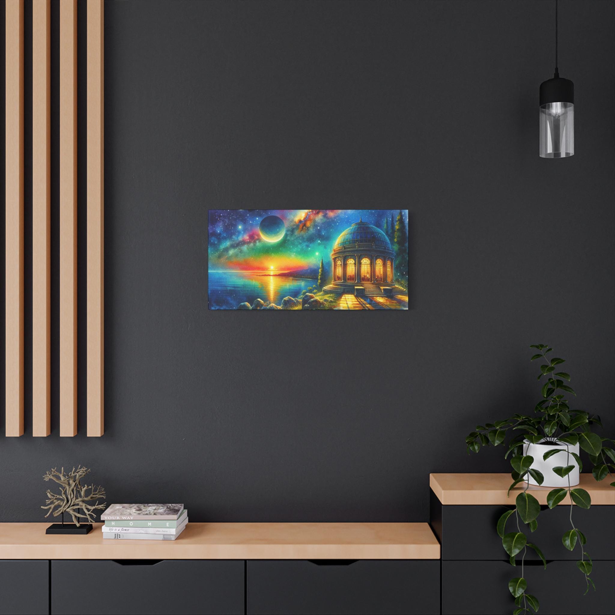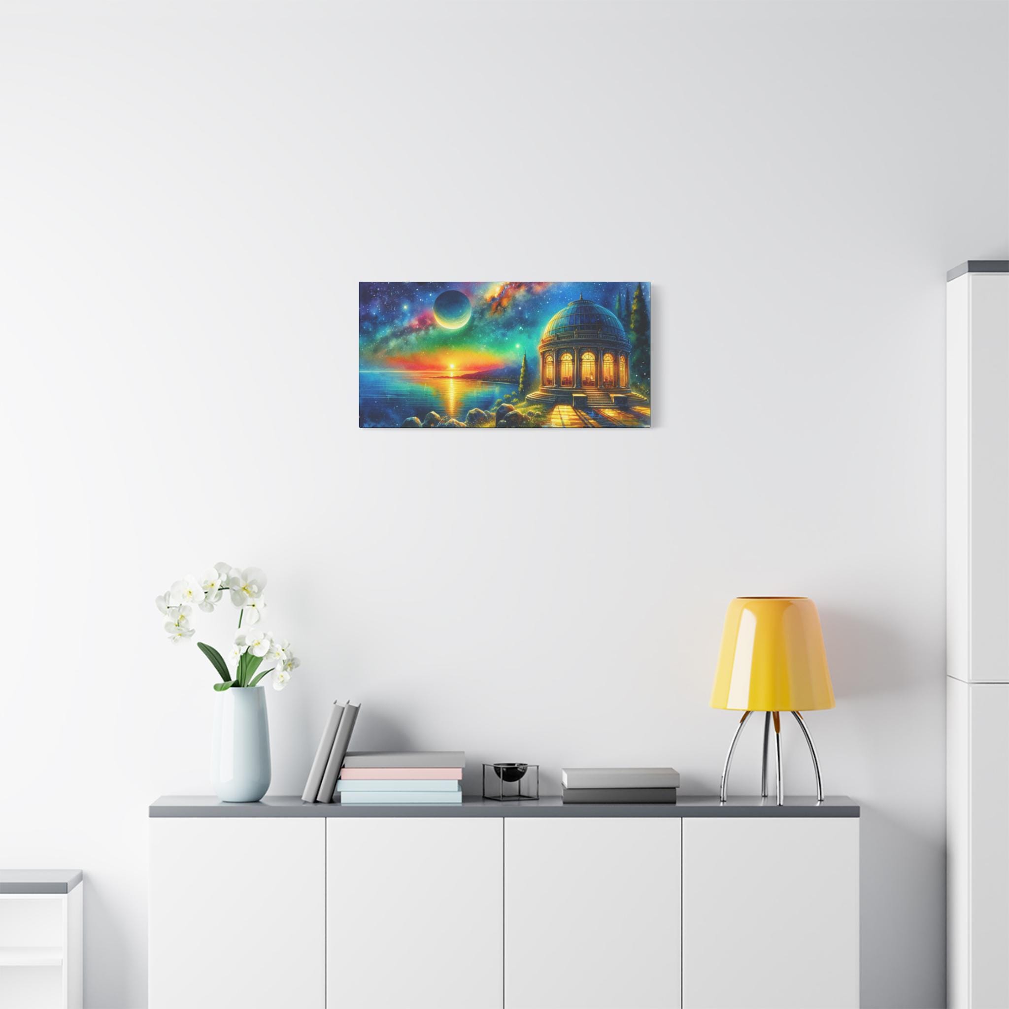 Elevate your space with this stunning Matte Canvas Wall Art. Featuring a vibrant and dreamlike design that captures a serene sunset by a mystical dome by the water, this piece brings a sense of tranquility and wonder to any room. Perfect for living rooms, bedrooms, or offices, it adds a splash of color and imagination to your decor. Ideal for art enthusiasts, dreamers, and anyone looking to create a peaceful atmosphere in their home. This canvas is a wonderful gift for housewarmings, birthdays, or simply to celebrate your love for art. It also makes an excellent addition to seasonal decor, fitting beautifully into a summer escape or a cozy autumn atmosphere.