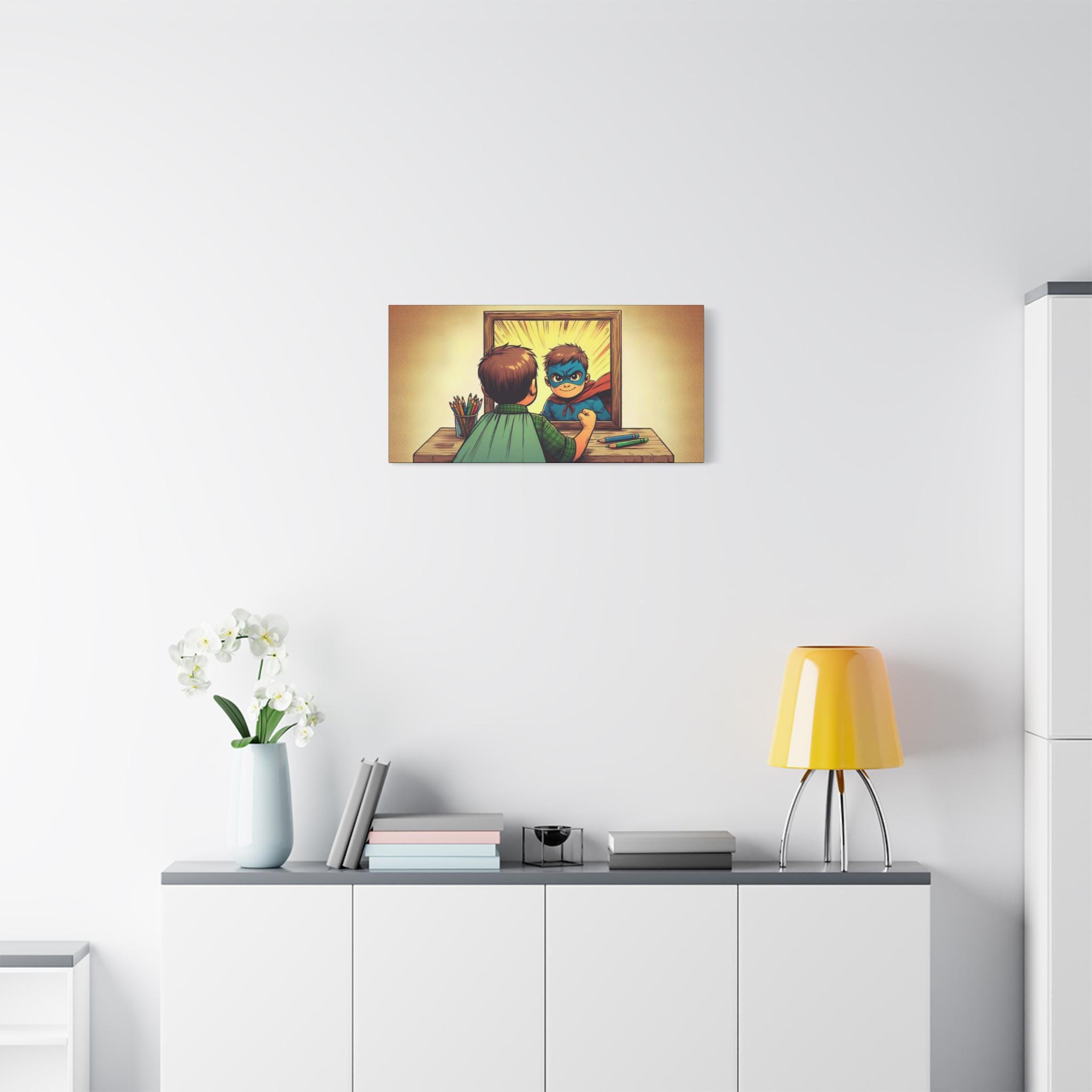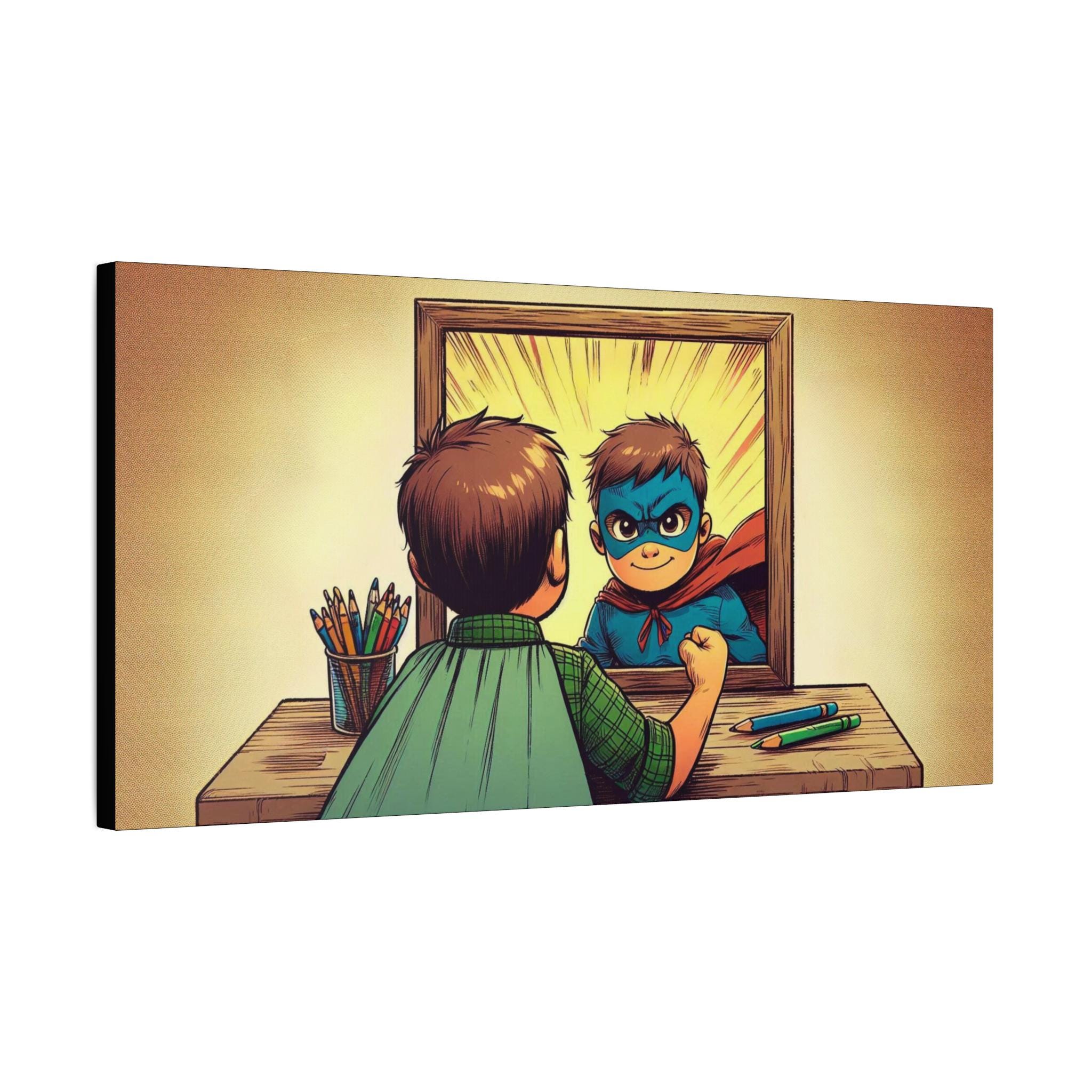 Transform your space with this captivating matte canvas, perfect for adding a touch of whimsy and inspiration to any room. Featuring a delightful illustration of a young superhero gazing into a mirror, this artwork evokes feelings of empowerment and imagination. It's an ideal choice for children's rooms, playrooms, or any creative space. The vibrant colors and quality design make it a great gift for birthdays, holidays, or any celebration that calls for a bit of magic. Perfect for parents, educators, or anyone looking to instill a sense of wonder and creativity in their loved ones!
