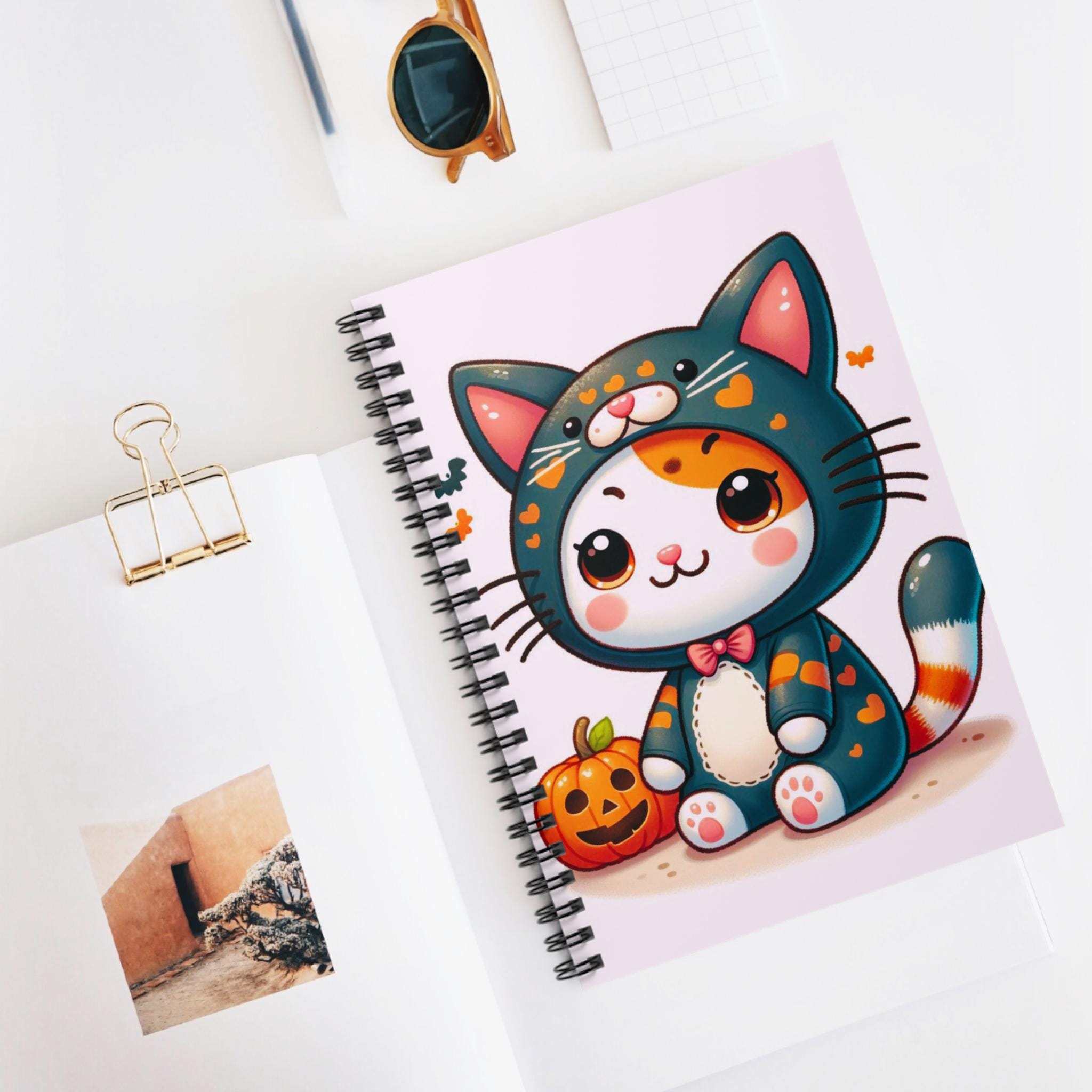 Embrace creativity with this charming Spiral Notebook, perfect for jotting down your thoughts, sketches, or daily musings. Each page invites inspiration with its ruled lines, making it ideal for students, artists, or anyone who loves to write. The notebook's playful design, featuring an adorable character in a cat costume, brings a whimsical touch to your workspace or study nook. It’s perfect for those who appreciate a blend of function and fun in their stationery. This notebook is a great gift for birthdays, back-to-school, or any occasion where a sprinkle of joy is needed. Plus, it’s a wonderful way to prepare for the fall season, making it a delightful addition to your autumn-themed decor.
