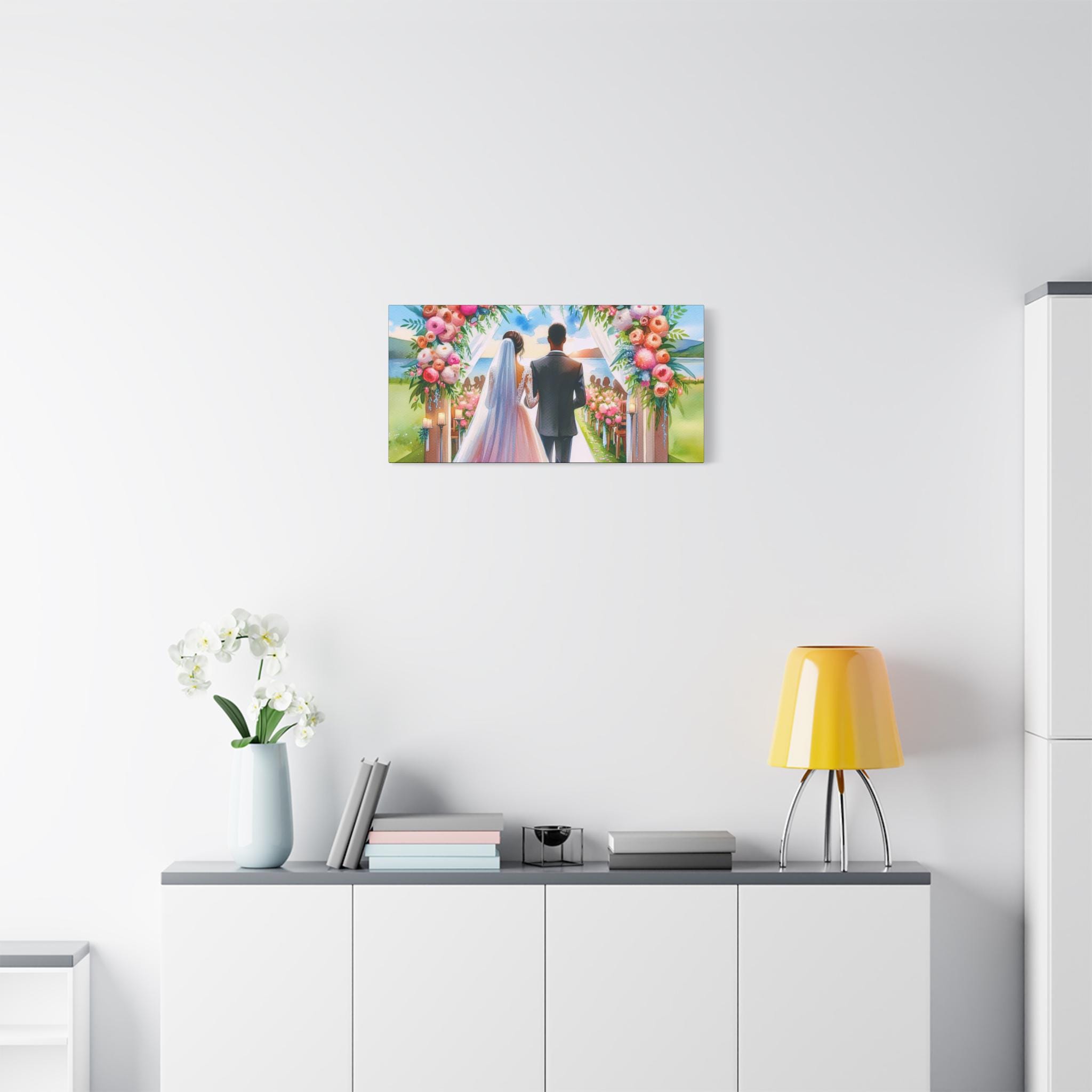 Elevate your space with this stunning Matte Canvas, Stretched, 1.25". Perfect for adding a touch of romance to your home, this canvas features a beautiful wedding scene that captures the essence of love and celebration. Ideal for newlyweds, couples, or anyone who appreciates the beauty of love, this artwork is a meaningful addition to any housewarming gift or anniversary celebration. The vibrant colors and intricate details create a warm atmosphere, making it a delightful focal point in living rooms, bedrooms, or wedding venues. Celebrate special occasions like weddings, anniversaries, or Valentine’s Day with this elegant piece that will resonate with anyone who cherishes lasting memories.