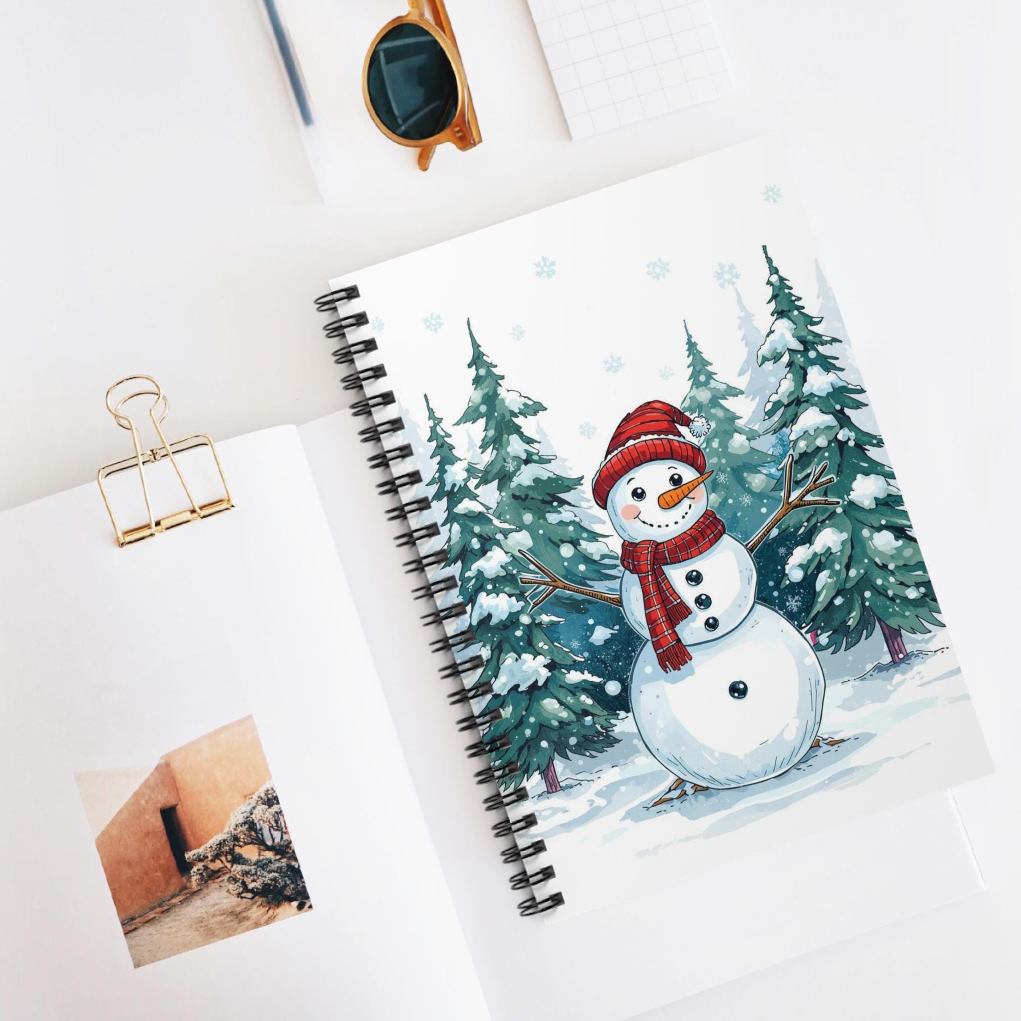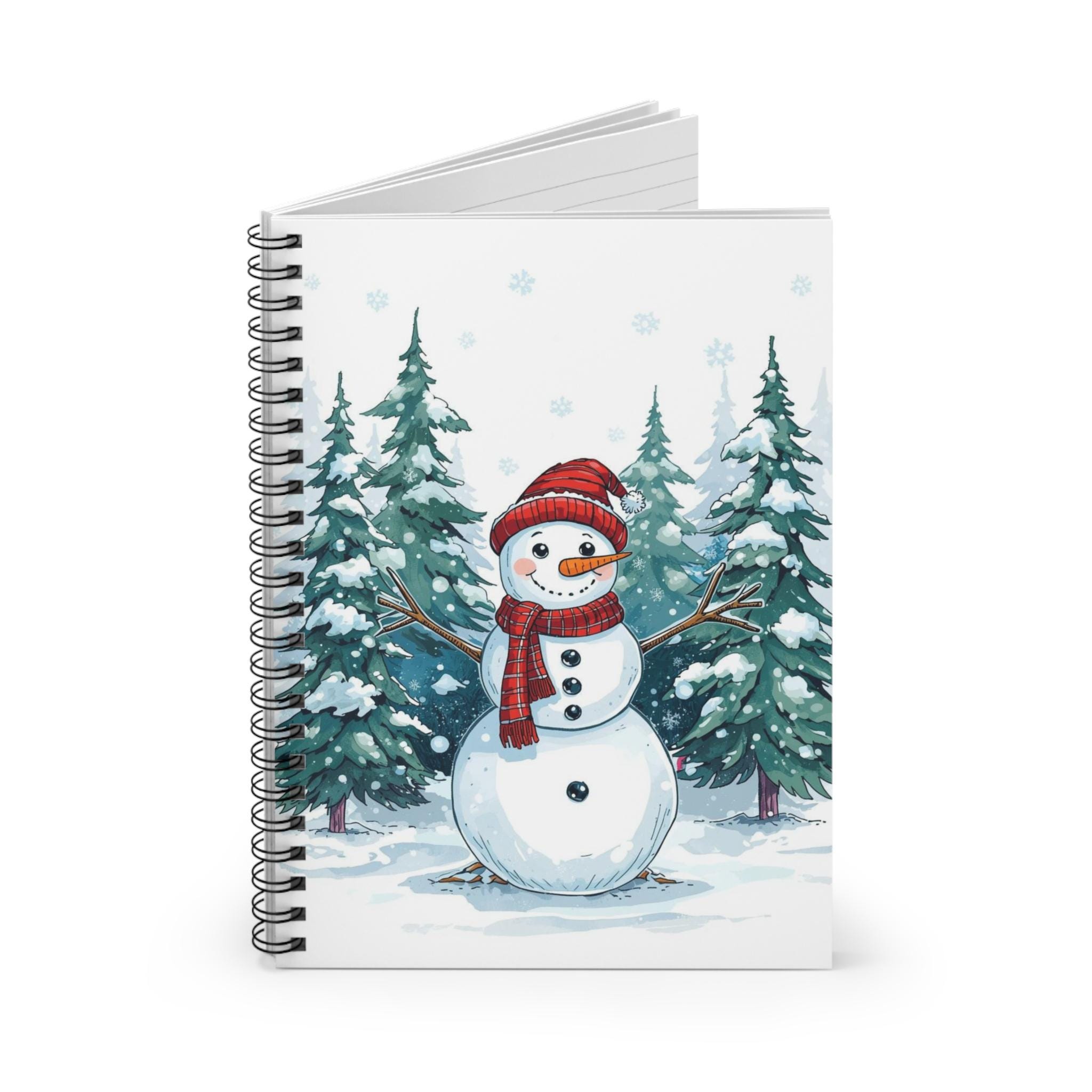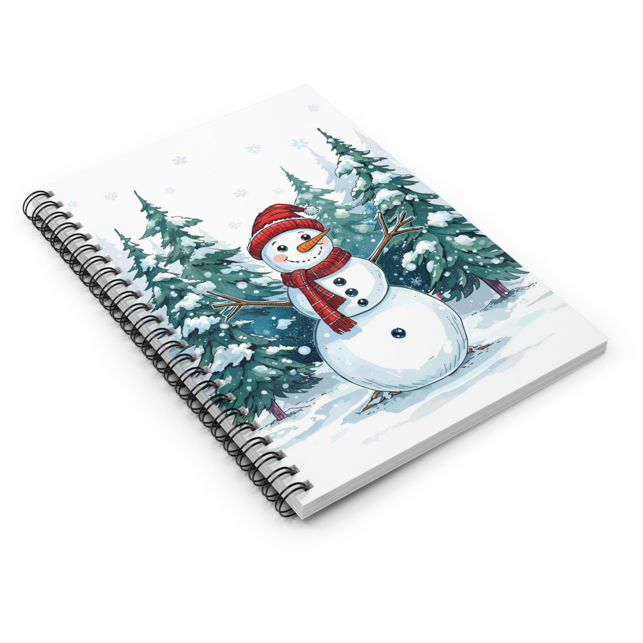 Experience the joy of winter with this charming Spiral Notebook, perfect for jotting down your thoughts and ideas. Adorned with a whimsical snowman design against a backdrop of pine trees, this notebook brings a festive and cozy atmosphere to your writing space. Its compact size makes it ideal for students, artists, or anyone who loves to capture their creativity on-the-go.