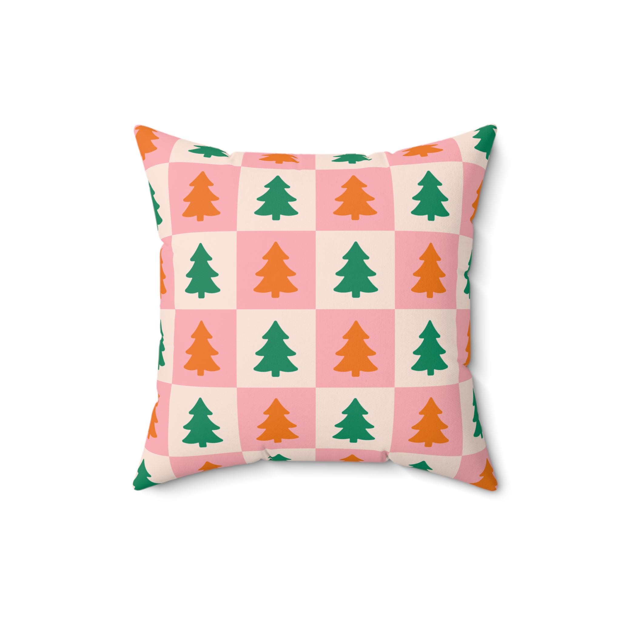 Introduce a touch of whimsy to your home with this charming square pillow. Featuring a delightful design of colorful trees set against a soft pink backdrop, this pillow adds warmth and joy to any space. Perfect for cozying up on your couch or decorating your favorite armchair, it brings a playful vibe to your living area. Ideal for homes celebrating holidays like Christmas and Thanksgiving or simply for anyone looking to elevate their home decor with cheerful accents. This pillow is perfect for art lovers, trendsetters, or anyone looking to refresh their space with a burst of joy and color.