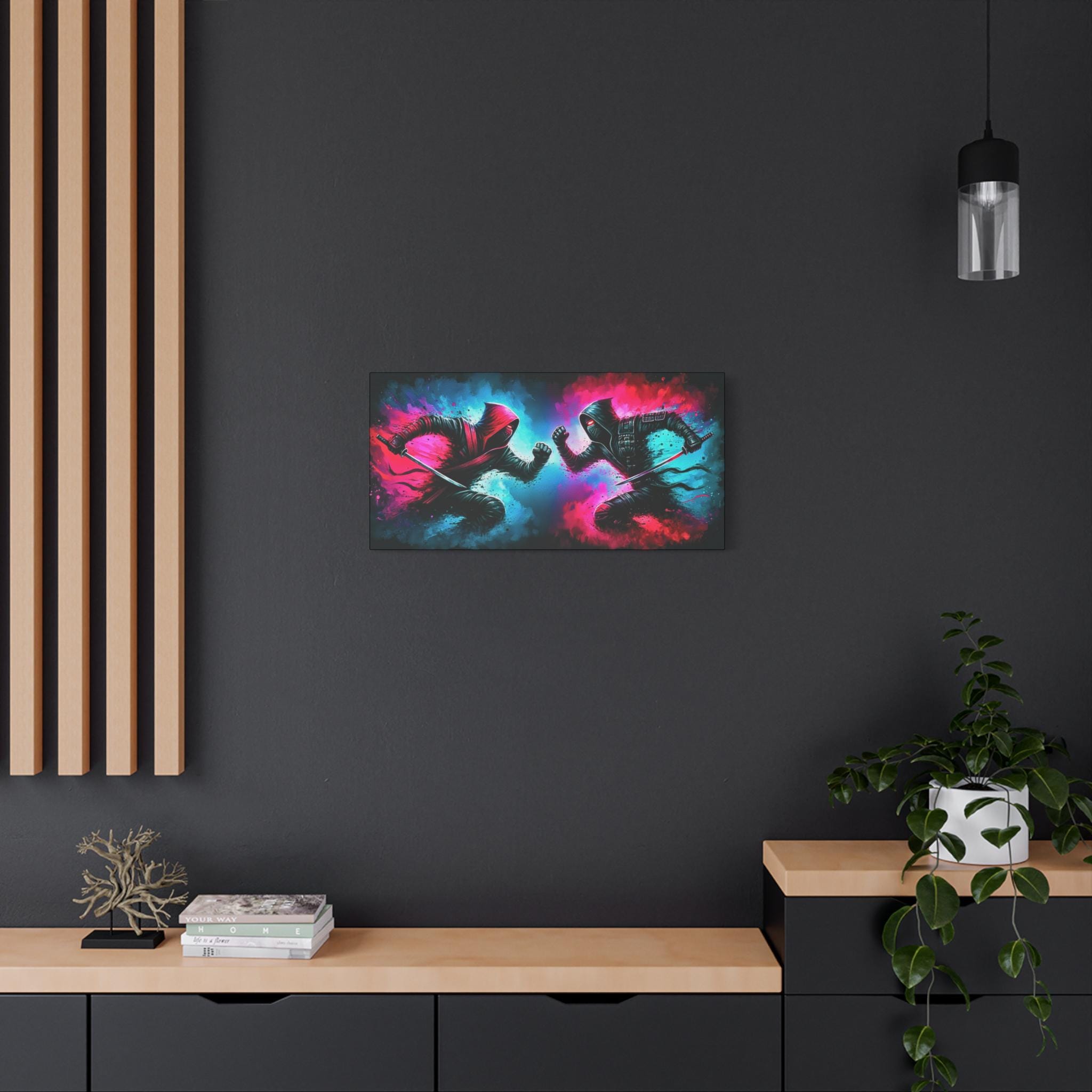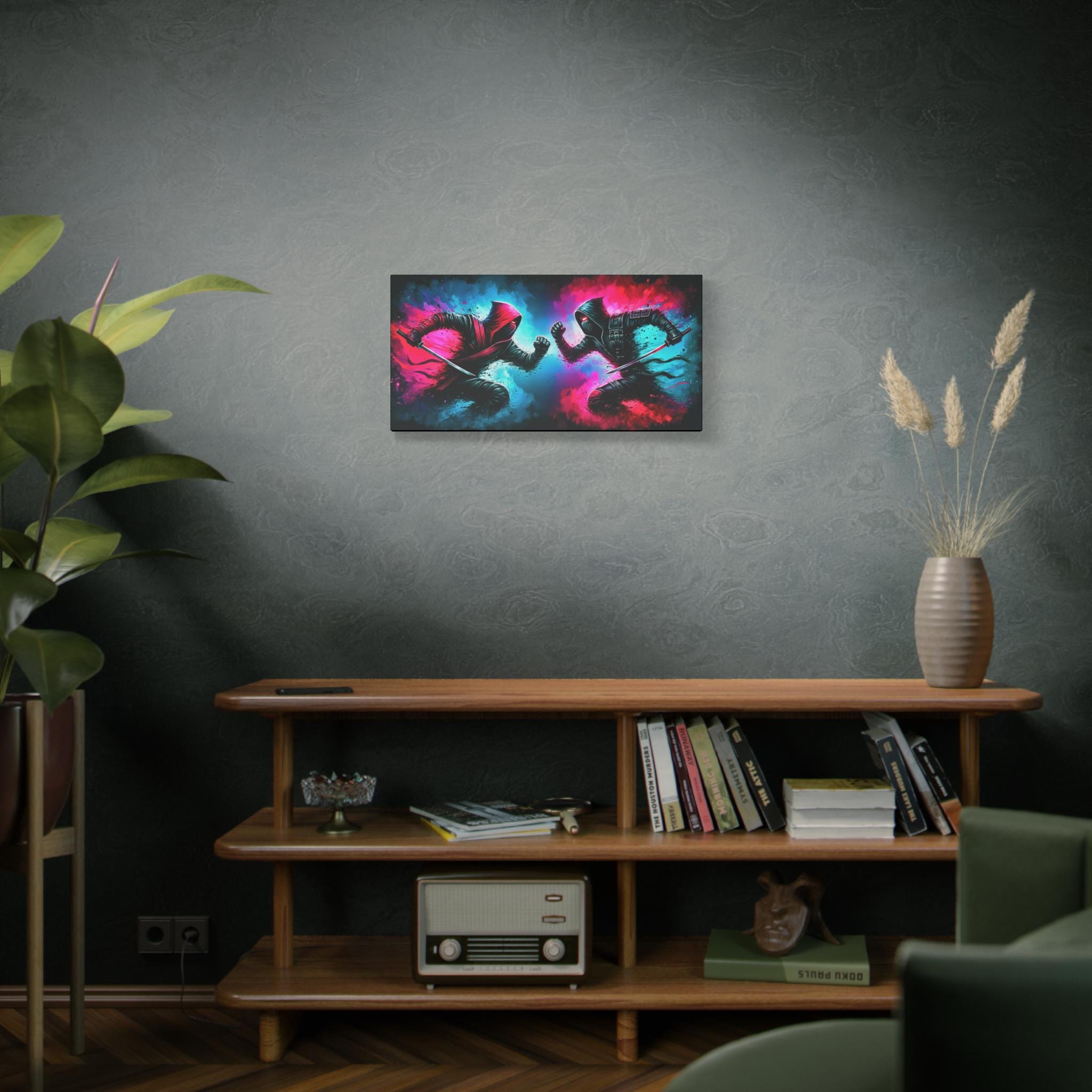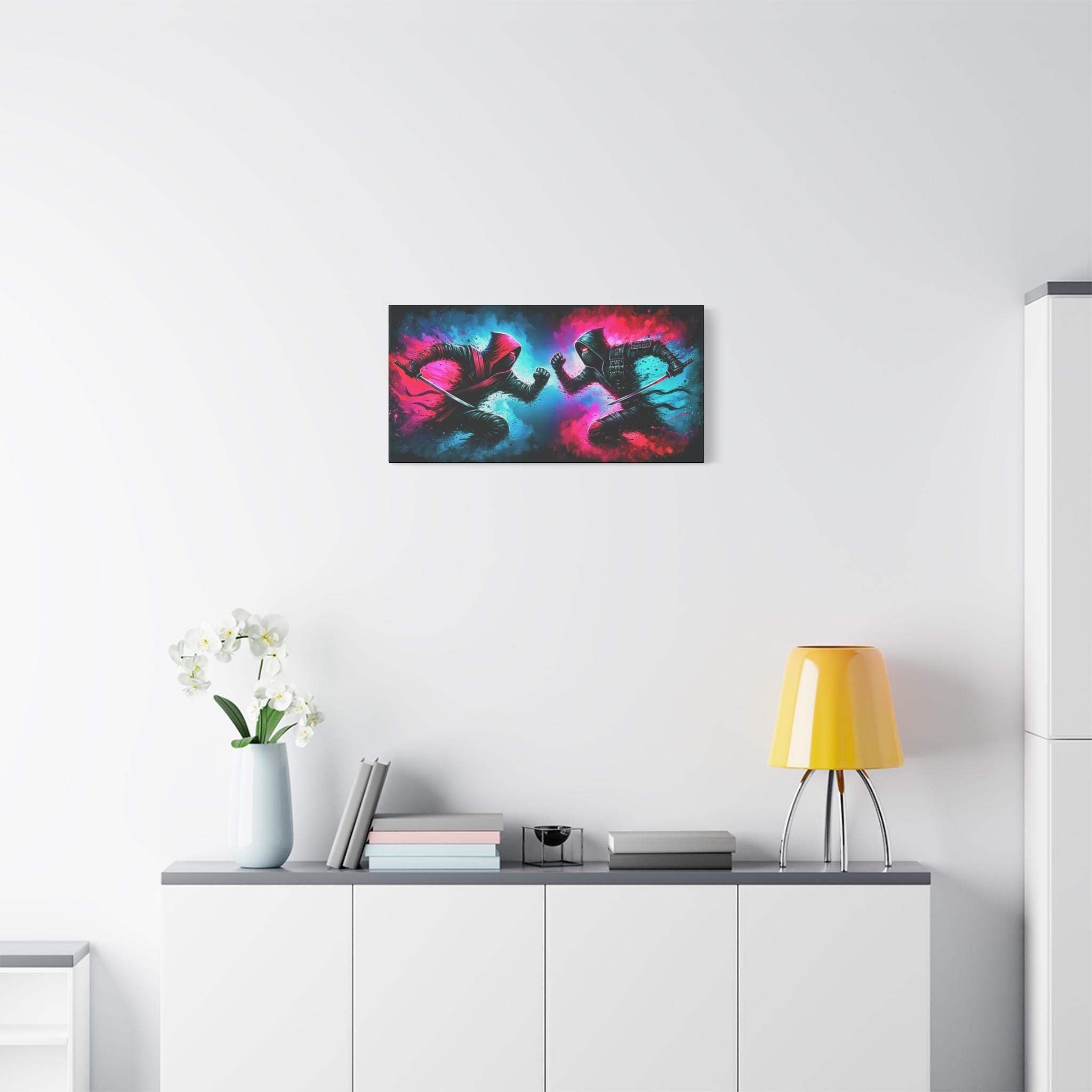 Bring your space to life with this stunning Matte Canvas. Featuring vibrant artwork of two dynamic figures in a colorful duel, this piece captures attention and ignites imagination. Perfect for bedrooms, game rooms, or creative spaces, it adds an energetic vibe to any wall. Ideal for art lovers, gamers, or anyone looking to enhance their decor. This piece is a wonderful addition to celebrations like birthdays, housewarmings, or just as a special treat for yourself!
