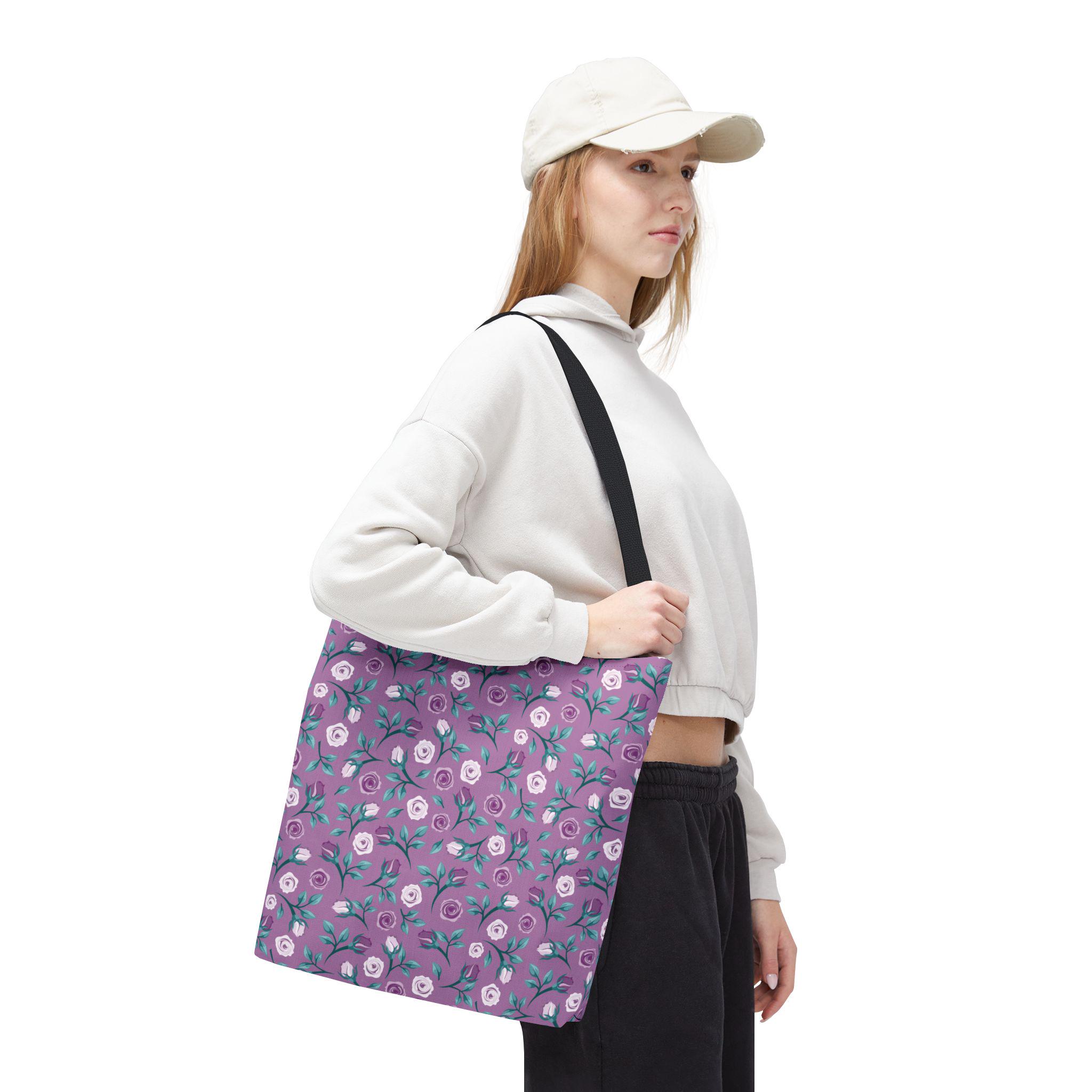 This vibrant tote bag is the perfect accessory for anyone who loves to add a pop of color to their outfit. Made from 100% polyester, it’s not only stylish but also extremely durable, ensuring it retains its shape with everyday use. The beautiful floral design on a soft purple background brings a joyful and fresh vibe, making it ideal for spring outings, shopping trips, or beach days. It’s suitable for all ages, especially those who appreciate unique and artistic designs. Whether for yourself or as a thoughtful gift for birthdays, Mother’s Day, or even just a nice surprise, this tote bag will surely delight. Functional and fashionable, it fits seamlessly into anyone’s life, adding a touch of charm to daily errands and weekend adventures.