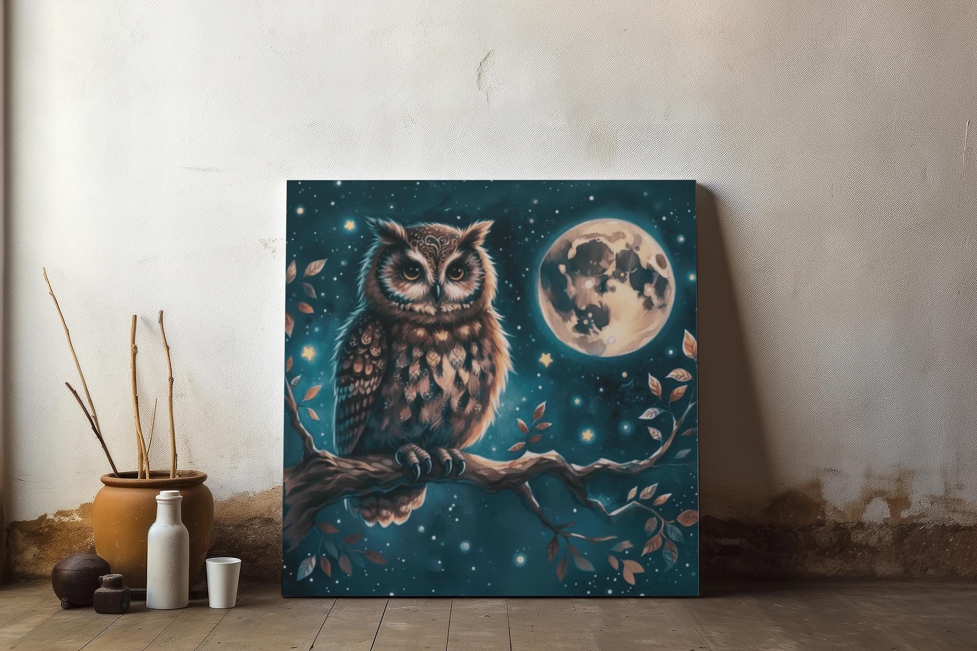 Transform your living space with this striking, stretched canvas artwork featuring a beautifully illustrated owl perched against a starry night sky. This canvas piece evokes a sense of mystery and wonder, making it a perfect conversation starter in any room. Ideal for nature lovers and owl enthusiasts, it seamlessly blends with various decor styles, from bohemian chic to modern minimalism. Great for adding a cozy vibe to your home during the fall or winter months, this canvas makes an excellent gift for housewarmings or holidays like Christmas and Halloween. Celebrate nature and art with a piece that encourages daydreaming and imagination!