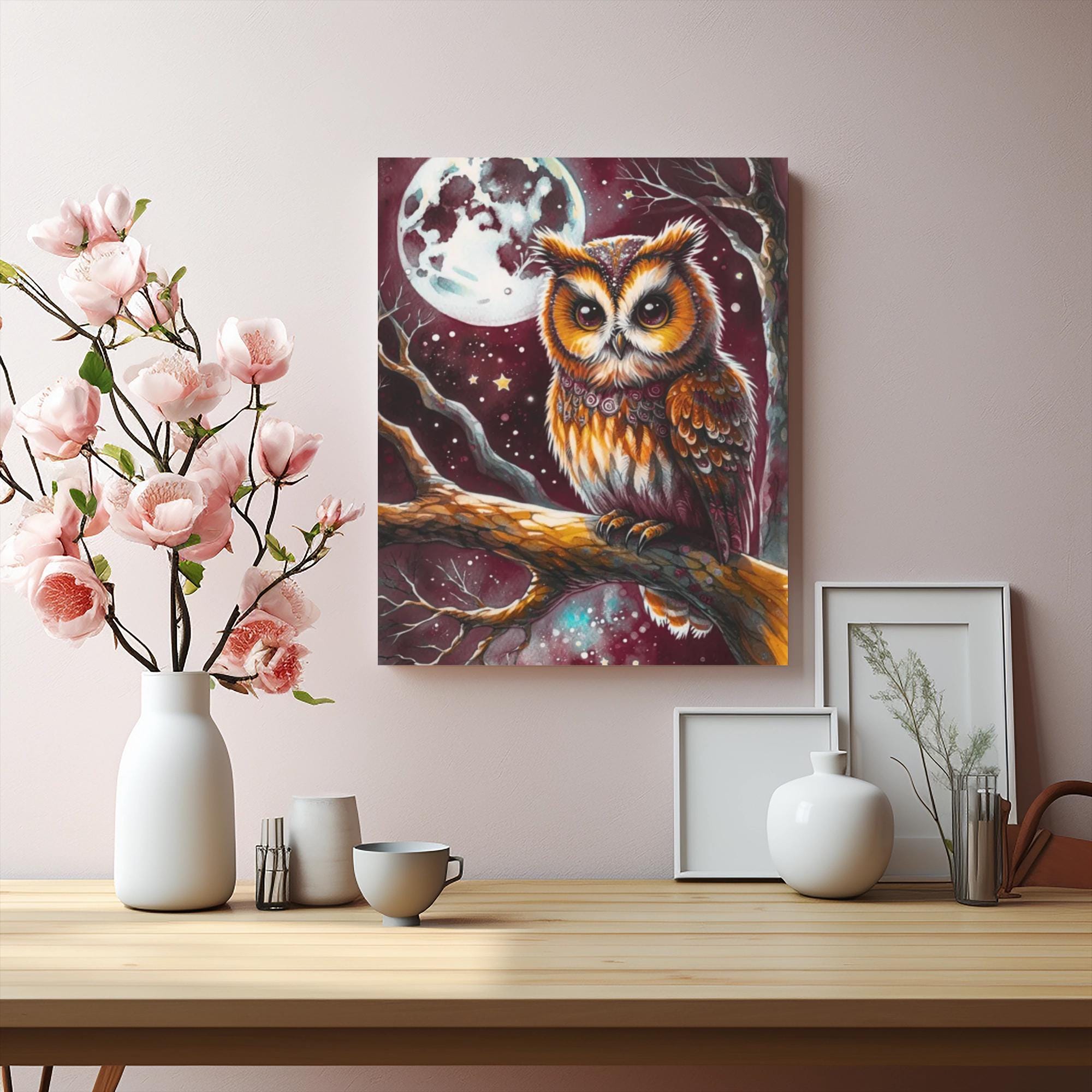 Transform your space with this stunning matte canvas, featuring a beautifully detailed owl set against a mesmerizing moonlit backdrop. Ideal for nature lovers and owl enthusiasts, this artwork adds a sense of wonder and magic to any room. Perfect for homes, offices, or cozy reading nooks, it evokes a tranquil atmosphere that inspires creativity and relaxation. This canvas is a wonderful gift for birthdays, housewarmings, or as an enchanting holiday decoration during Halloween and themed events. Its high-quality design and vibrant colors make it a captivating centerpiece for any art collection.