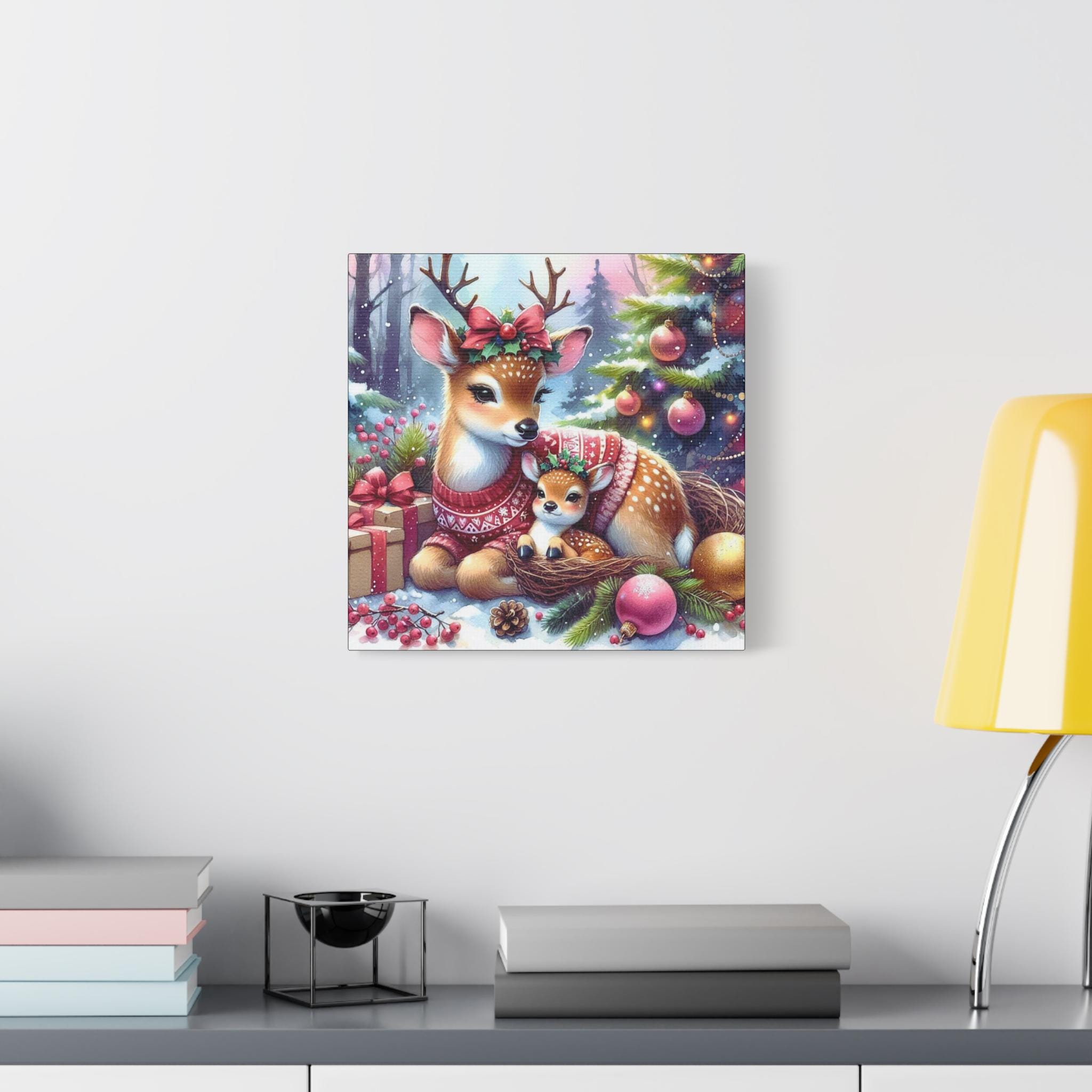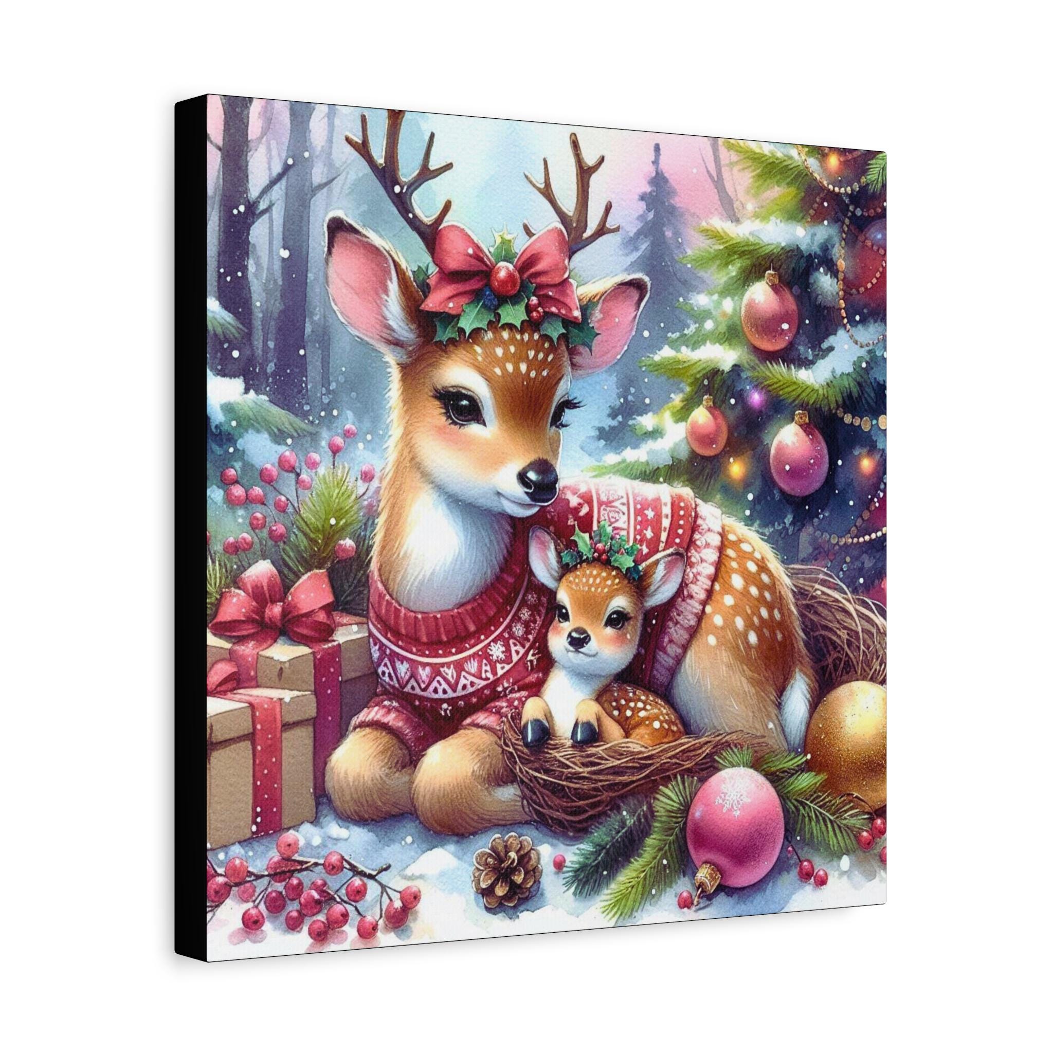 Bring the magic of the holiday season into your home with this vibrant Matte Canvas. Featuring a heartwarming scene of a mother deer and her fawn, adorned with festive touches, it radiates warmth and charm. Perfect for creating a cozy atmosphere in your living space, this canvas is an ideal addition to your holiday decorations or as a thoughtful gift for loved ones. The enchanting design makes it suitable for families, nature enthusiasts, and anyone looking to capture the spirit of the season. Celebrate Christmas, winter solstice gatherings, or simply add a touch of whimsy to your decor with this beautiful piece.
