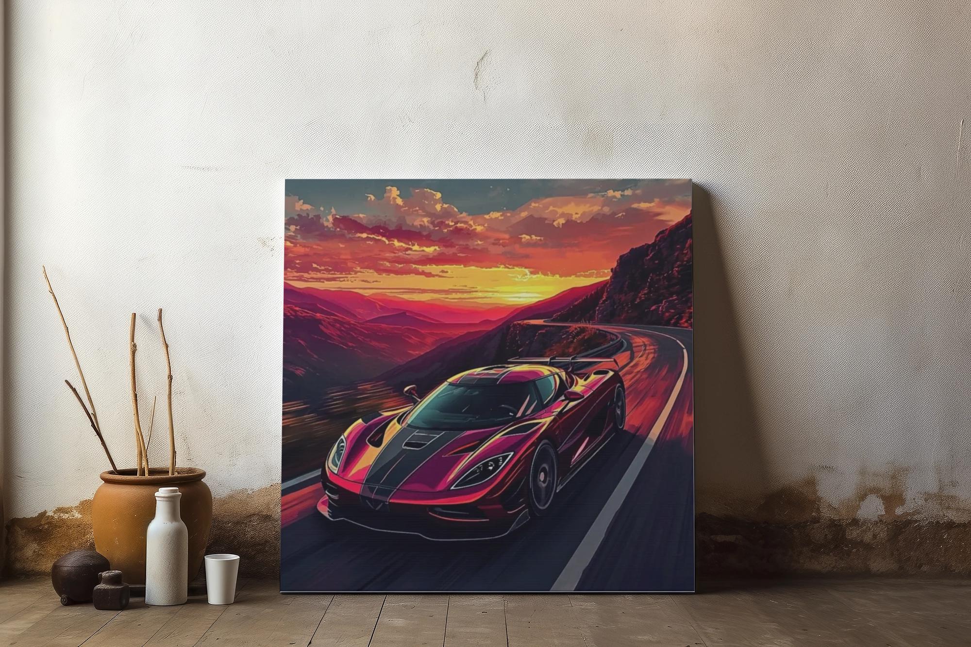 Transform your space with this stunning Matte Canvas, perfect for automotive enthusiasts and art lovers alike. Featuring a breathtaking image of a sleek supercar racing through a mountainous landscape at sunset, this canvas captures the thrill of speed and adventure. Its vibrant colors and intricate details invite you to immerse yourself in the beauty of the moment. This piece makes a perfect gift for Father's Day, graduations, or any celebration where passion and style are celebrated. Whether it adorns your living room, office, or garage, it creates an atmosphere of excitement and inspiration. Ideal for anyone who appreciates high-quality art and the adrenaline of automotive culture.