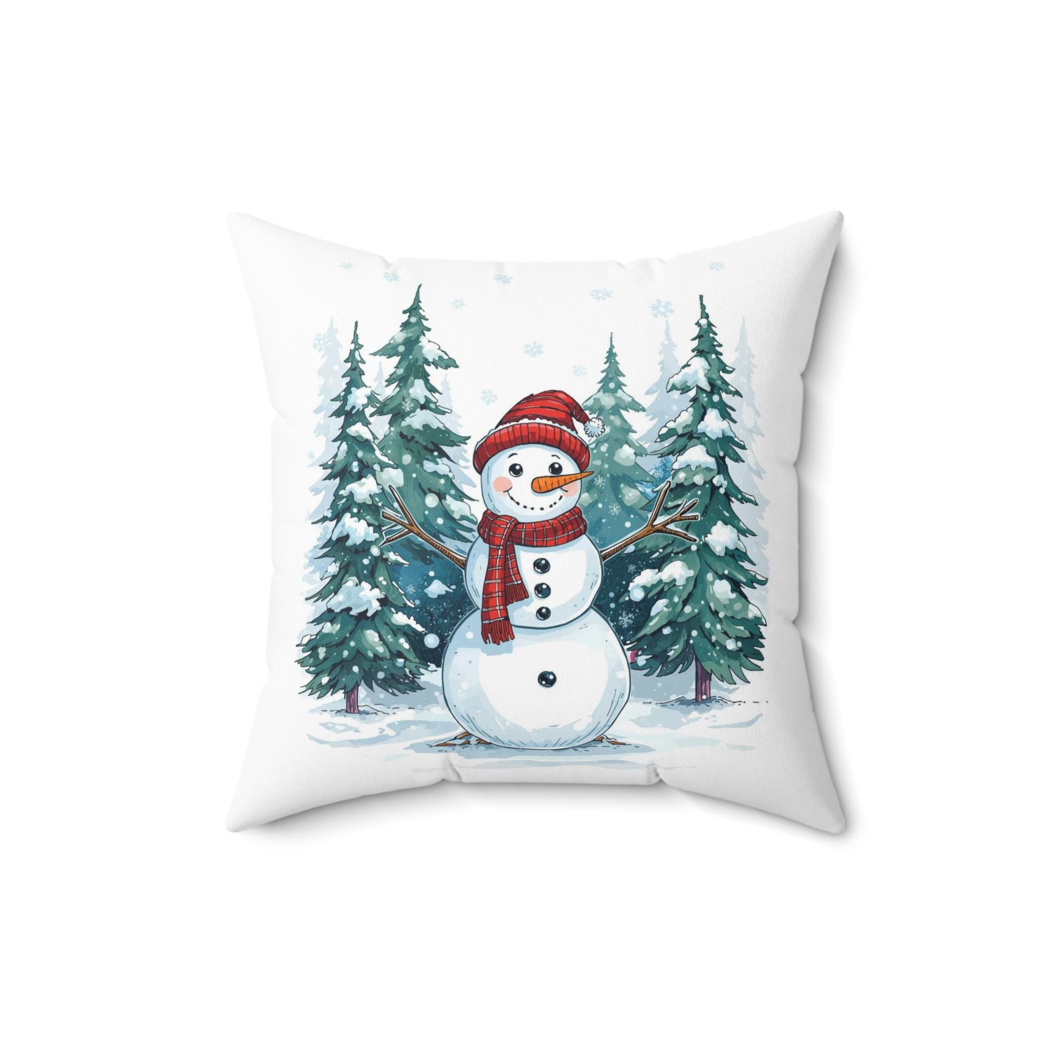 Add a touch of warmth and cheer to your home with this cozy square pillow. Perfect for the winter season, this pillow features a delightful snowman design that brings a playful spirit to any space. Its soft and inviting texture makes it the perfect companion for chilly evenings spent snuggled up on the couch. Ideal for families, children, or anyone looking to spread a little holiday joy, this pillow is perfect for decorating for Christmas, winter holidays, or even casual gatherings. Use it on your sofa, bed, or as a festive accent piece for your holiday celebrations and cozy get-togethers.