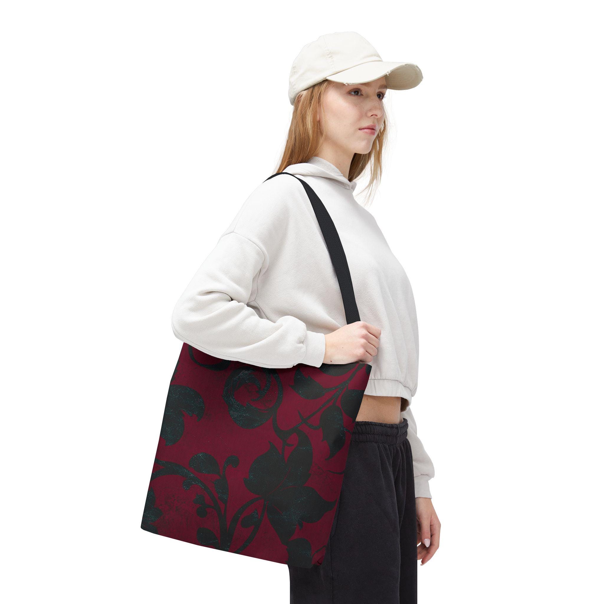 Introducing a stunning Tote Bag that embodies style and practicality. Crafted with a 100% polyester body, this bag is not only extremely strong and durable but also retains its shape, making it perfect for everyday use. Its elegant design, infused with a rich maroon floral pattern, creates a vibe that’s both sophisticated and chic, allowing you to carry a touch of artistry wherever you go. The tote offers ample space, ideal for running errands, going to the beach, or attending a picnic. Targeting fashion-forward individuals who value both form and function, this tote is perfect for gifting during holidays, birthdays, or as a thoughtful present for occasions like Mother’s Day or bridal showers. Embrace practicality without sacrificing style with this versatile accessory.