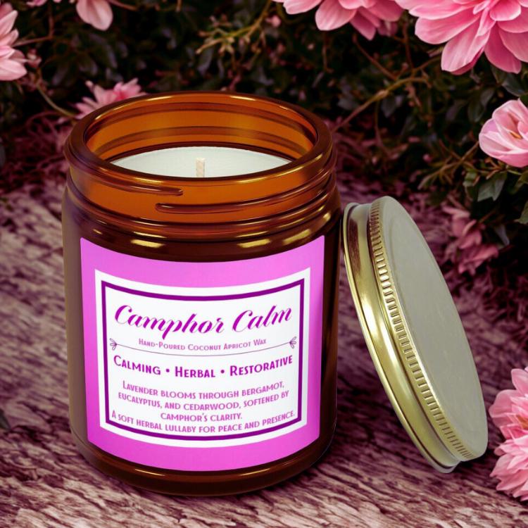 Lavender blooms through bergamot, eucalyptus, and cedarwood, softened by camphor’s clarity.