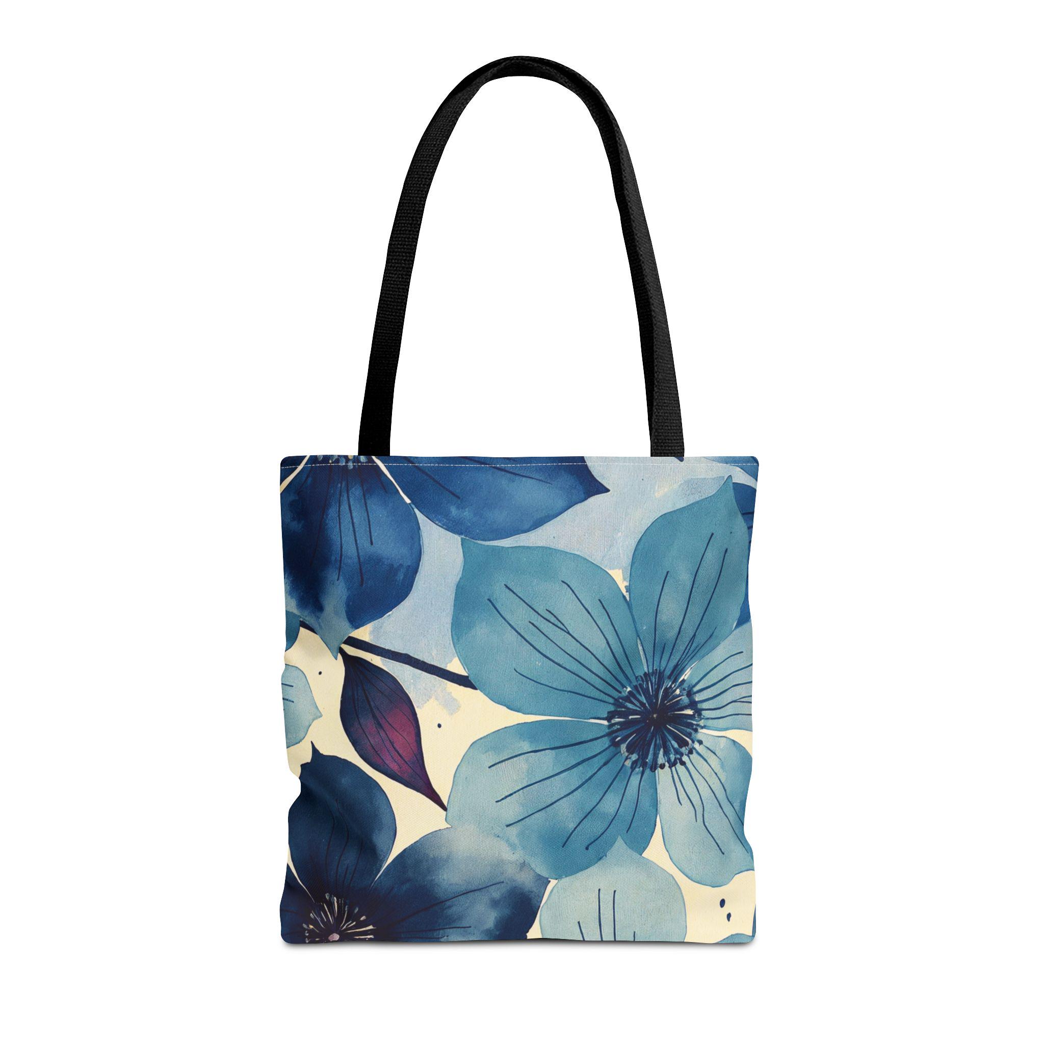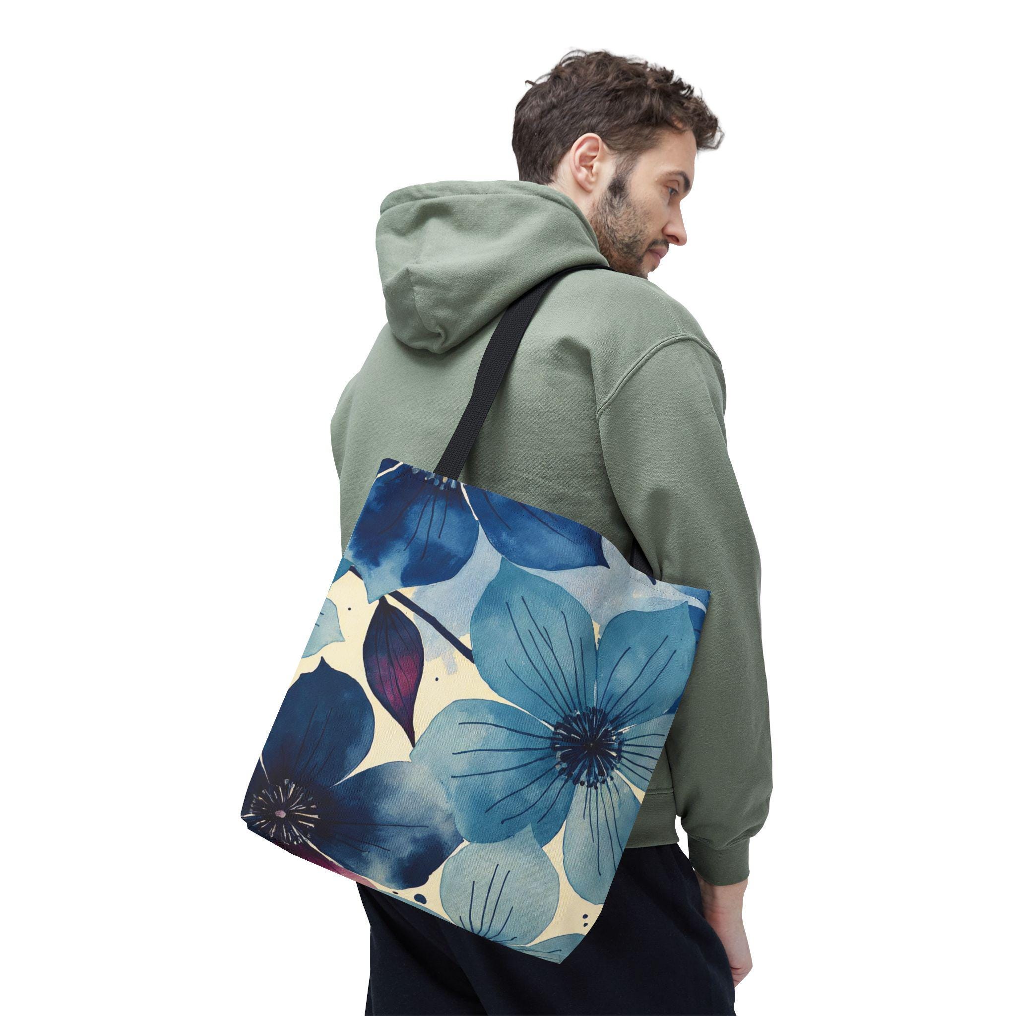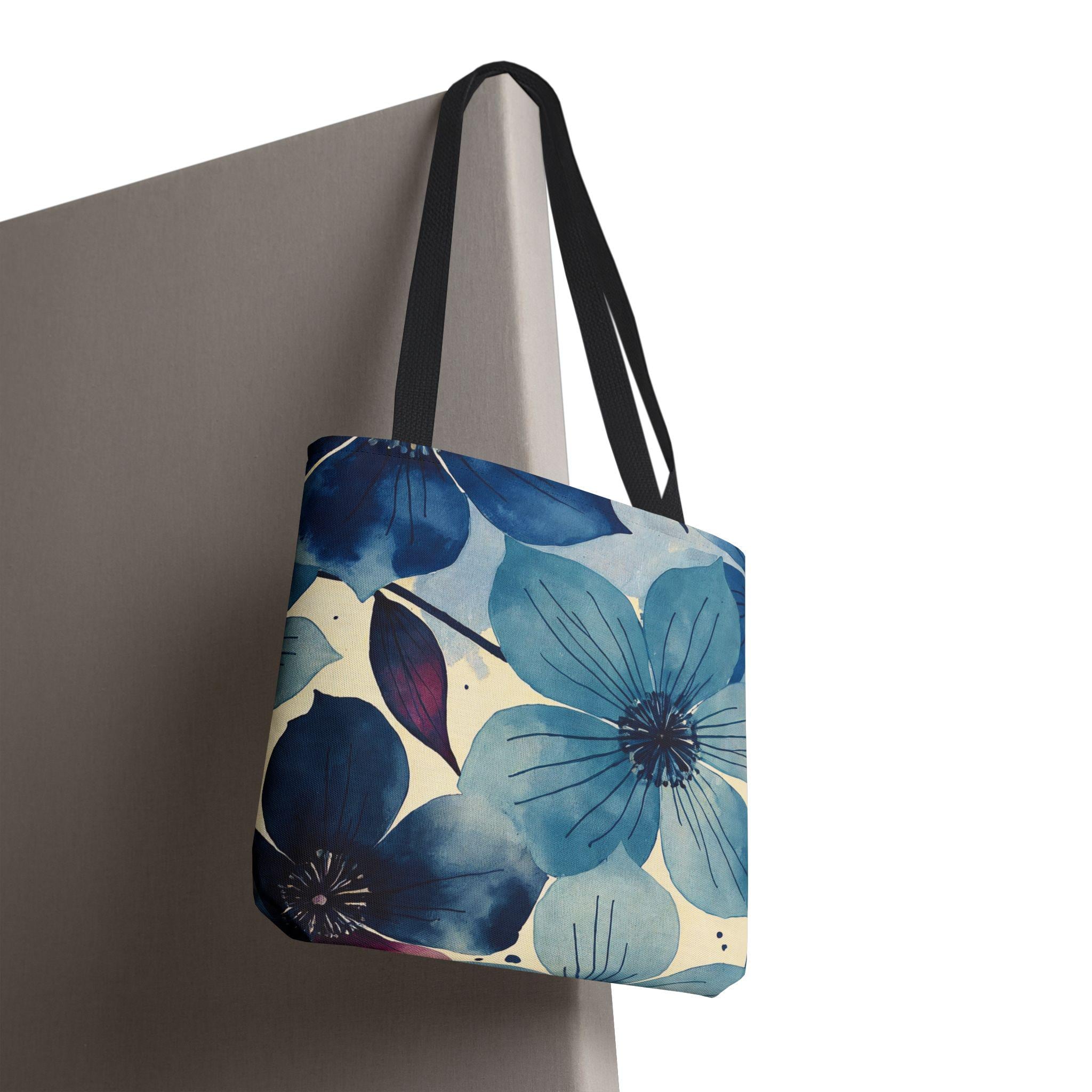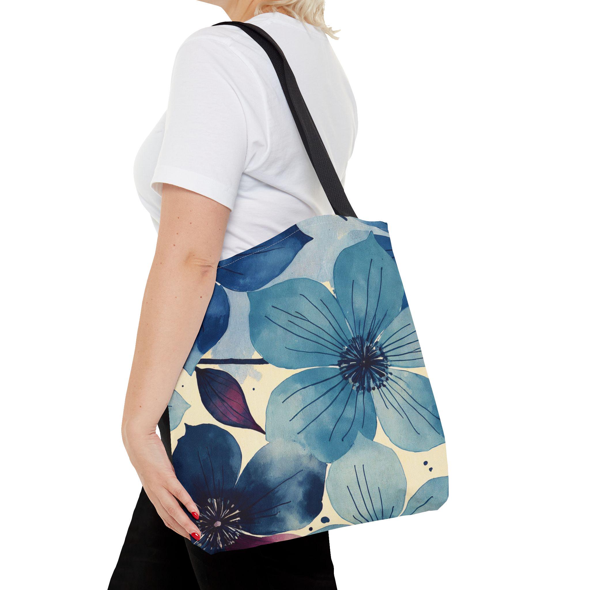 A soft, painterly floral tote that carries the calm of a coastal afternoon. Handheld or slung over your shoulder, the bag’s cool blue blooms and hints of warm magenta bring a quietly artistic touch to errands, markets, and slow weekend strolls. The roomy boxed corners and medium-weight polyester keep shape whether holding a sketchbook, small grocery run, or a stack of library finds. Reinforced handles and neat black inner stitching mean it travels with you without fuss. It feels like bringing a small bouquet of watercolor flowers along for the day — subtle, fresh, and thoughtfully made.