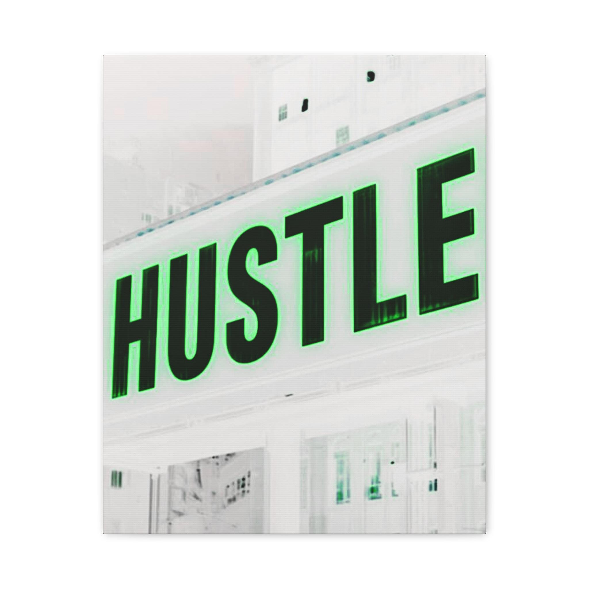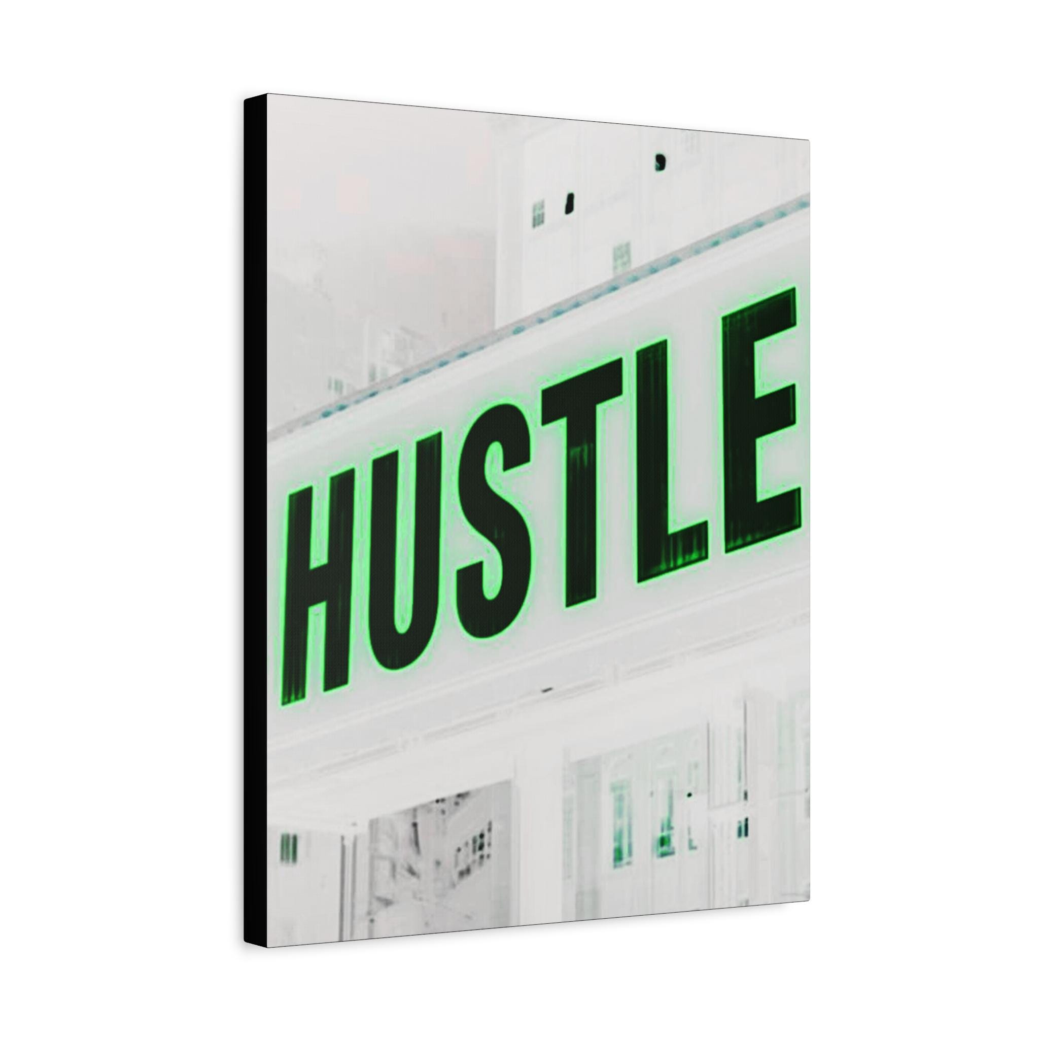 A bold matte canvas that brings urban energy into any room. High-contrast lettering reads HUSTLE in neon green against a soft, desaturated city backdrop for a look that’s both gritty and modern. Stretched over a slim 1.25" pine frame, the piece hangs flush to the wall and feels lightweight while delivering gallery-ready detail thanks to a unique coating and UL-certified Greenguard Gold latex inks. Small rubber dots on the back keep the canvas steady, and the included hanging hardware makes installation simple.