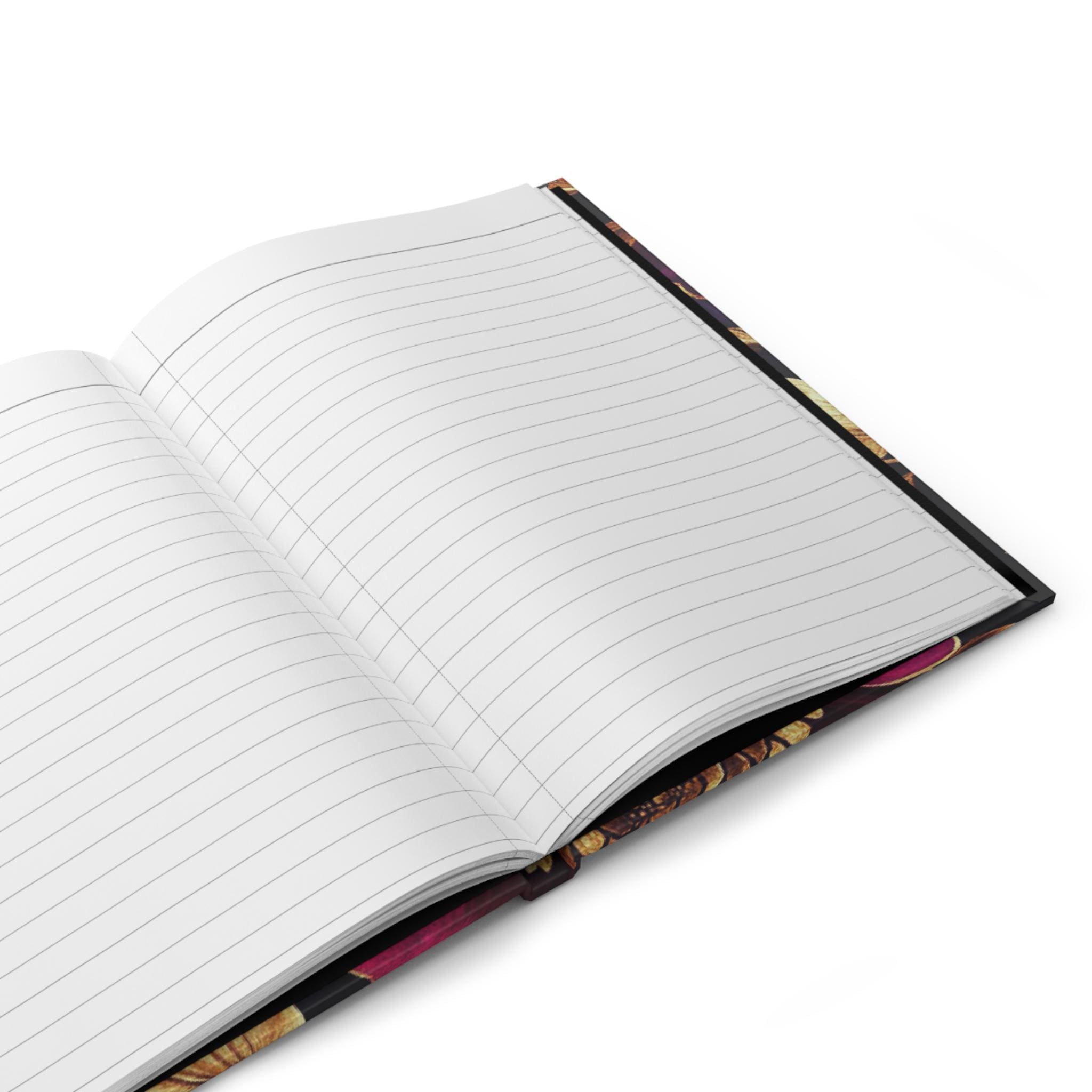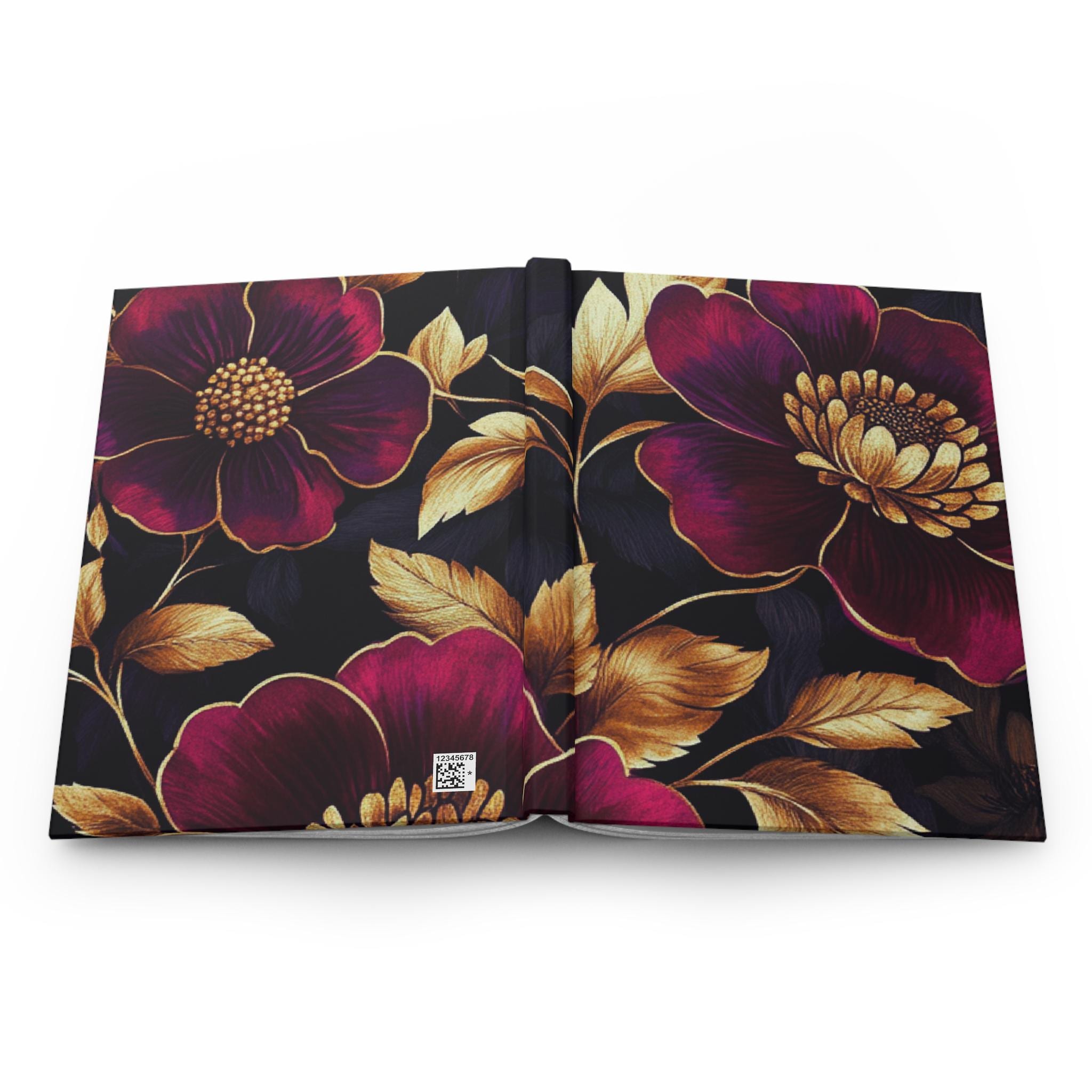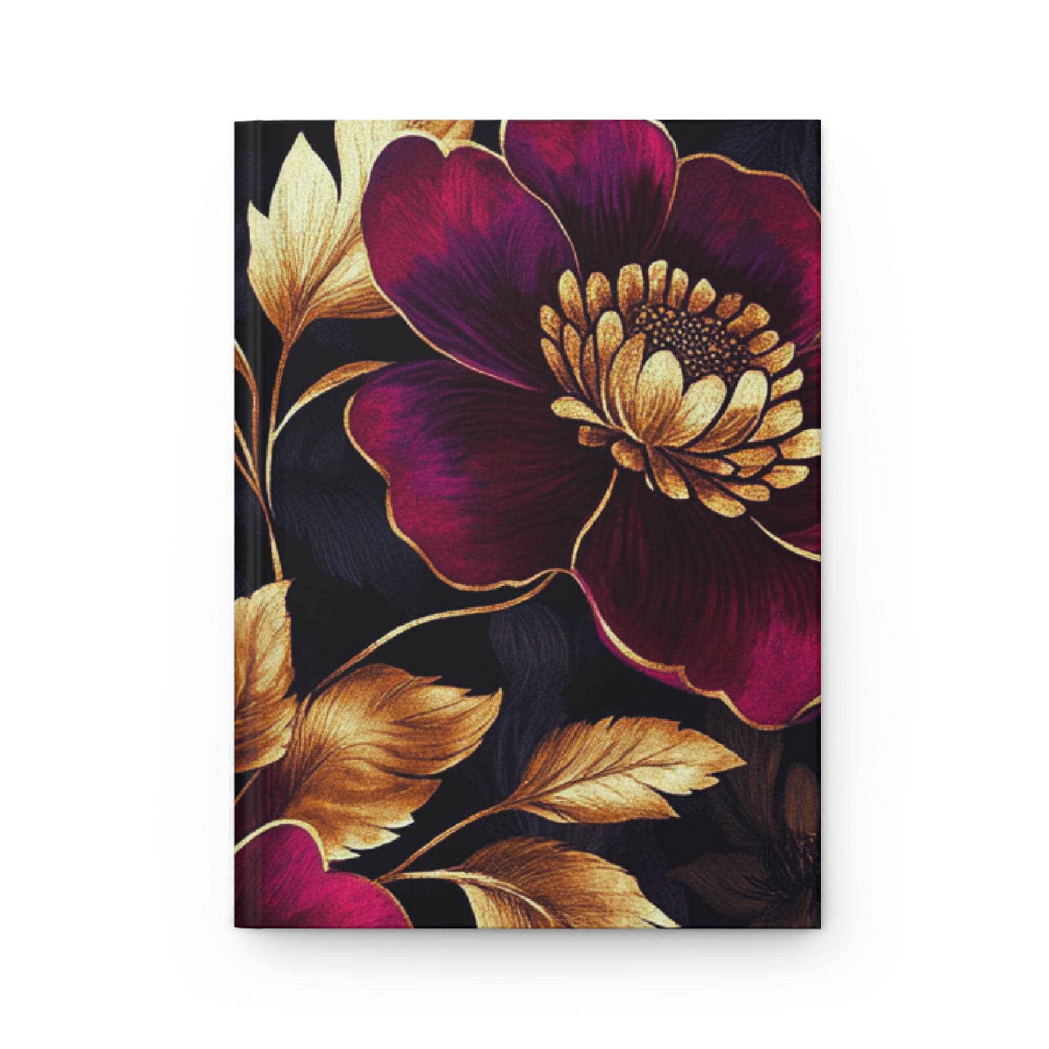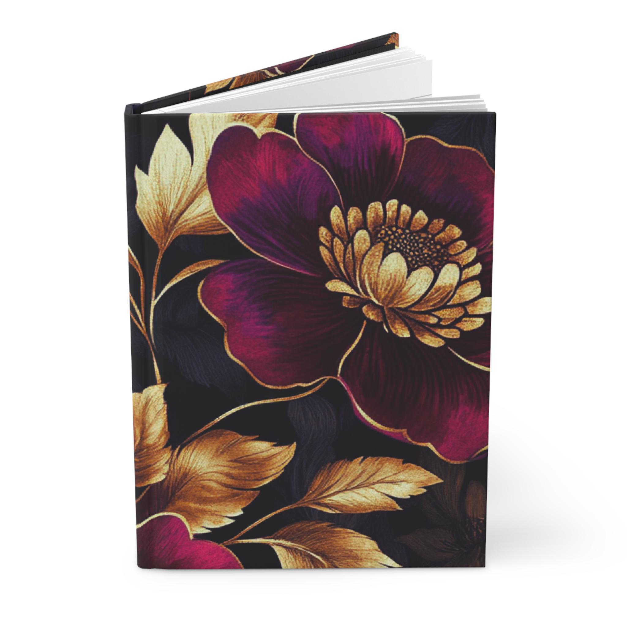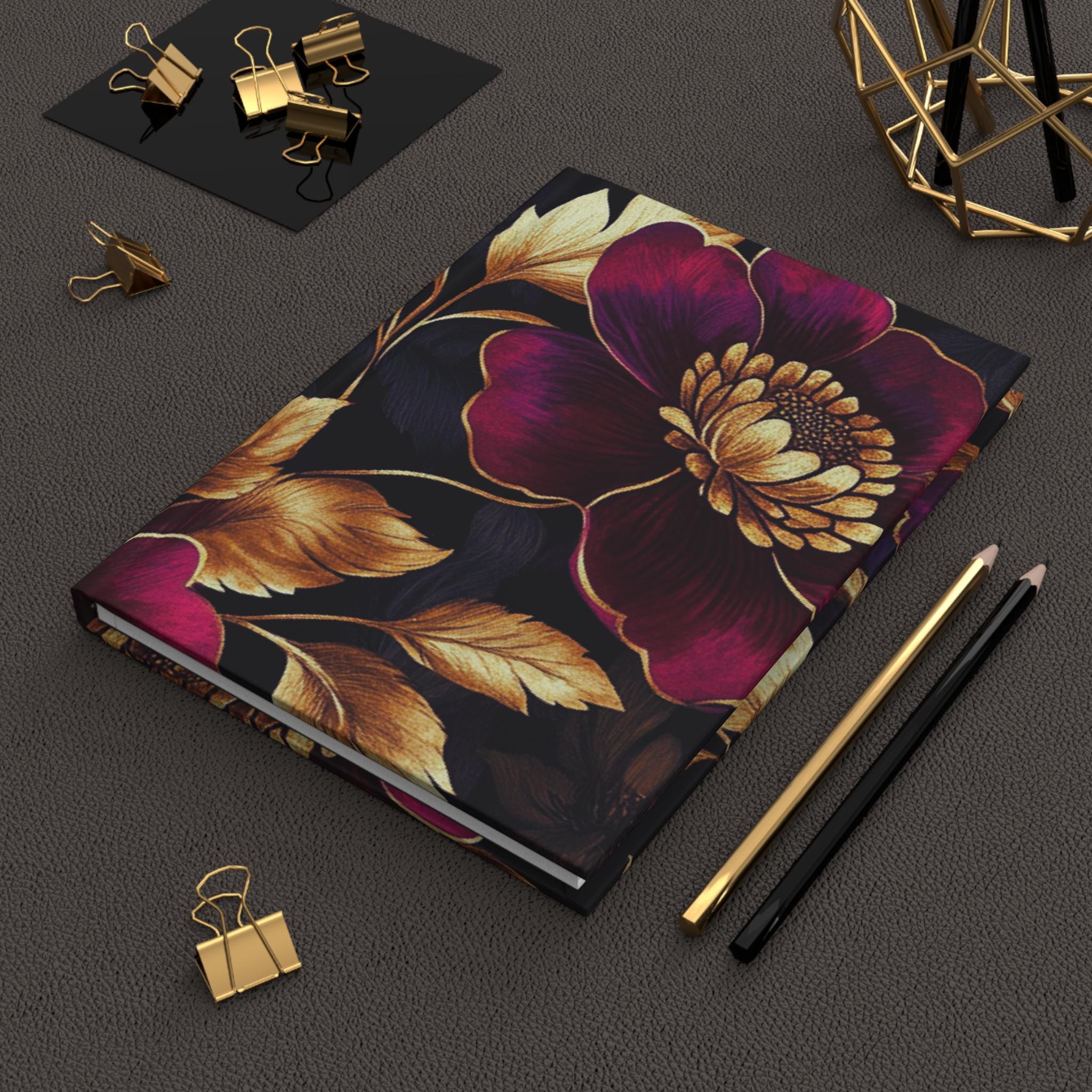 This hardcover journal wraps a rich, moody floral in a soft matte finish that feels like a secret kept in your bag. Deep berry blooms and burnished gold leaves float across a velvety black background, inviting slow moments of thought and careful handwriting. The sewn casewrap binding lets the book open flat and move with you — whether you’re sketching late-night ideas, tracking pages of a novel, or journaling thoughts before sleep. The perforated lined pages offer tidy removals when a page needs to be shared or filed. It sits comfortably on a bedside table, coffee shop corner, or studio shelf, ready when inspiration arrives.
