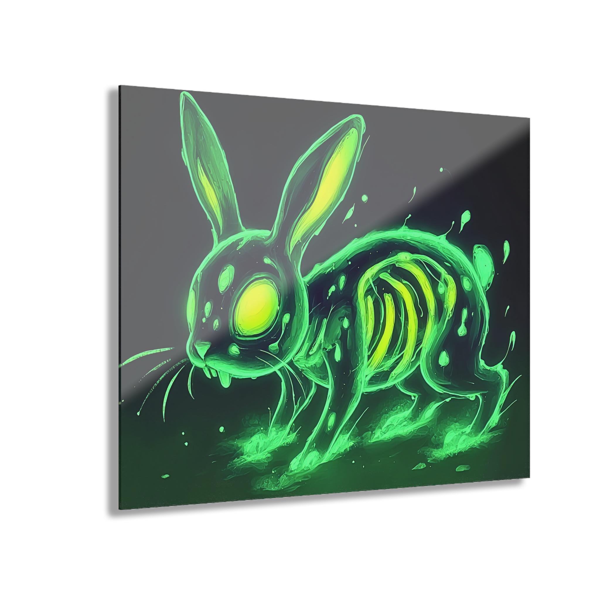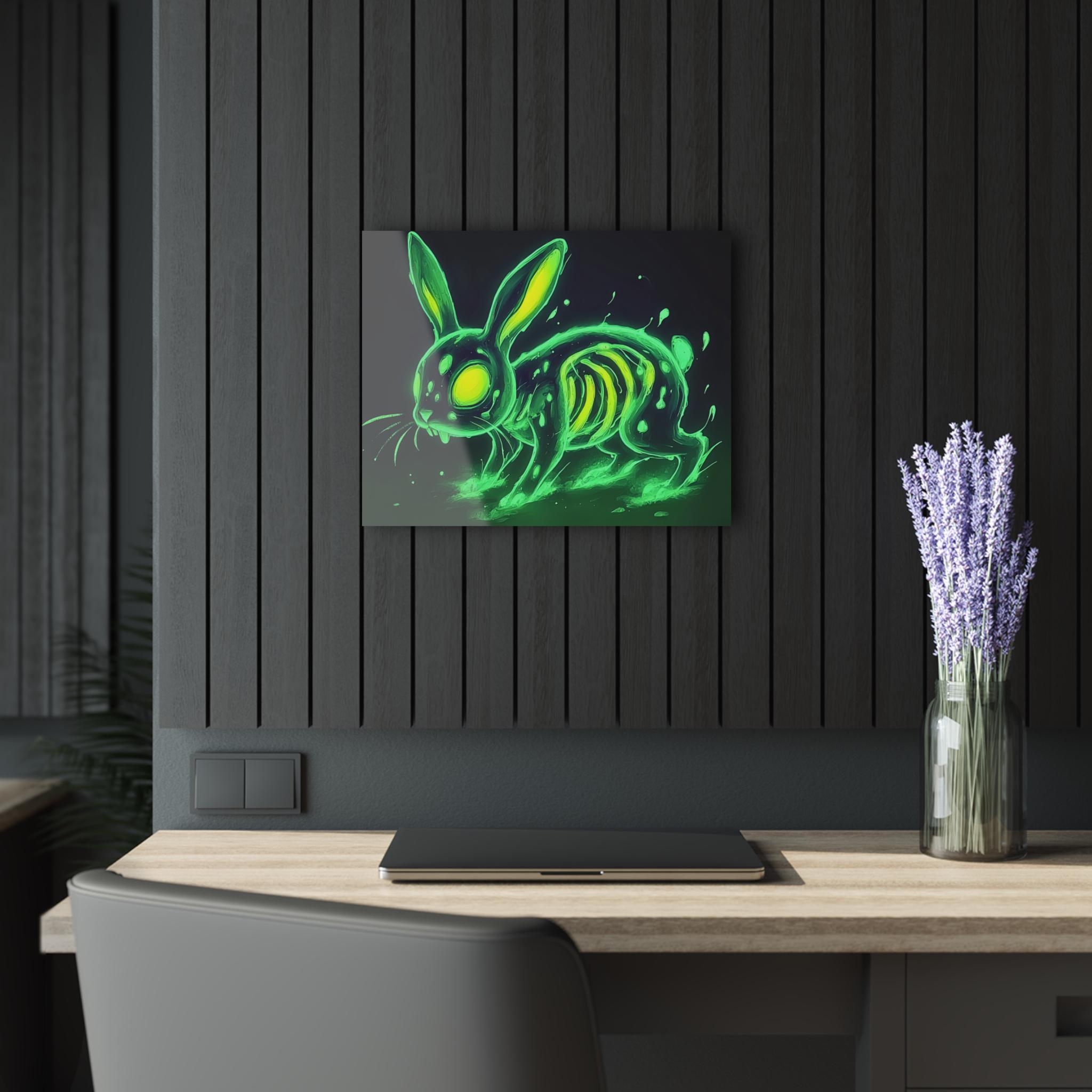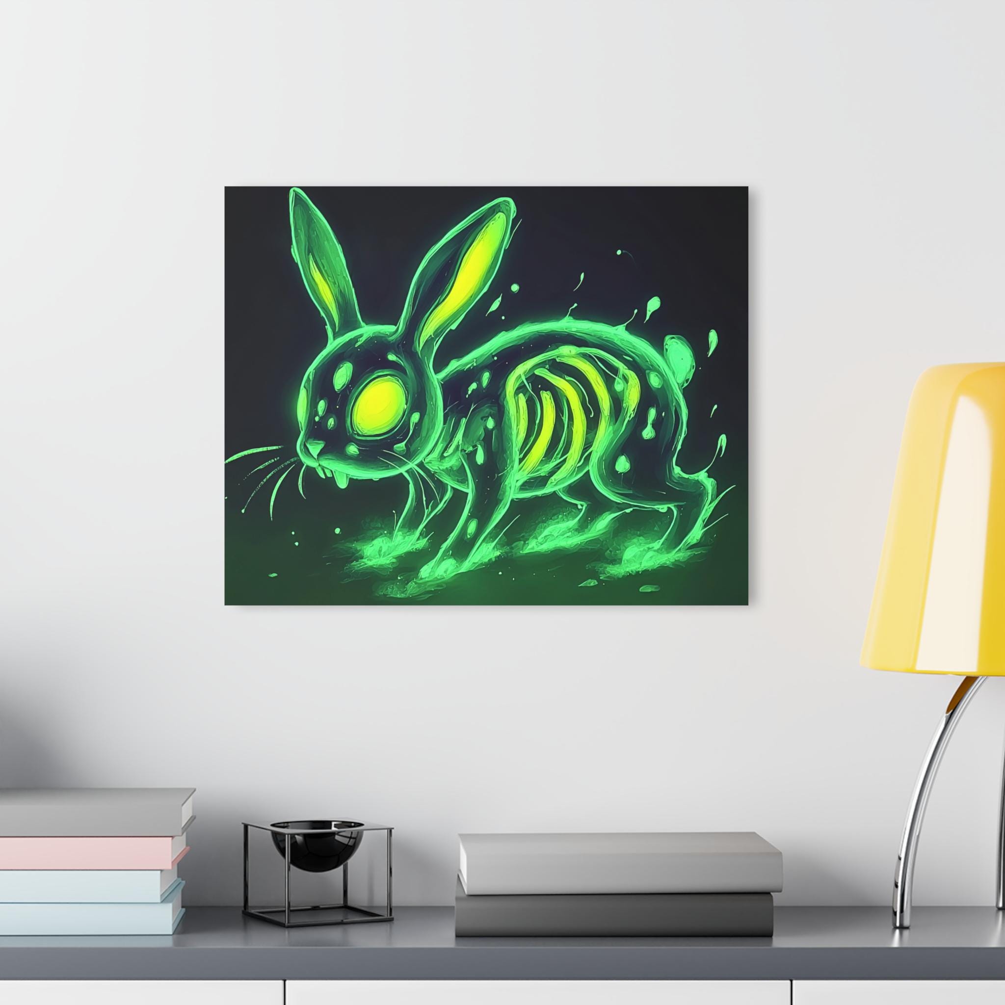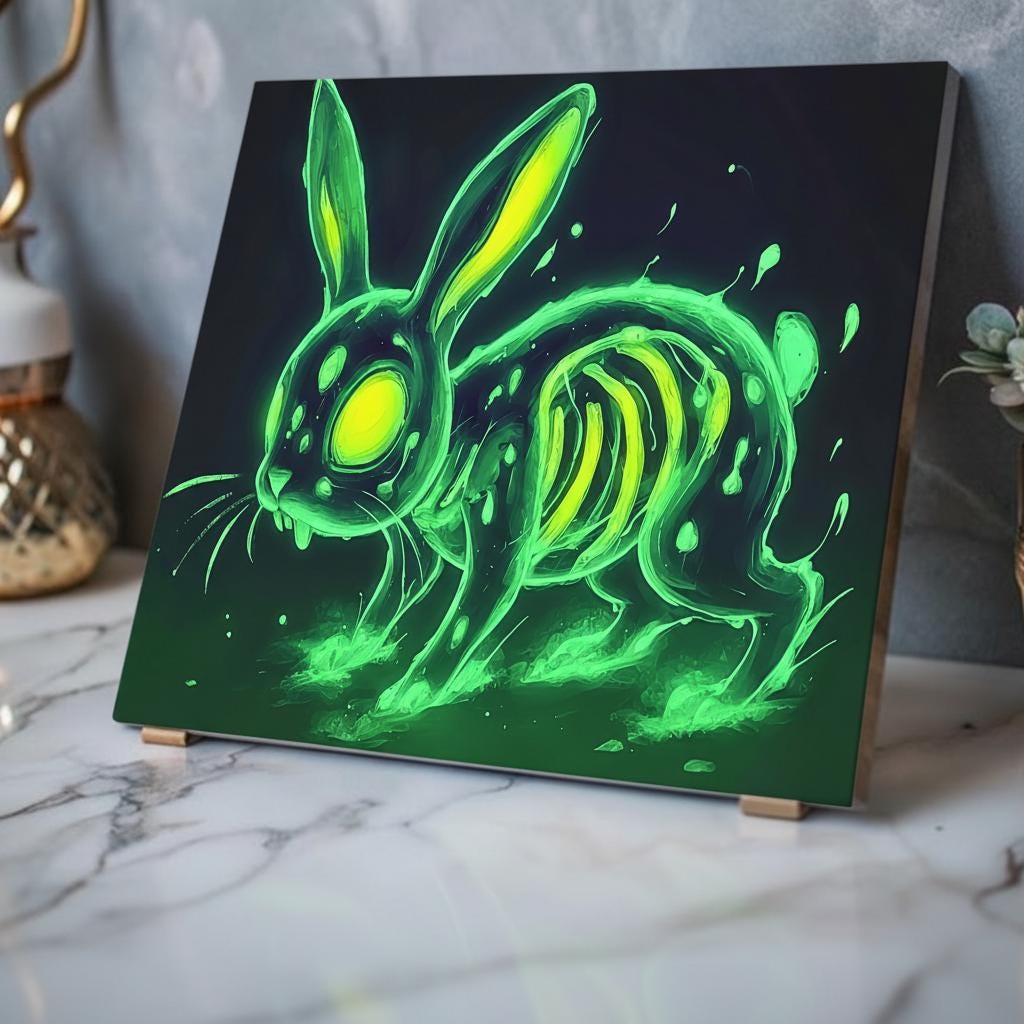 Bring a pulse of electric color and uncanny charm to your walls with this acrylic print. The glossy, water-resistant surface makes every neon detail pop — from the glowing eyes to the spectral ribs — while the crystal-clear edges give the image a floating, museum-quality look. Hung with a sturdy French cleat system, this panel settles flat against the wall and secures effortlessly. It slips straight into the life of someone who loves bold, slightly eerie art: late-night gamers, indie collectors, or anyone curating a moody, luminous room. Let it sit above a console, alongside a record shelf, or in a dim hallway where the glow can do the talking.