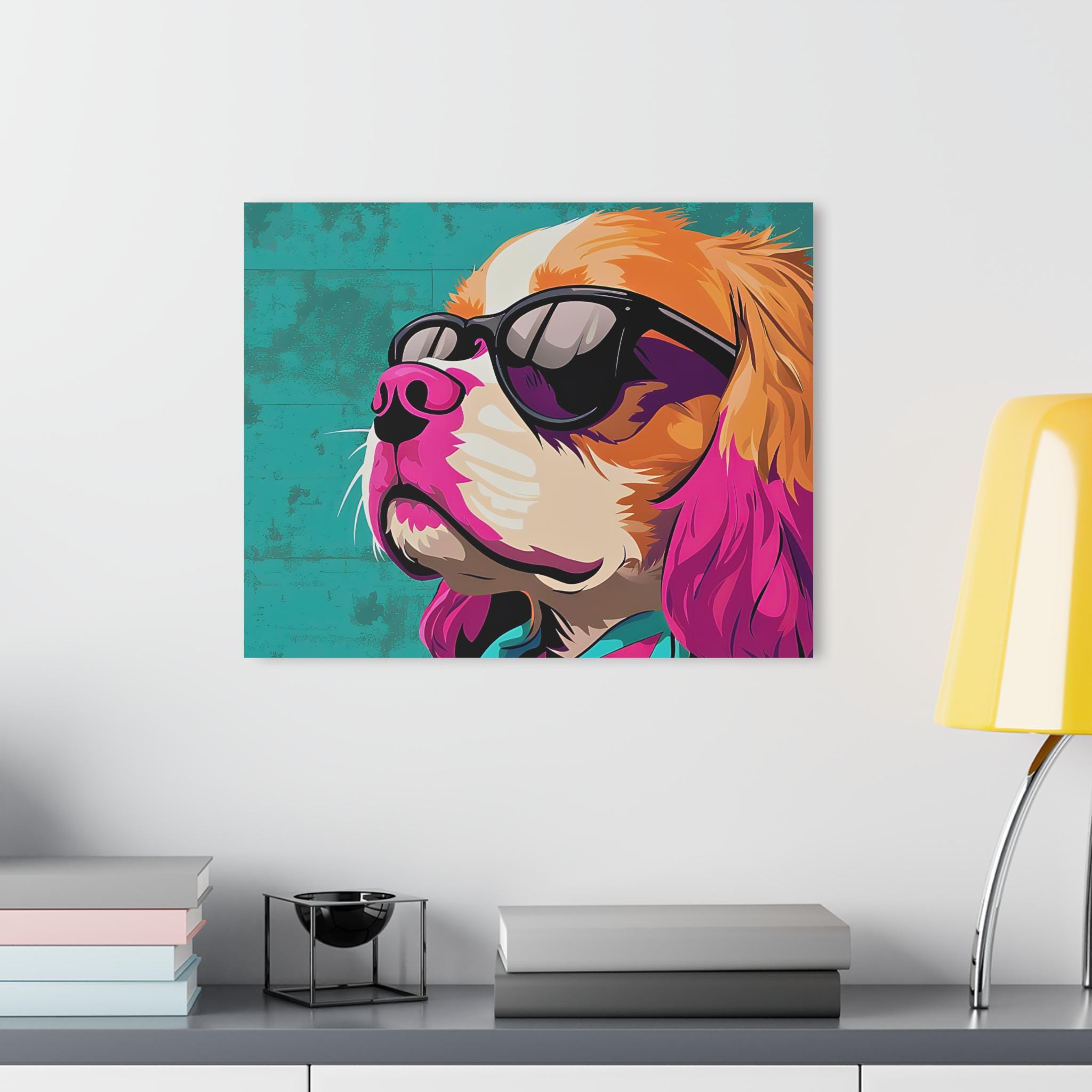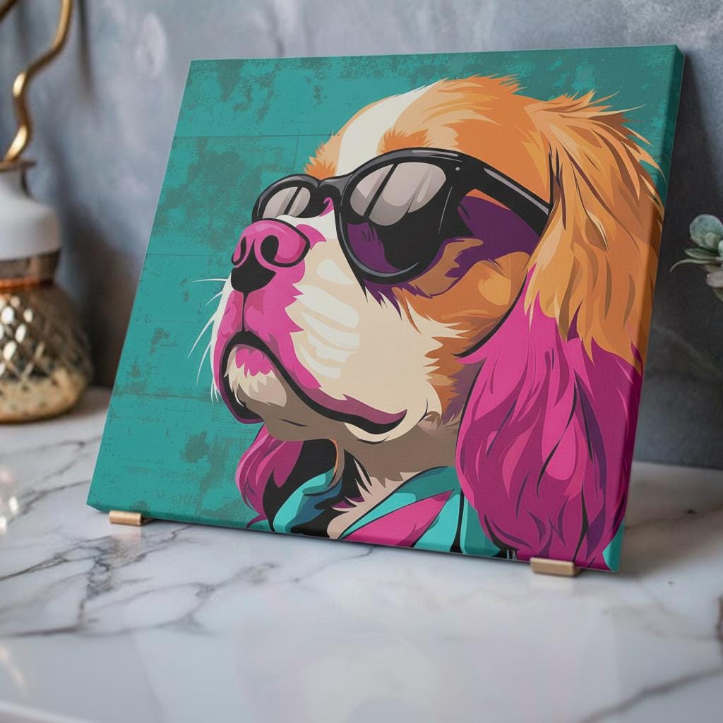Imagine a favorite room transformed by one confident image — a pop-art dog wearing sunglasses, its colors saturated and alive against a muted background. It livens up living rooms, home offices, or entryways and sits naturally in homes that celebrate personality, pets, and bold design. The wall-ready hardware and clear installation instructions mean you spend less time fussing and more time admiring.