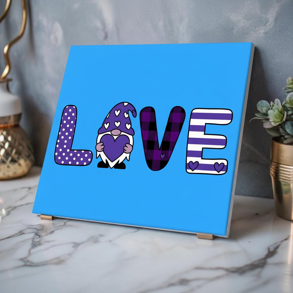 Bright, glossy acrylic artwork that brings a playful, heart-forward vibe to any room. The layered, crystal-clear finish makes the colors pop — from soft polka dots to bold stripes — while the adorable gnome holding a heart adds a whimsical, comforting touch. Mounted on a secure French cleat, this panel hangs flush and steady, ready to join a gallery wall, nursery, or cozy reading nook. It wipes clean easily and keeps its shine, so the cheerful message stays vivid over time.