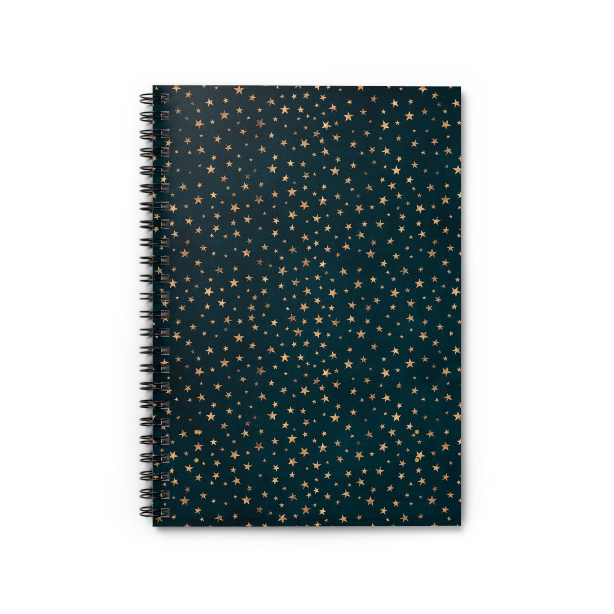 A compact spiral notebook wrapped in a midnight-speckled cover that feels like holding a little night sky. The ruled pages invite steady handwriting, quick lists, and midnight thoughts; the metal spiral lays flat for easy sketching or note-taking and lets you tear out pages cleanly when you need to share. Inside the back cover a slim document pocket tucks receipts, ticket stubs, or loose notes out of the way. Sturdy 350gsm covers protect 118 lined pages of 90gsm paper, while the dark grey back cover and printed front give it a calm, timeless look. It slips into bags easily and stays ready for meetings, classes, or late-night journaling sessions.