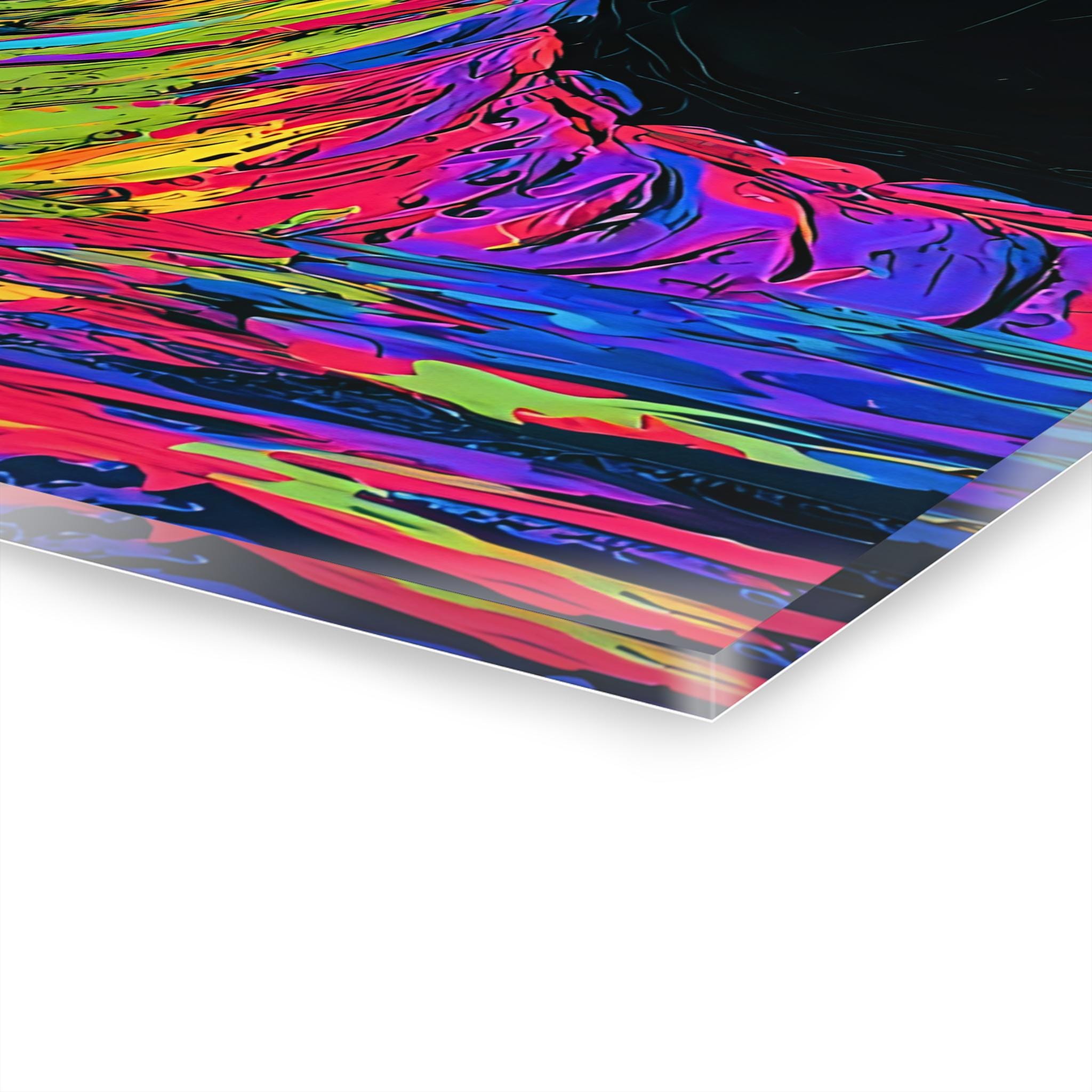 A vibrant acrylic print that brings bold color and playful energy to any wall. The glossy 0.25" grade-A acrylic surface amplifies the rich, neon palette while the white vinyl backing keeps colors crisp and true. Hung with a secure French cleat, it sits flush to the wall and feels like a modern piece of gallery art. The durable, water-resistant finish wipes clean, and the hand-polished edges give a clean, jewel-like frame. This piece livens up a room without fuss and installs in minutes with the included hardware and instructions.