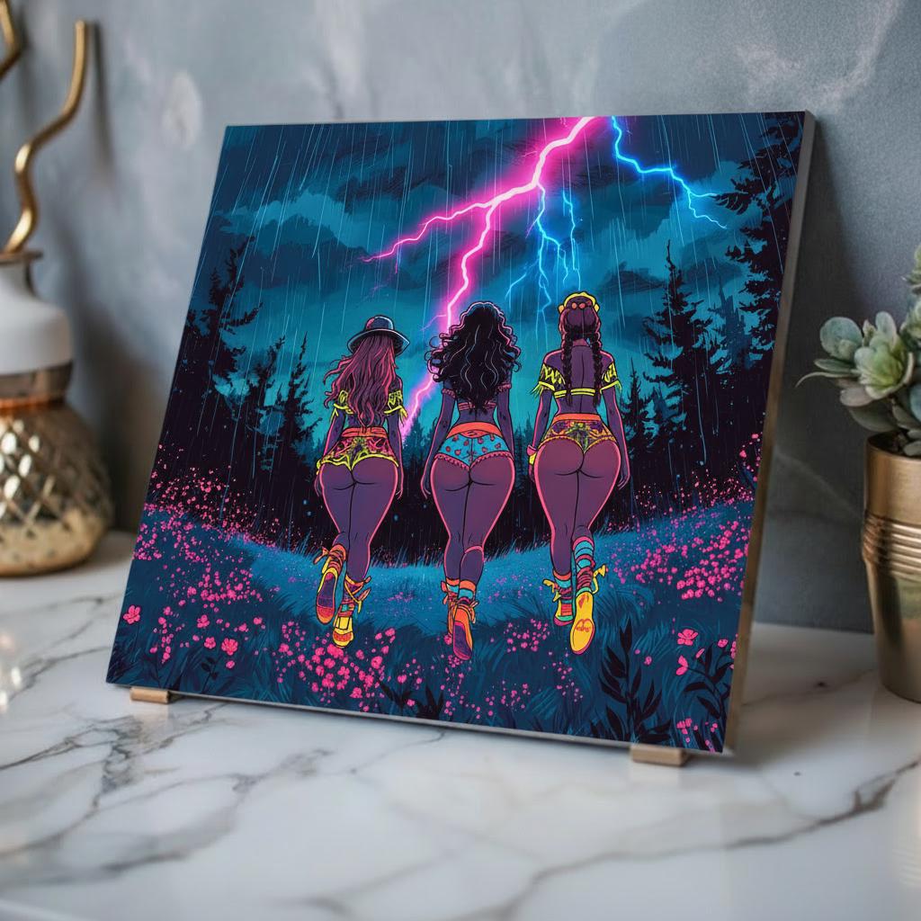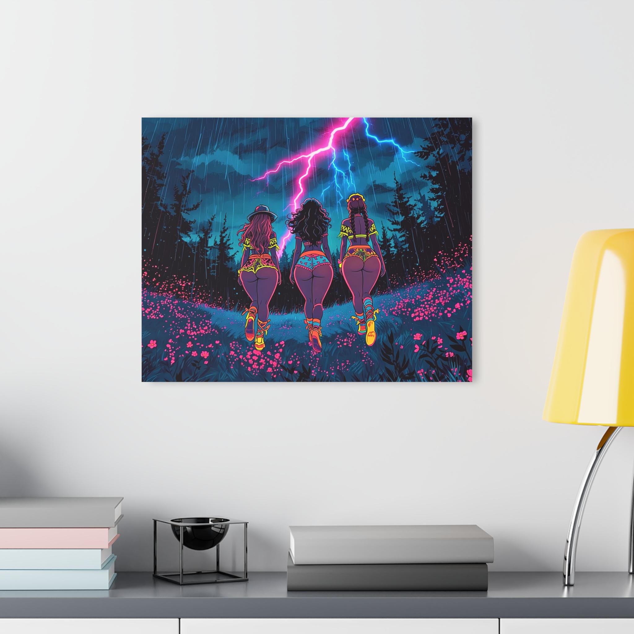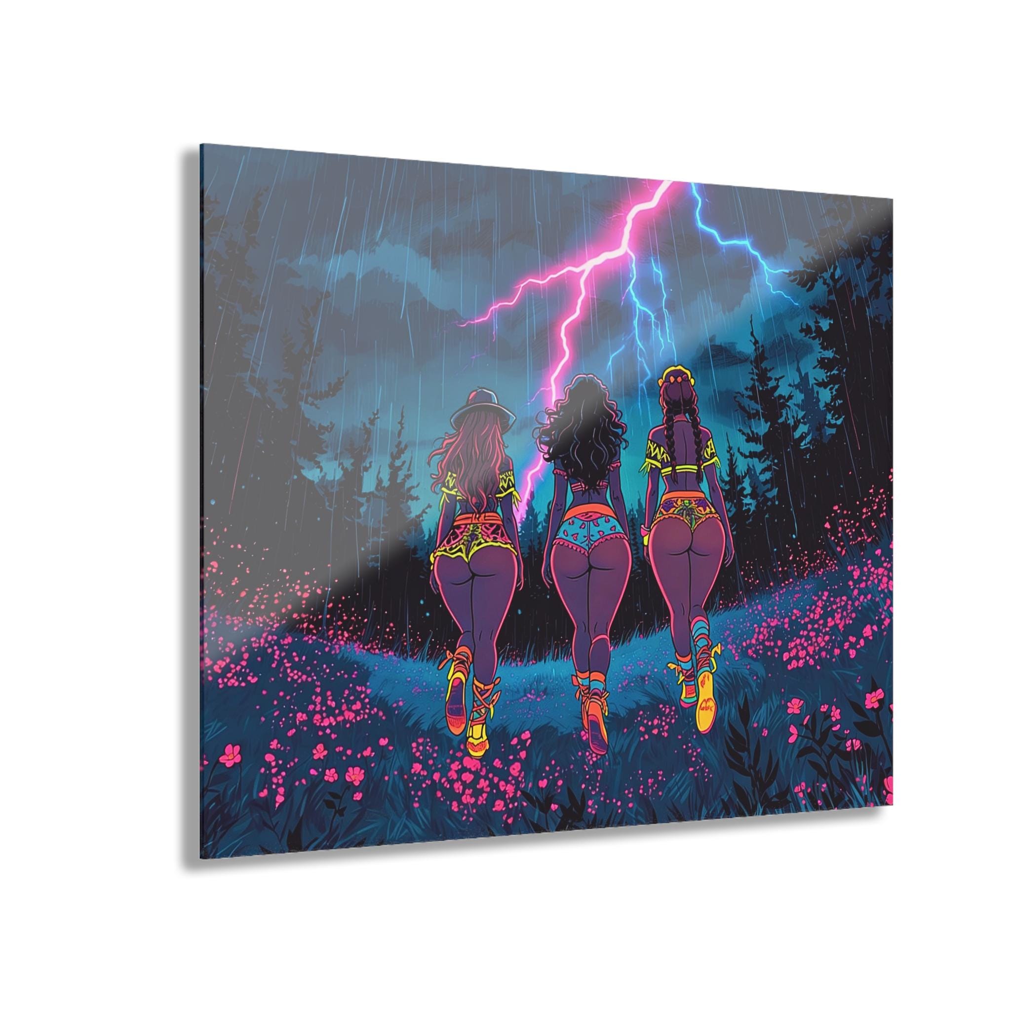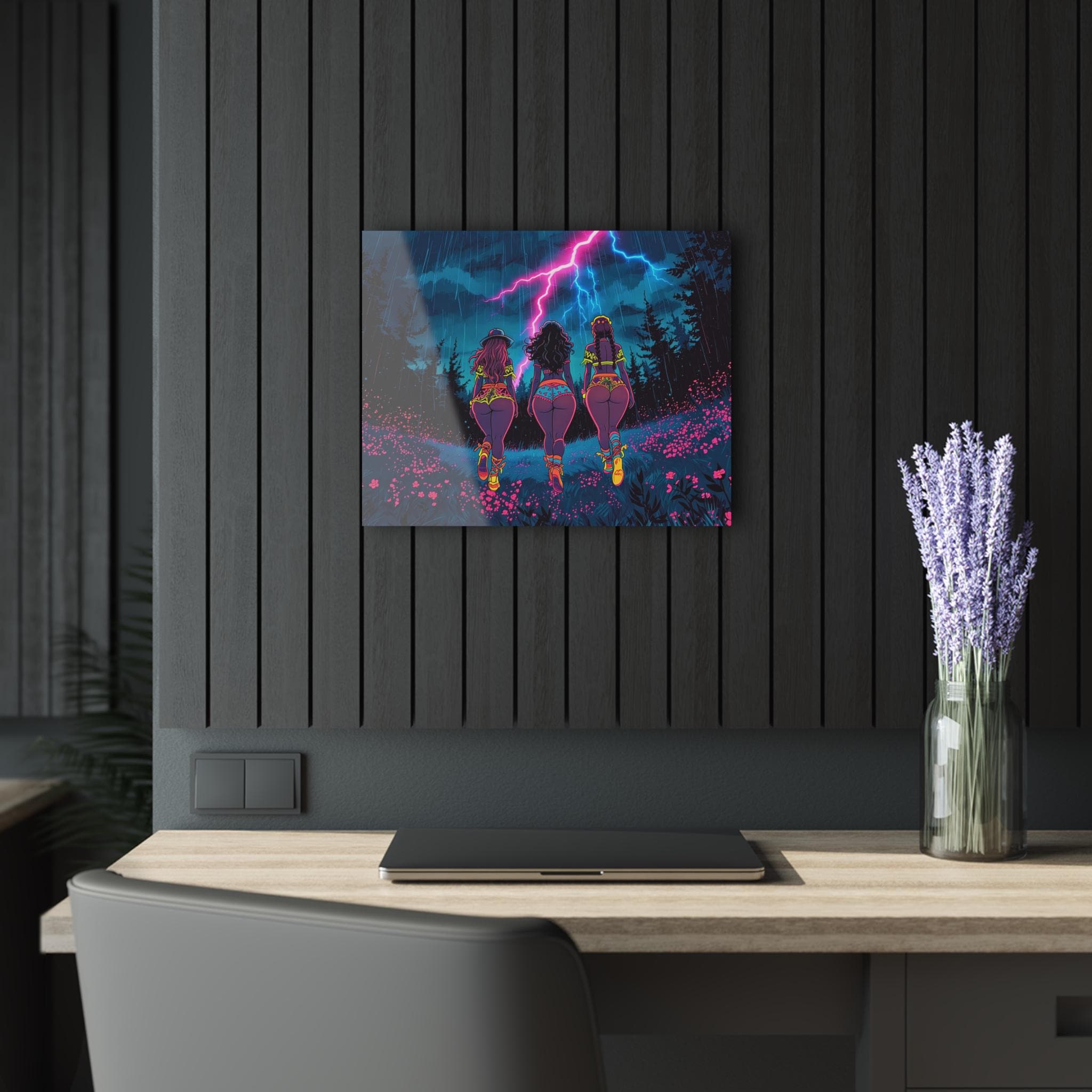 This acrylic print brings neon-soaked, cinematic energy to your wall. Deep, saturated colors and mirror-like clarity make every detail pop — from the storm-lit sky to the electric glow along the horizon. Mounted on 0.25" grade-A acrylic with a white vinyl backing, the piece feels both lightweight and substantial. The included French cleat system makes installation secure and straightforward: hang it level, step back, and let the light bounce off the polished edges. Water-resistant and easy to wipe clean, it suits lively interiors where bold art meets durable materials.