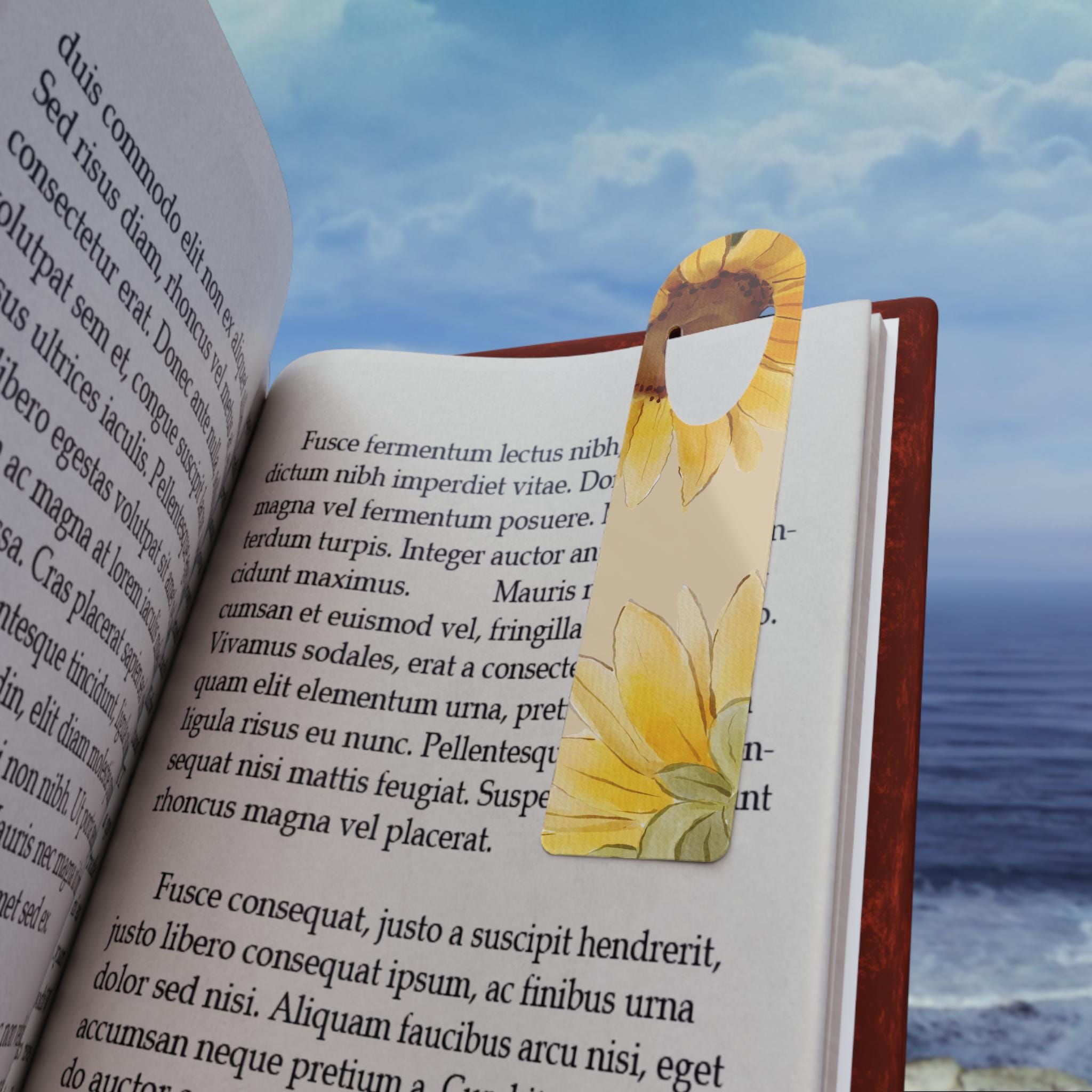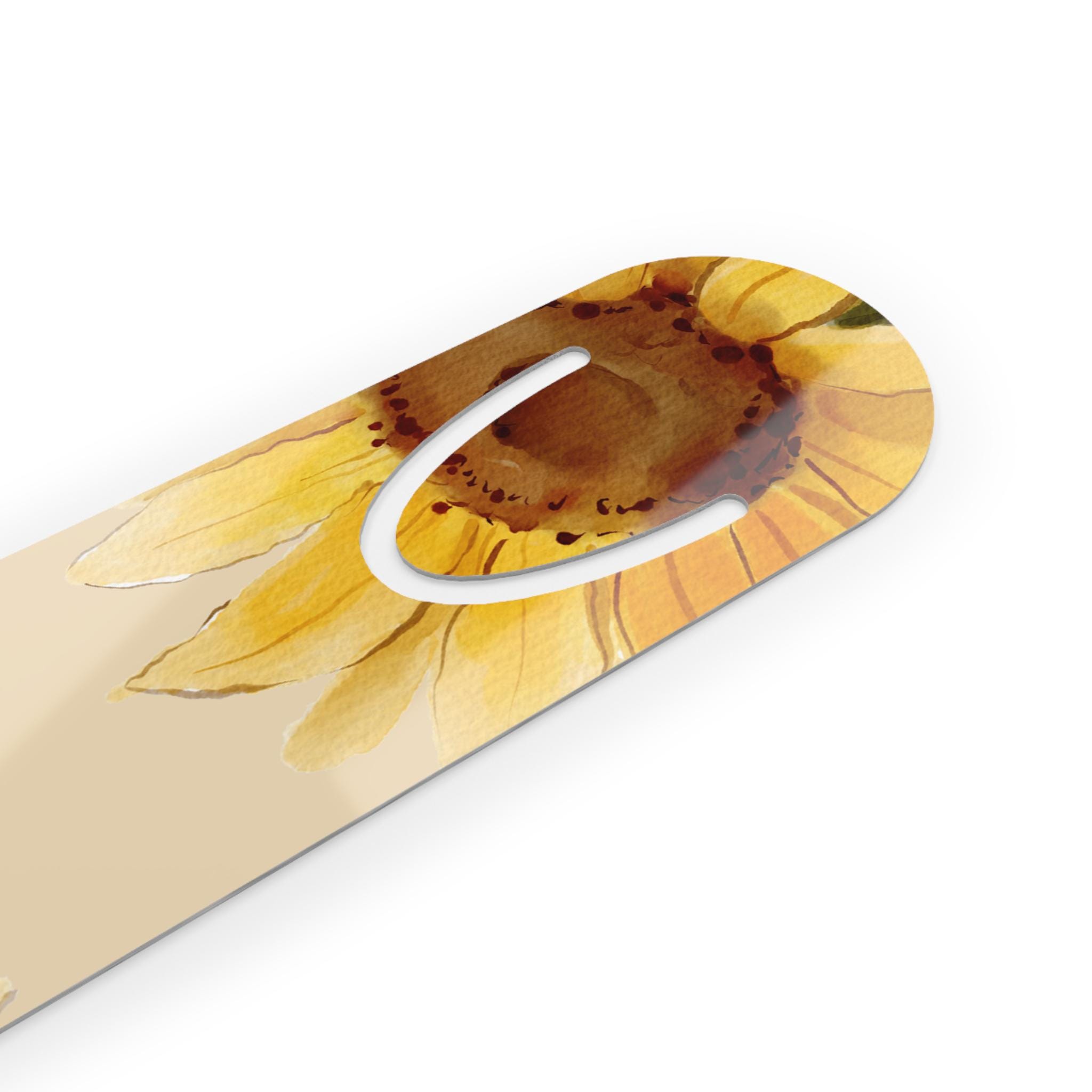 A slim, artful aluminum bookmark that slips into your pages and brings a warm, sunny pause to every reading session. Lightweight and smooth with rounded edges, this bookmark feels gentle between fingers and rests flat against the page. The white front is printed with vivid, painterly sunflower artwork that keeps its colors bright and true. The U-shaped slot at the top hugs the page so the marker stays put without folding the paper. It’s assembled in the USA from globally sourced parts and made to travel between chapters, totes, and coffee-stained tables with quiet confidence.