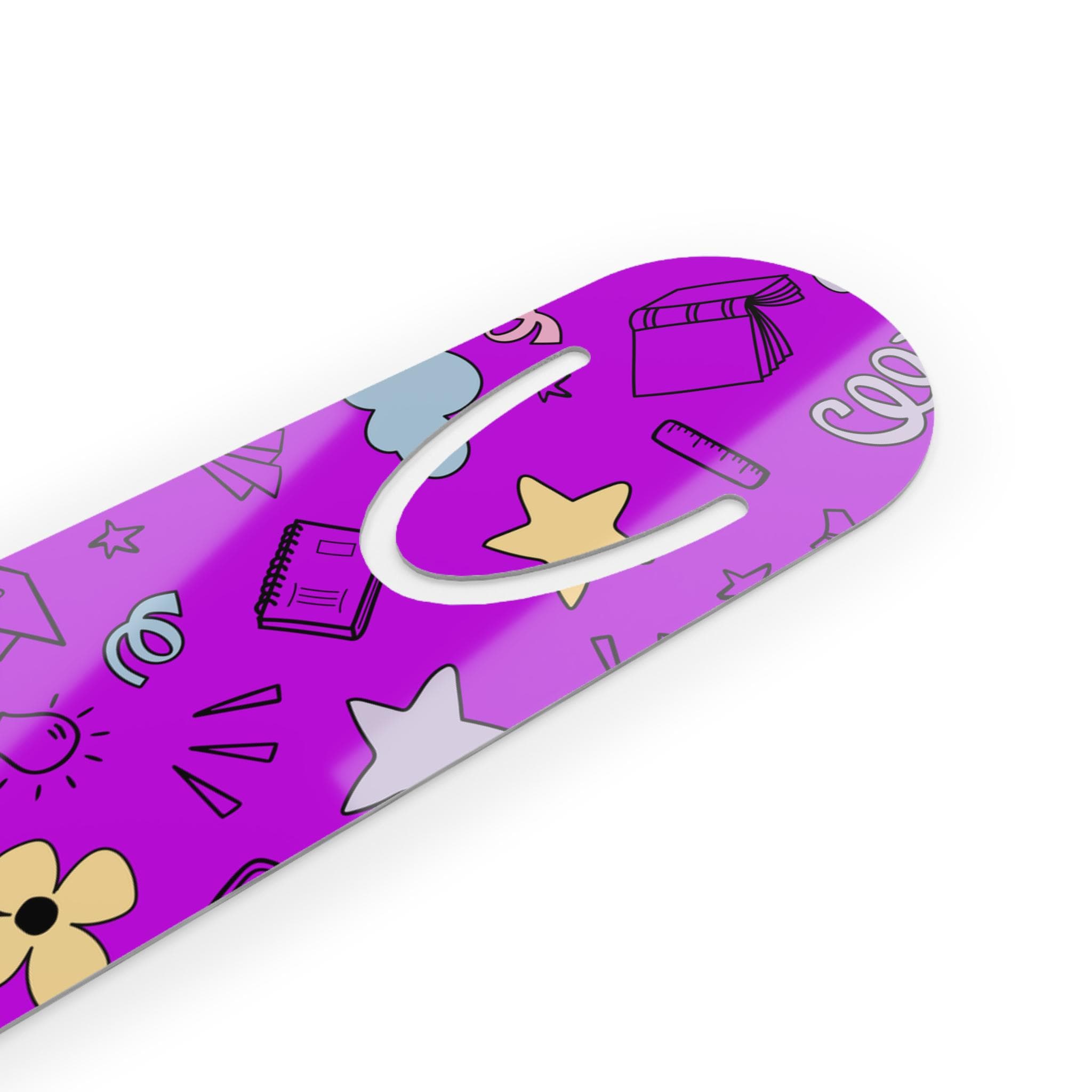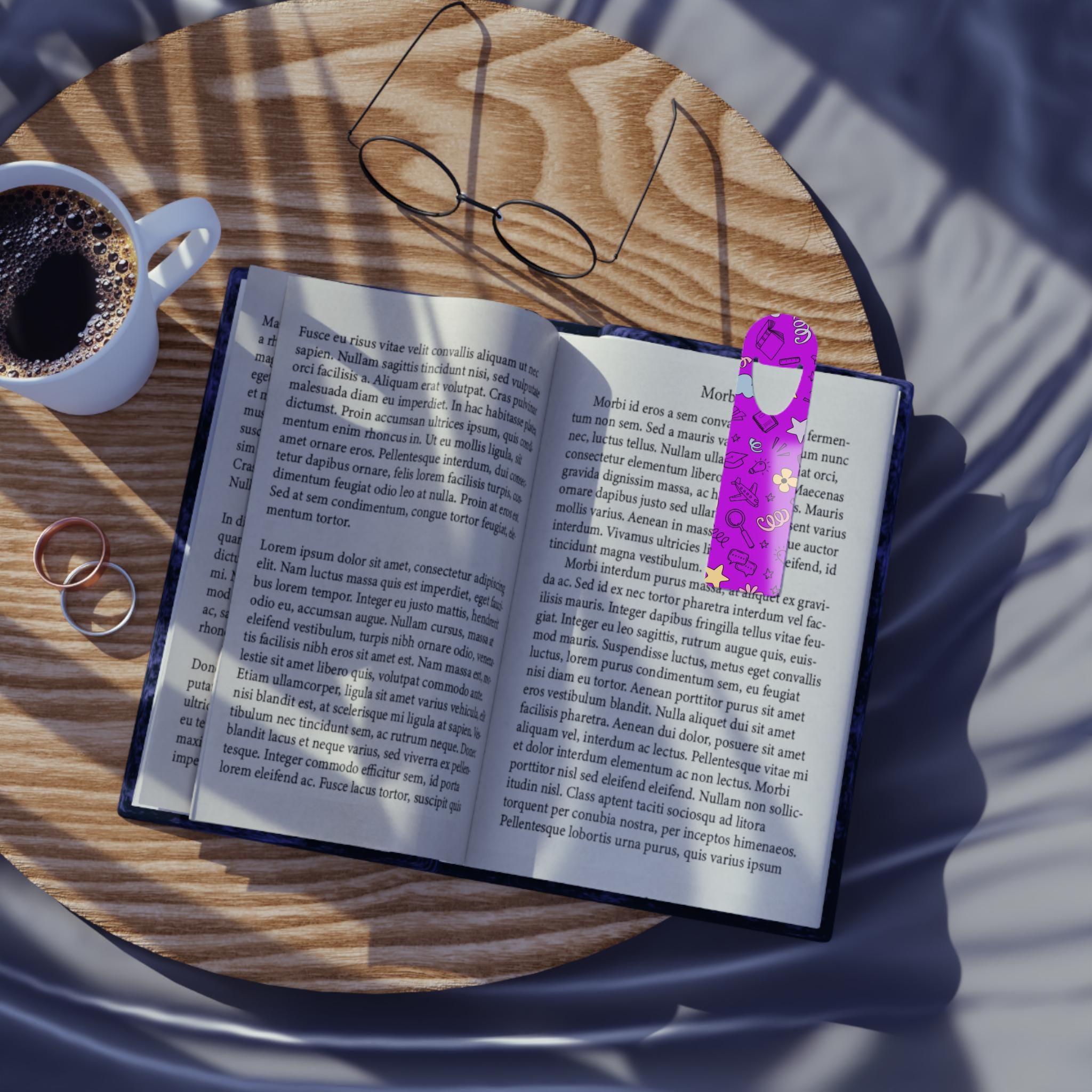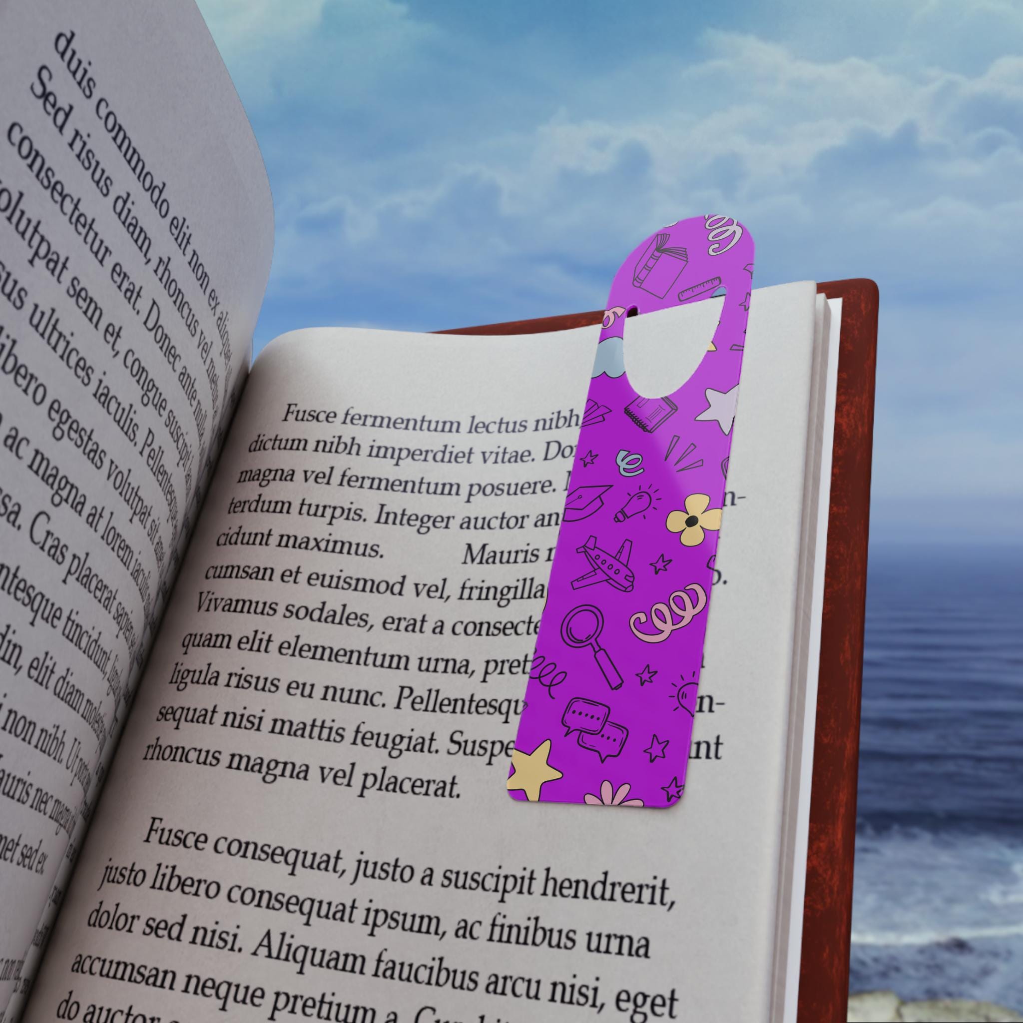 A slim, lightweight aluminum bookmark that brings color and personality to every reading session. The rounded-top design and convenient U-shaped slot tuck securely over a page, keeping your place without bulky clips or creases. The front surface accepts a single-sided, high-resolution print so your chosen artwork or pattern appears bright and crisp against a white base. At just 9 grams, it slips into pockets and tote bags effortlessly. Durable aluminum construction resists bending and everyday wear, while the vibrant printing captures playful icons and bold hues that pop from the page. Assembled in the USA from globally sourced parts, this bookmark fits well into the routines of readers who savor small, beautiful details and like their accessories to be both functional and expressive.