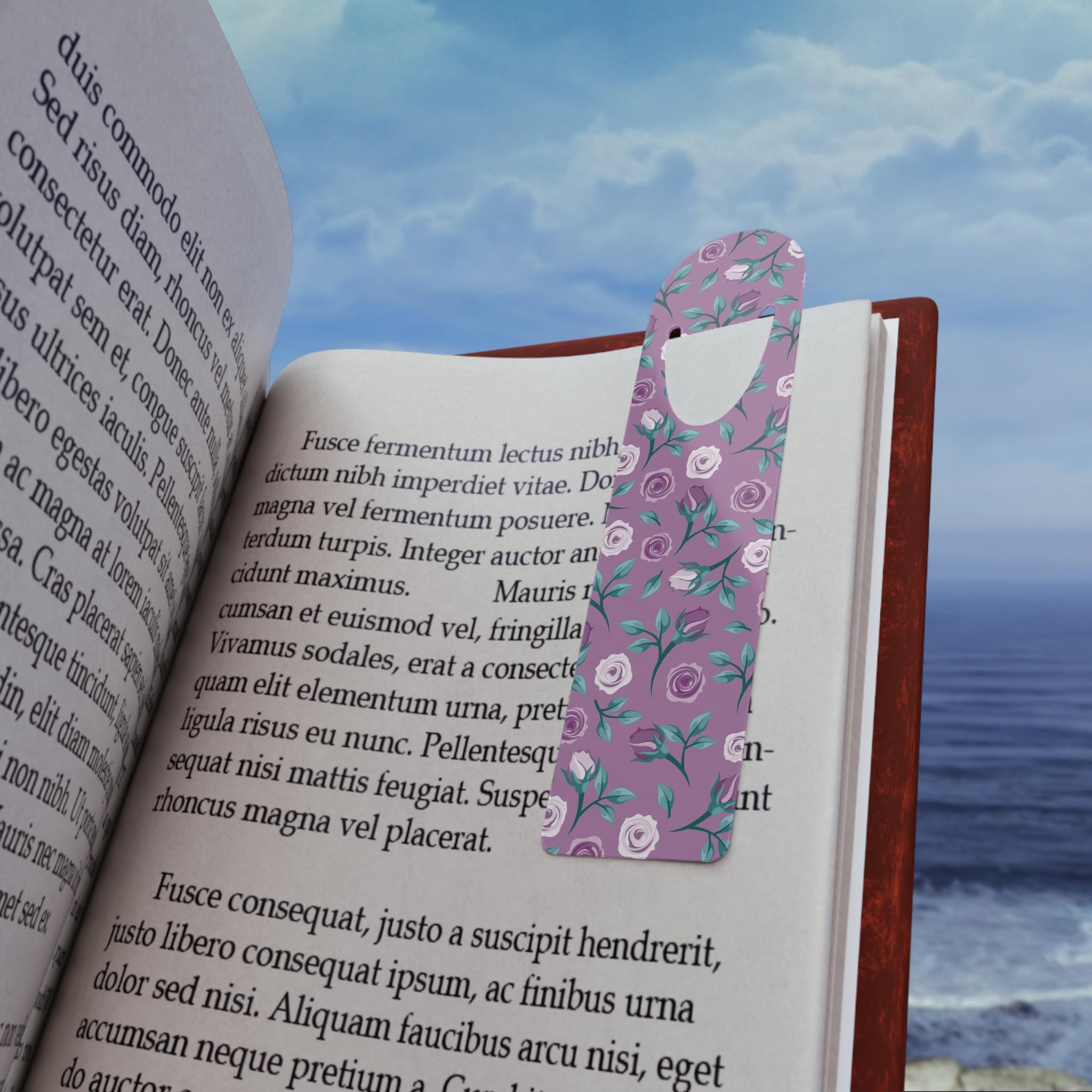 A slim, elegant aluminum bookmark that slips into a reader’s routine like a familiar bookmark from a beloved novel. Lightweight and durable, this rounded-top bookmark features a single-sided floral print in vivid purples and greens, with a neat U-shaped slot to hold the page securely. It feels cool and smooth in hand, and the bright print keeps your place with a touch of charm — whether you’re curled up with a cozy paperback or carrying a stack of library finds. Assembled in the USA from globally sourced parts, this bookmark is made for people who linger over lines, savor margins, and return to stories again and again.