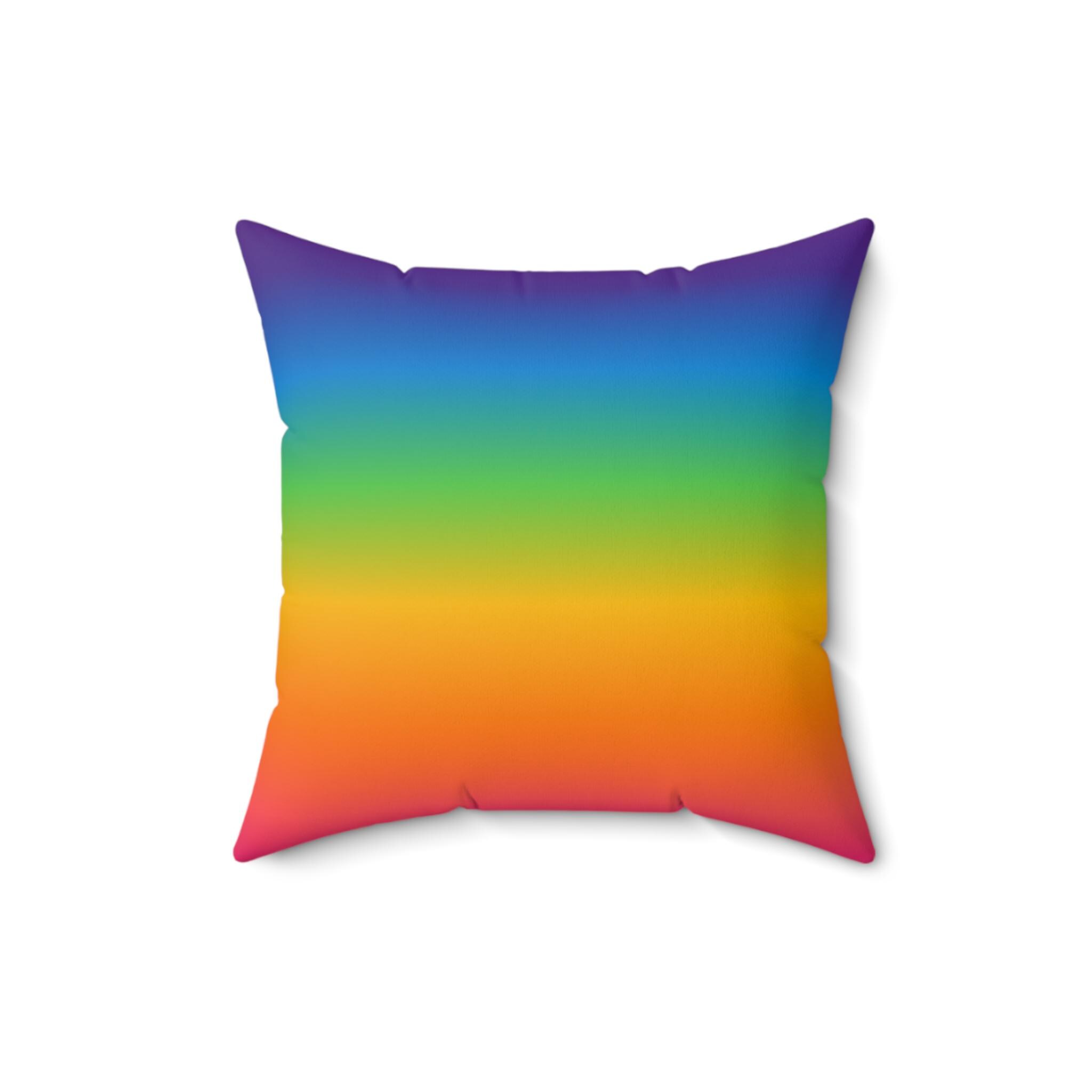 This square pillow brings a burst of color and calm energy to living rooms, reading nooks, and bedrooms. The soft gradient flows from deep violet through blue and green into warm gold and coral, creating a balanced, uplifting focal point that anchors both neutral and bold interiors. The double-sided print keeps the color rich from every angle, while a concealed beige zipper keeps the edge clean and unobtrusive. Because the insert is slightly larger than the cover, the assembled pillow looks plump and well-formed — the kind of cushion you sink into during slow afternoons with a book or use to add a cheerful accent to a gallery wall. It’s lightweight, easy to care for, and designed to keep its shape without ironing, so it looks fresh out of the box and stays vibrant through daily use.