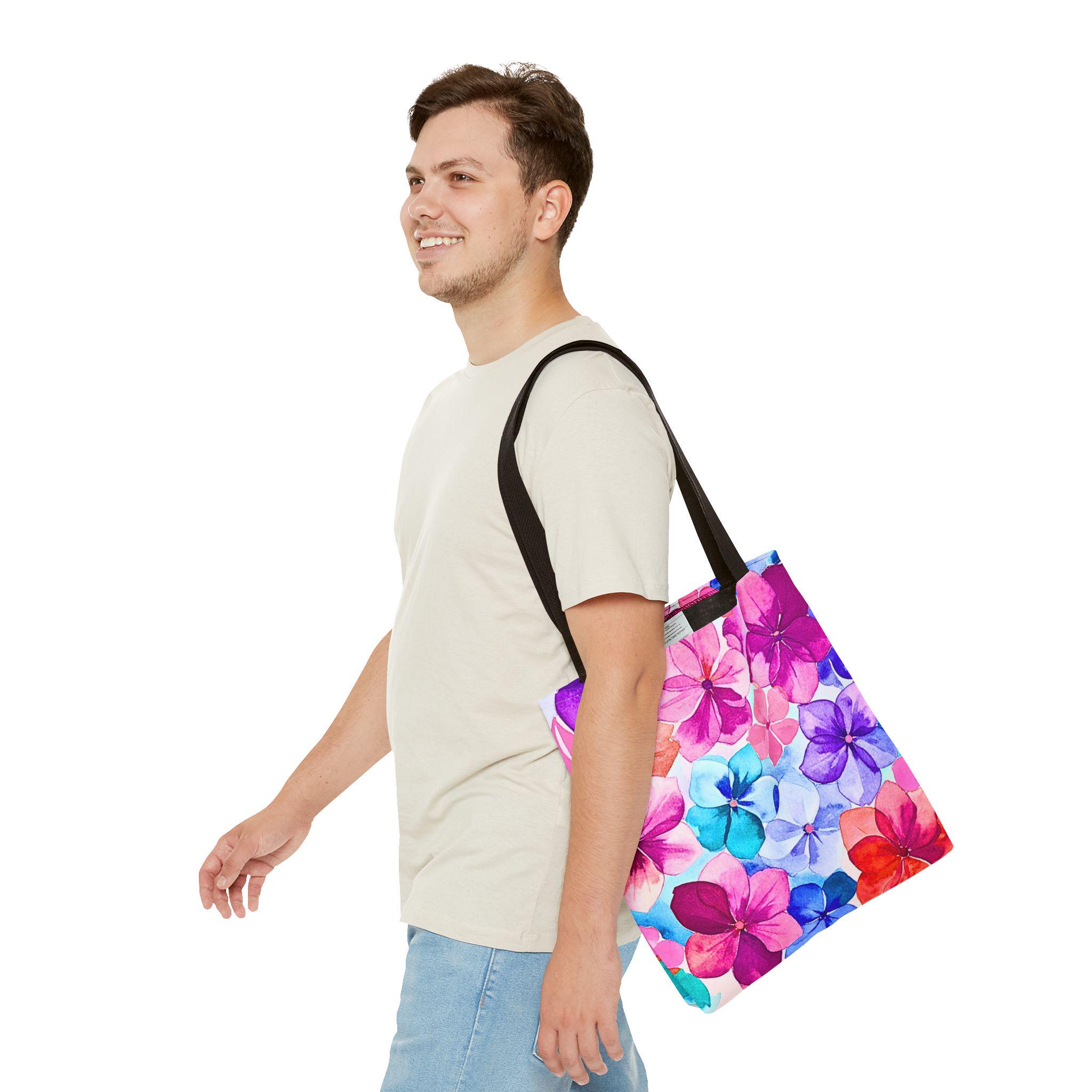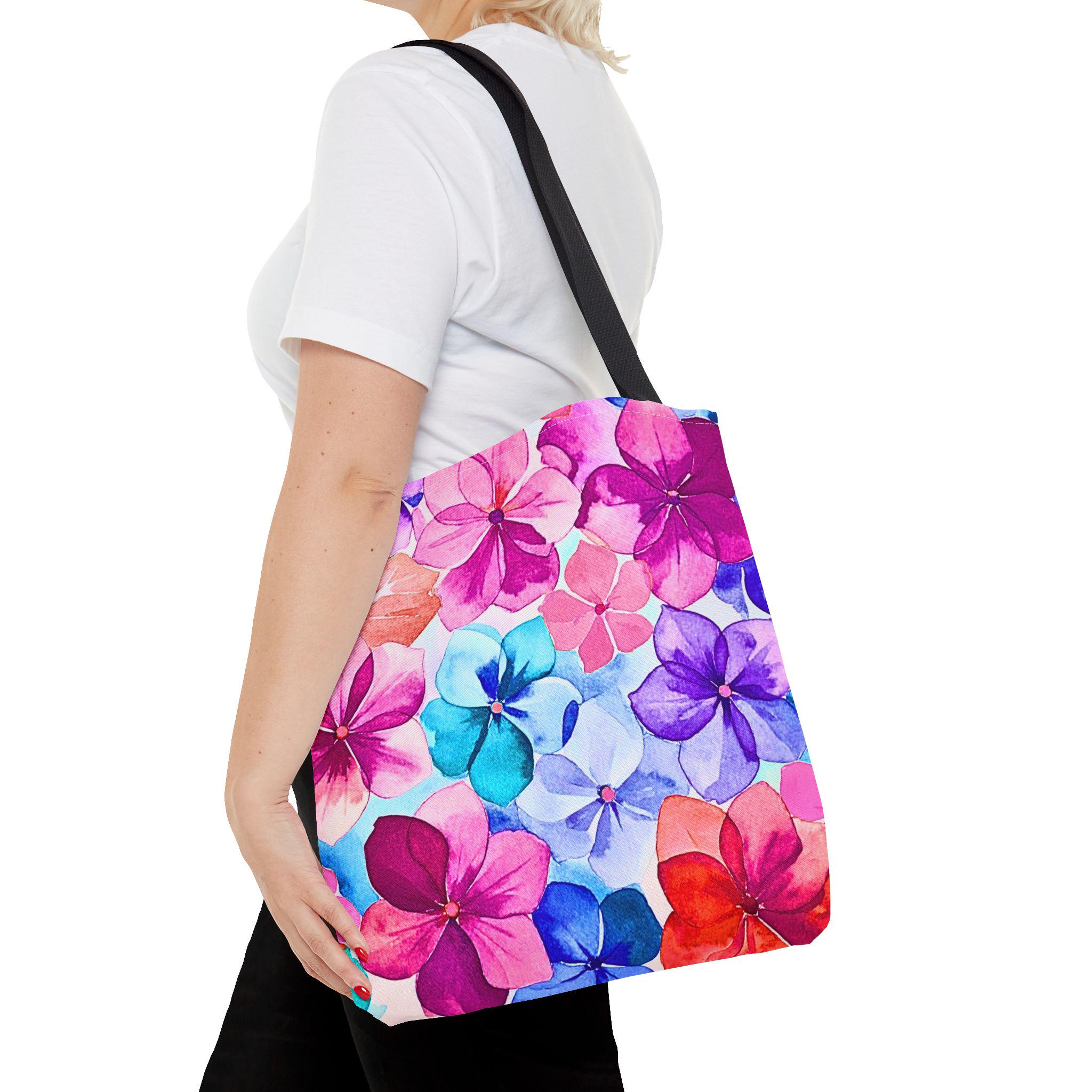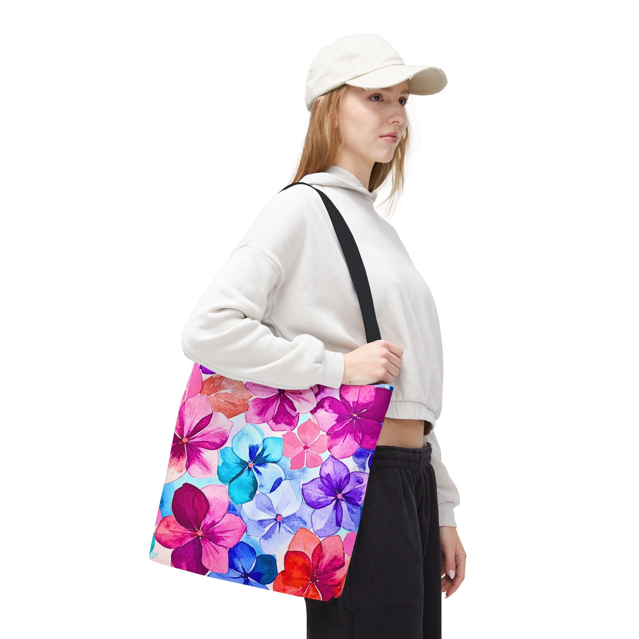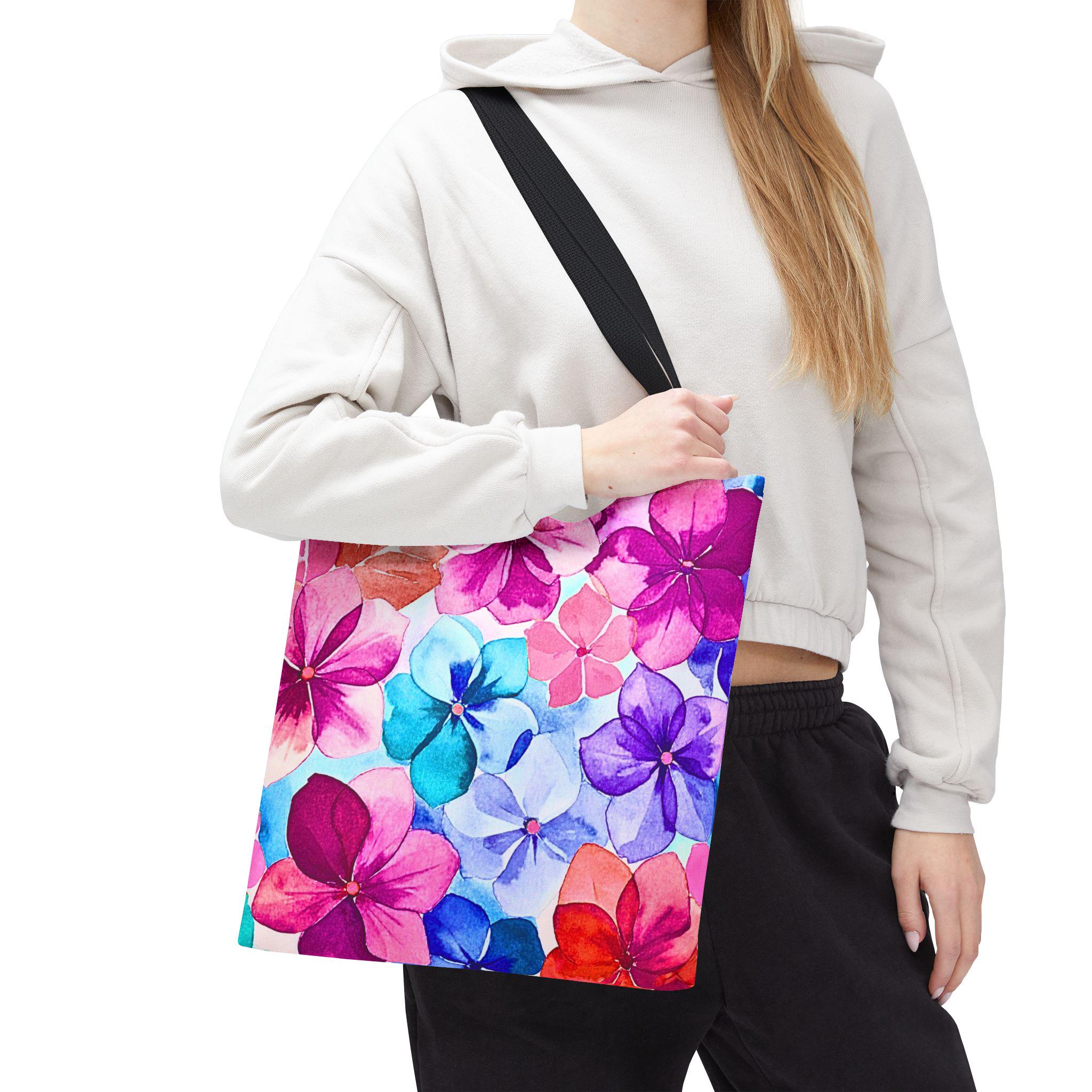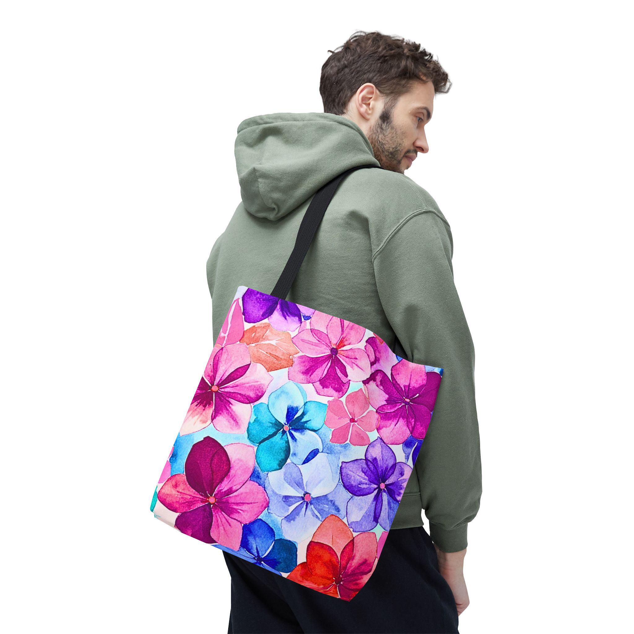 Bright, hand-painted blooms spill across this roomy tote, turning everyday errands into a little celebration. The vibrant watercolor flowers — pinks, violets, and aquamarine petals — feel light and joyful, like carrying a small bouquet with you. The tote’s structured boxed corners and reinforced handles hold their shape whether it’s filled with groceries or art supplies. Inside, a laminate lining keeps things tidy and easy to wipe, while durable polyester resists wear and dries fast after rainy commutes. It’s the kind of bag you reach for when you want color with function — for market mornings, studio runs or afternoons spent wandering with a coffee and a sketchbook.