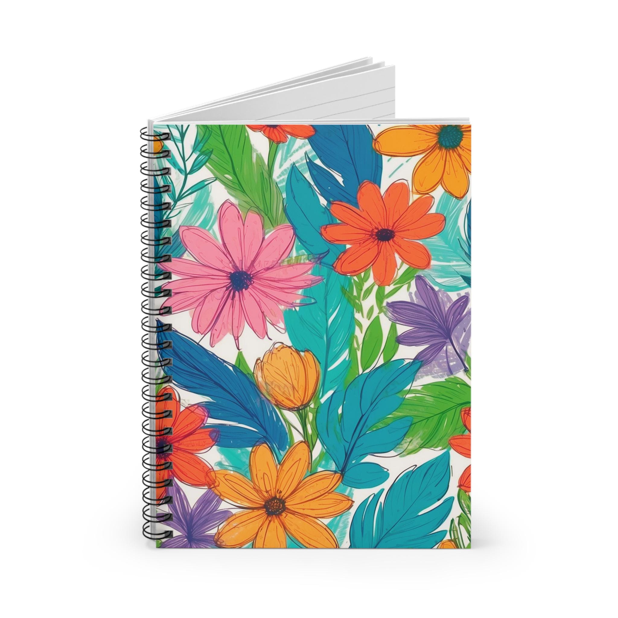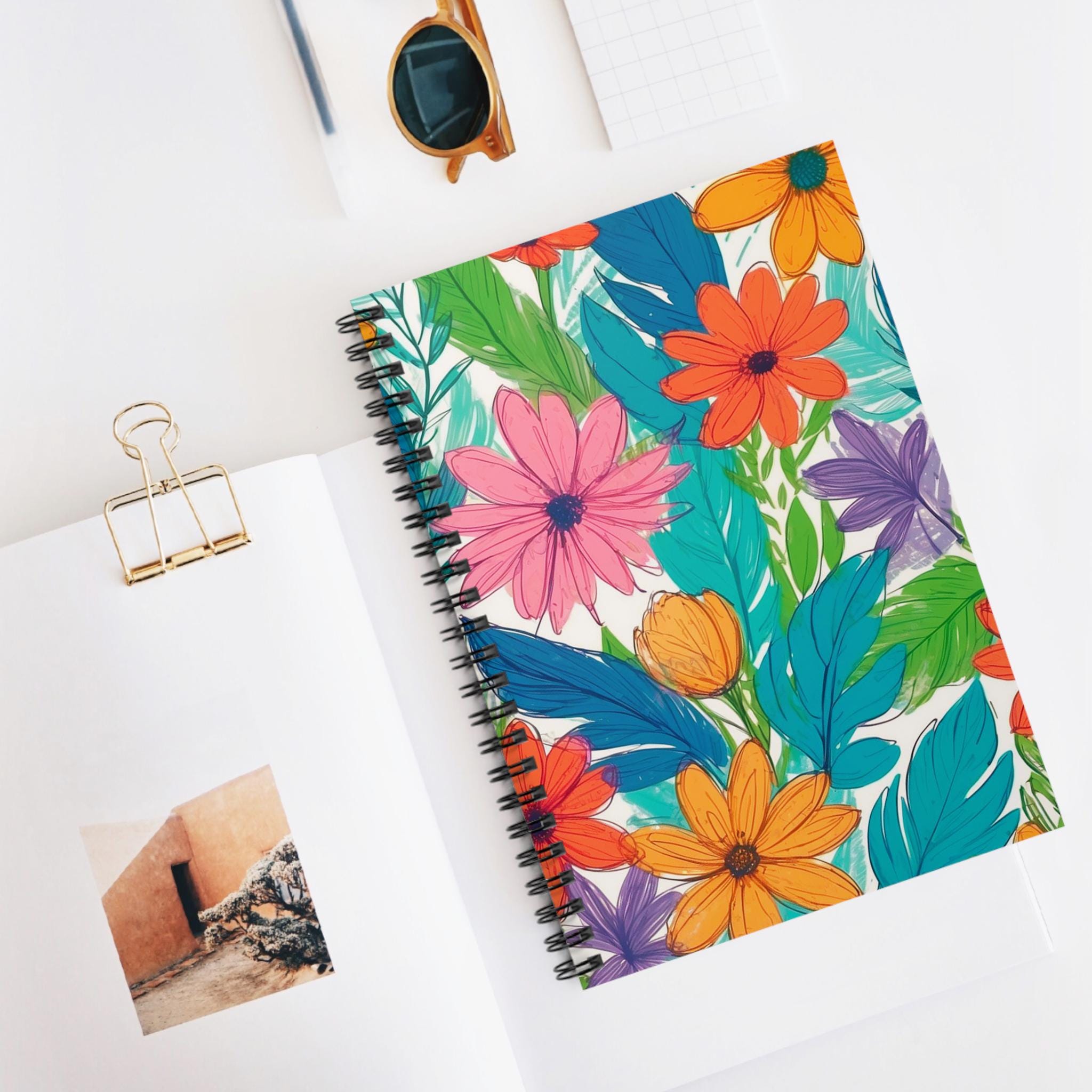 Bright, hand-painted blooms dance across a sturdy spiral notebook made for people who keep ideas close and colorful. The ruled 90gsm pages take pen and ink without fuss, while the metal spiral lays flat, so lines stay steady during long notes, lists, and sketches. A hidden document pocket in the back keeps loose receipts, ticket stubs, or inspiration clippings safe between pages. At 6" x 8" this notebook slips into backpacks and tote bags, ready for quick journaling on a coffee break or organized brainstorming at a desk.