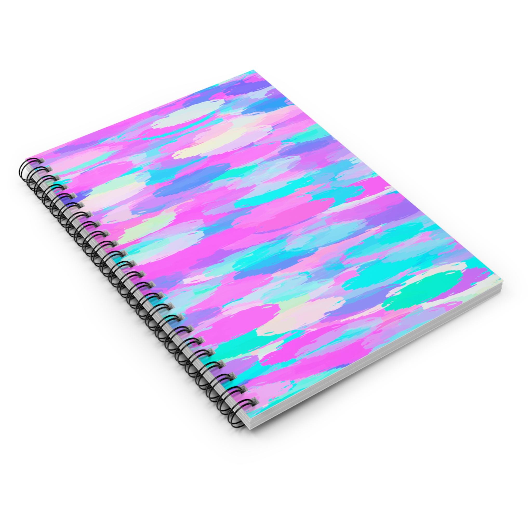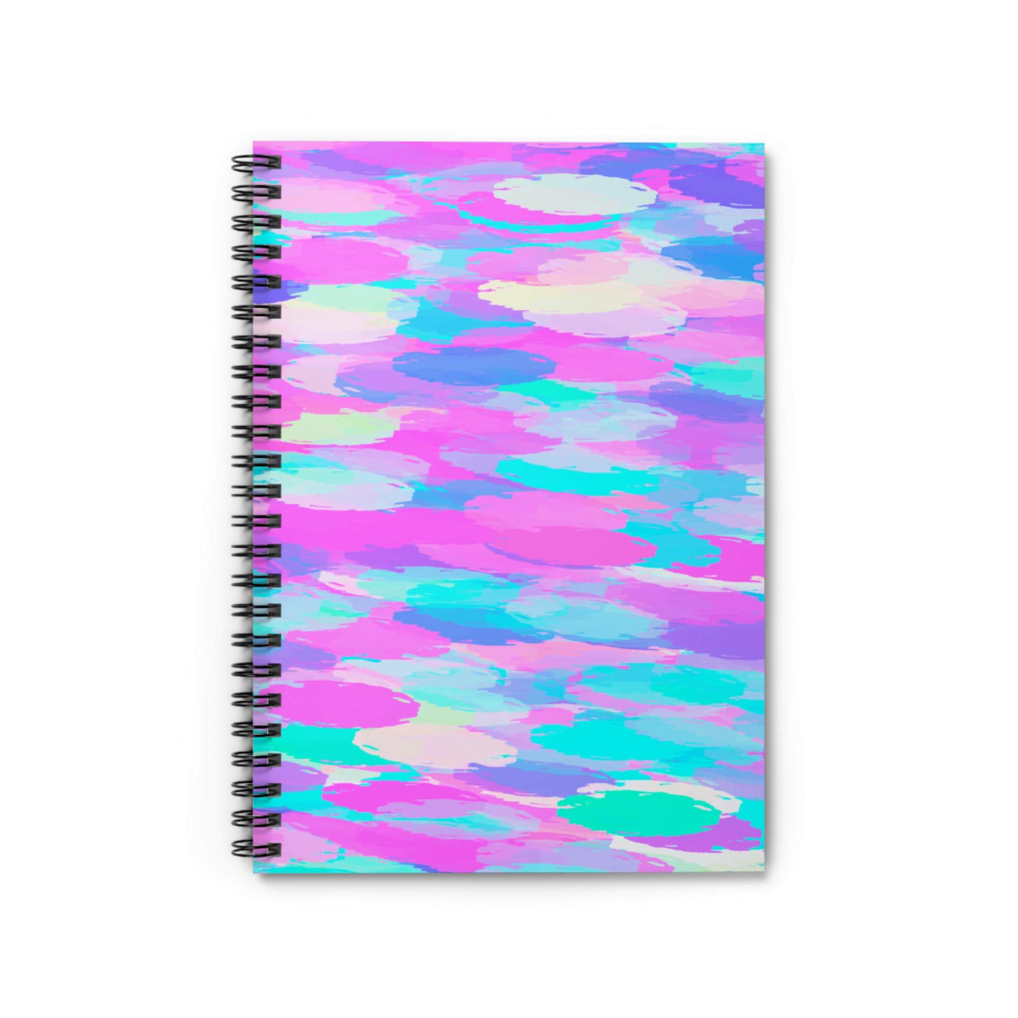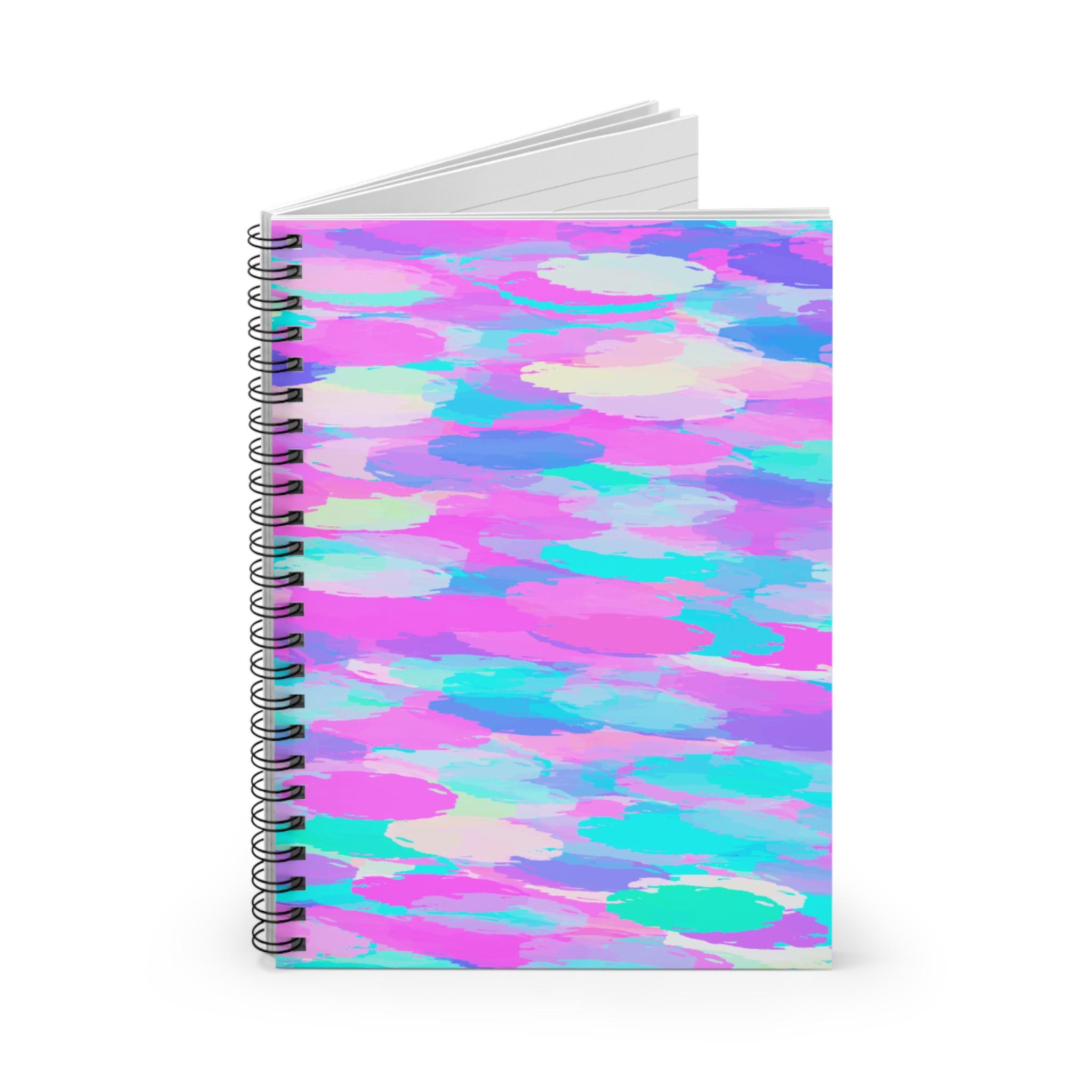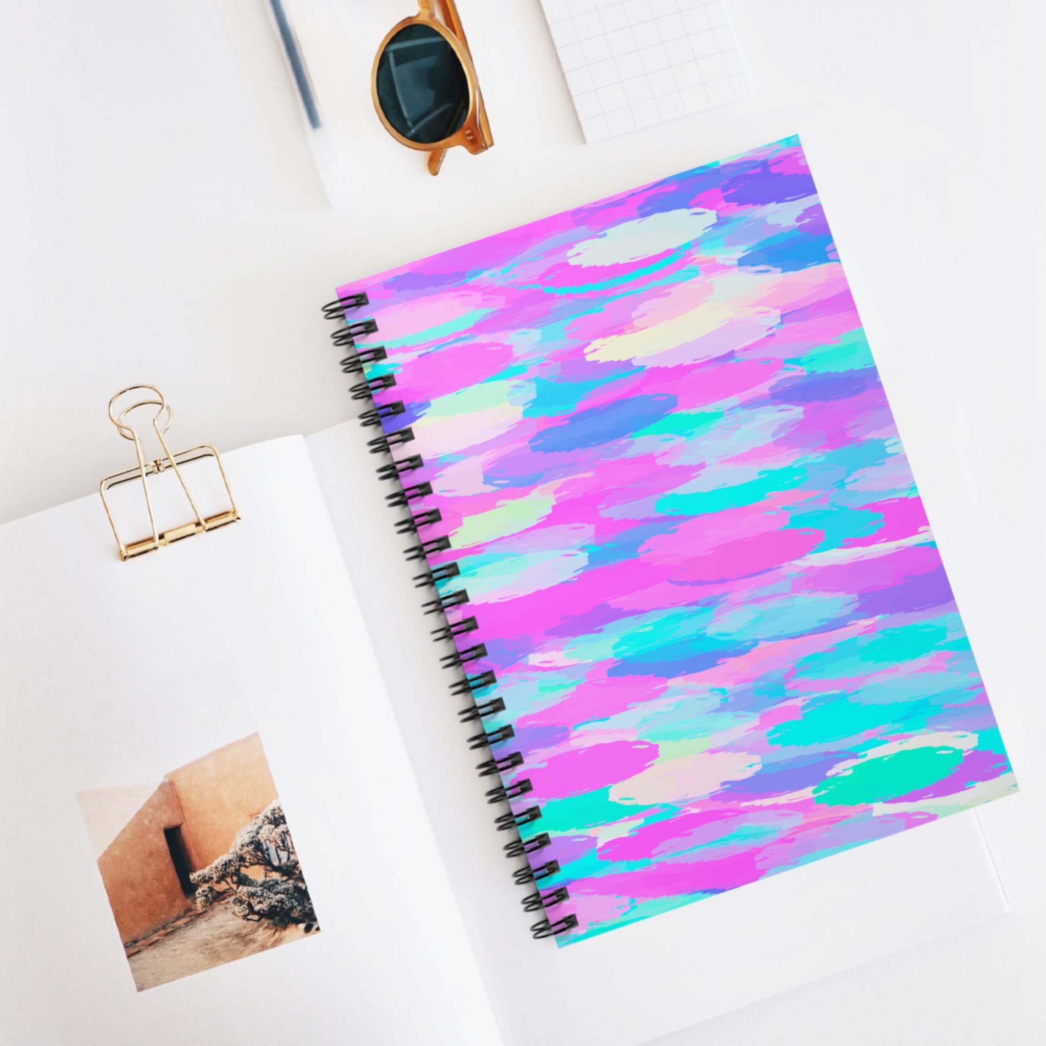 This vibrant spiral notebook brings a playful splash of color to everyday notes, journaling, and sketching. Its dreamy watercolor-inspired cover blends pastel pinks, purples, aqua, and mint into a cheerful wash that invites creativity. The sturdy 350gsm cover protects 118 ruled pages of smooth 90gsm paper—great for steady handwriting and ink flow. A metal spiral lets the notebook lie flat or fold back for easy writing on the go, and an inside document pocket keeps loose notes or receipts tucked safely away. At 6 x 8 inches it slips into tote bags and backpacks, ready for classes, cafes, or quiet evenings of journaling.