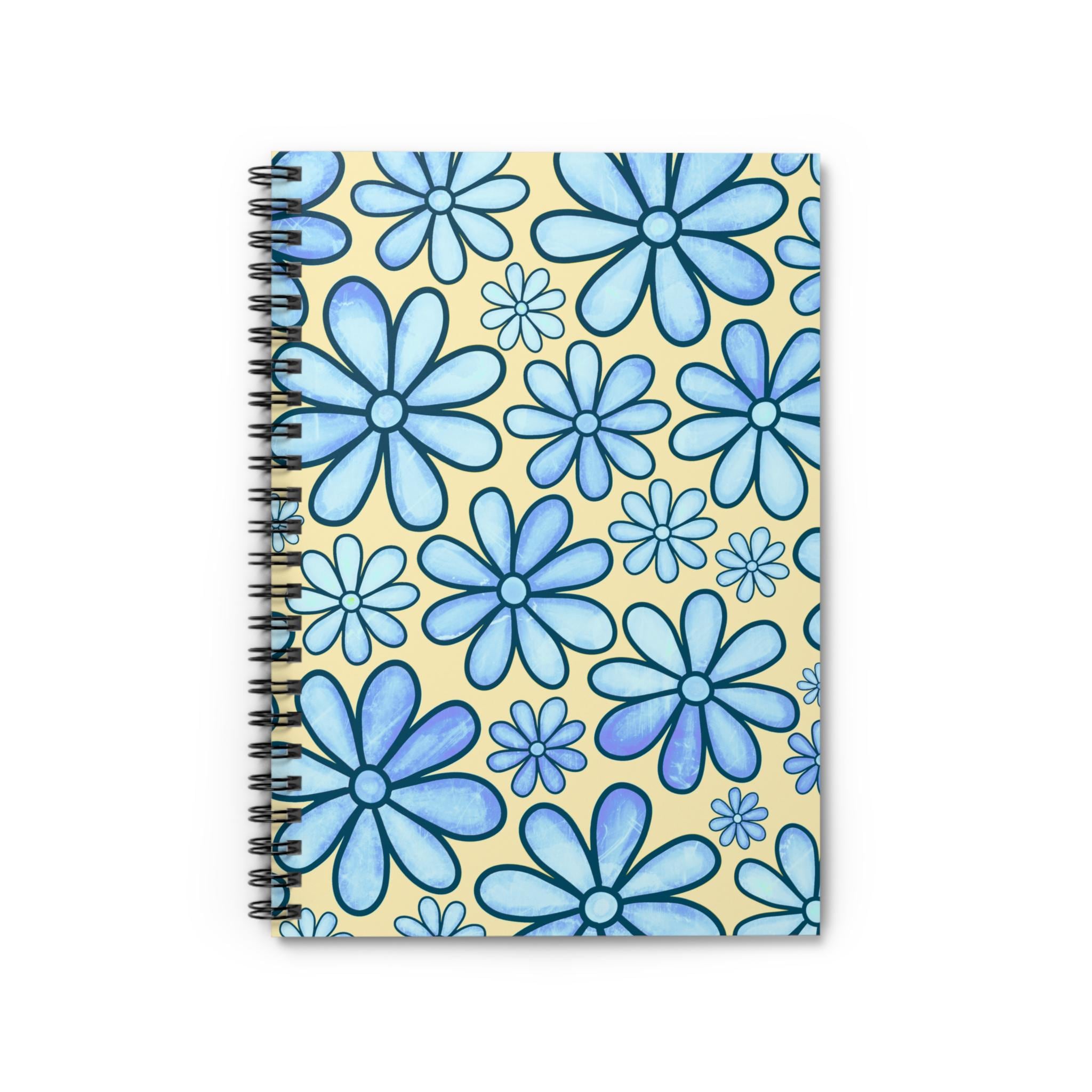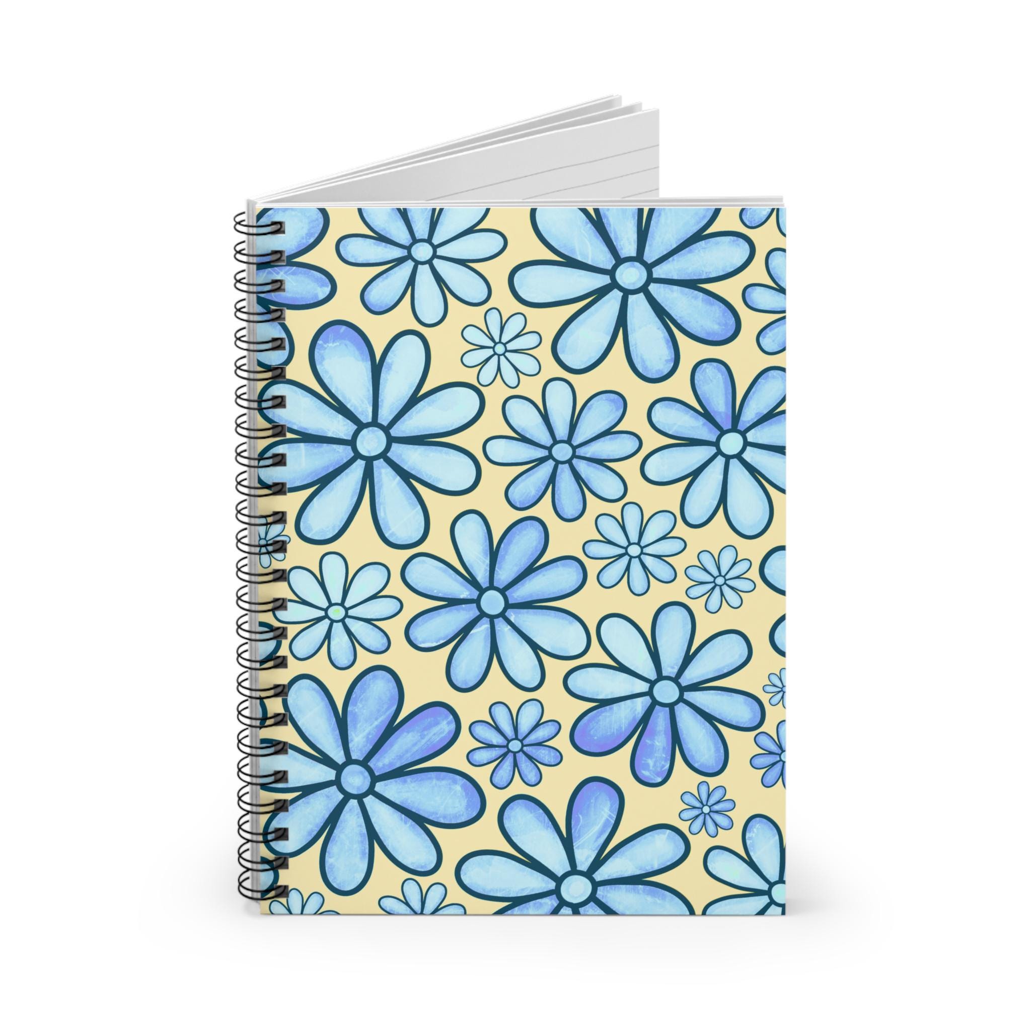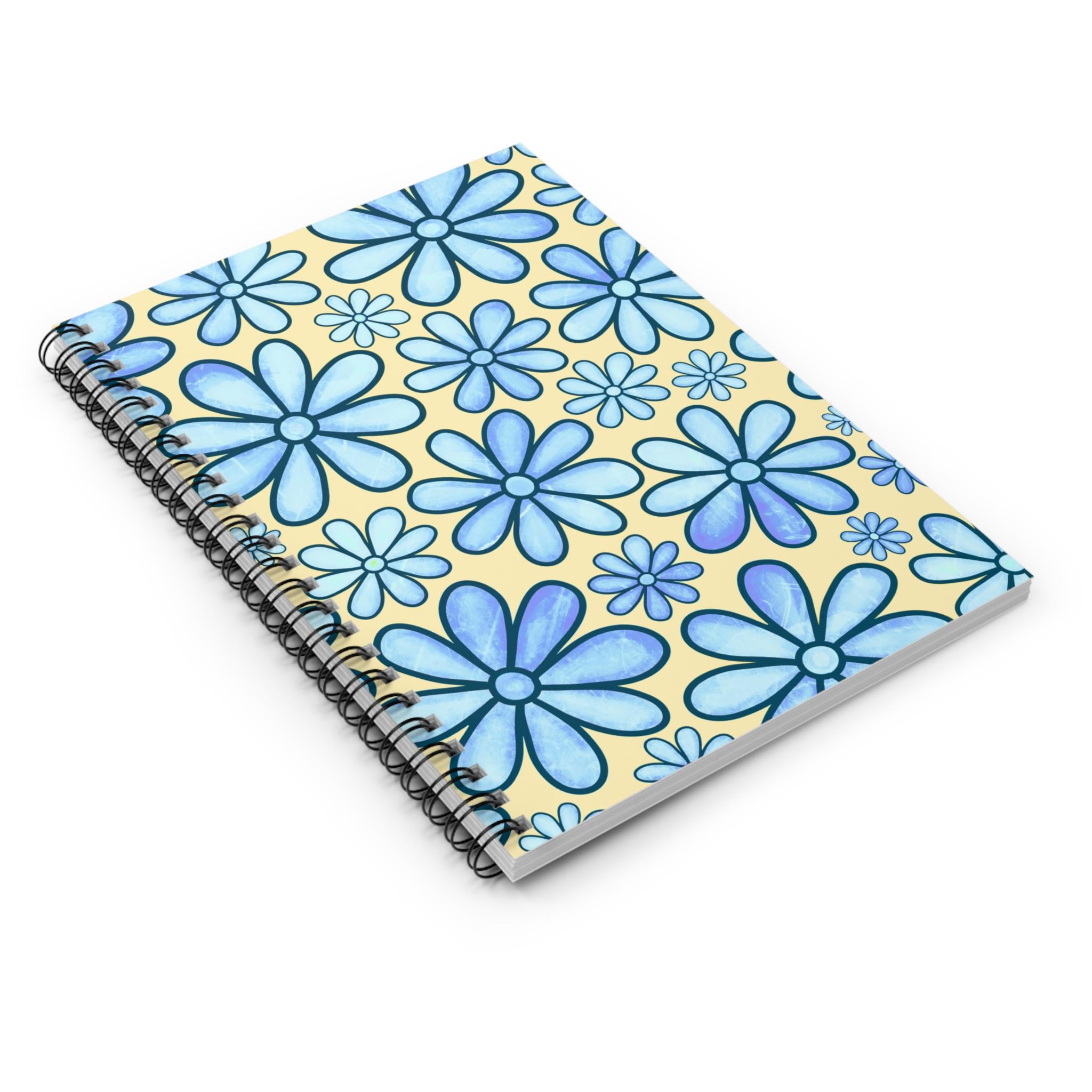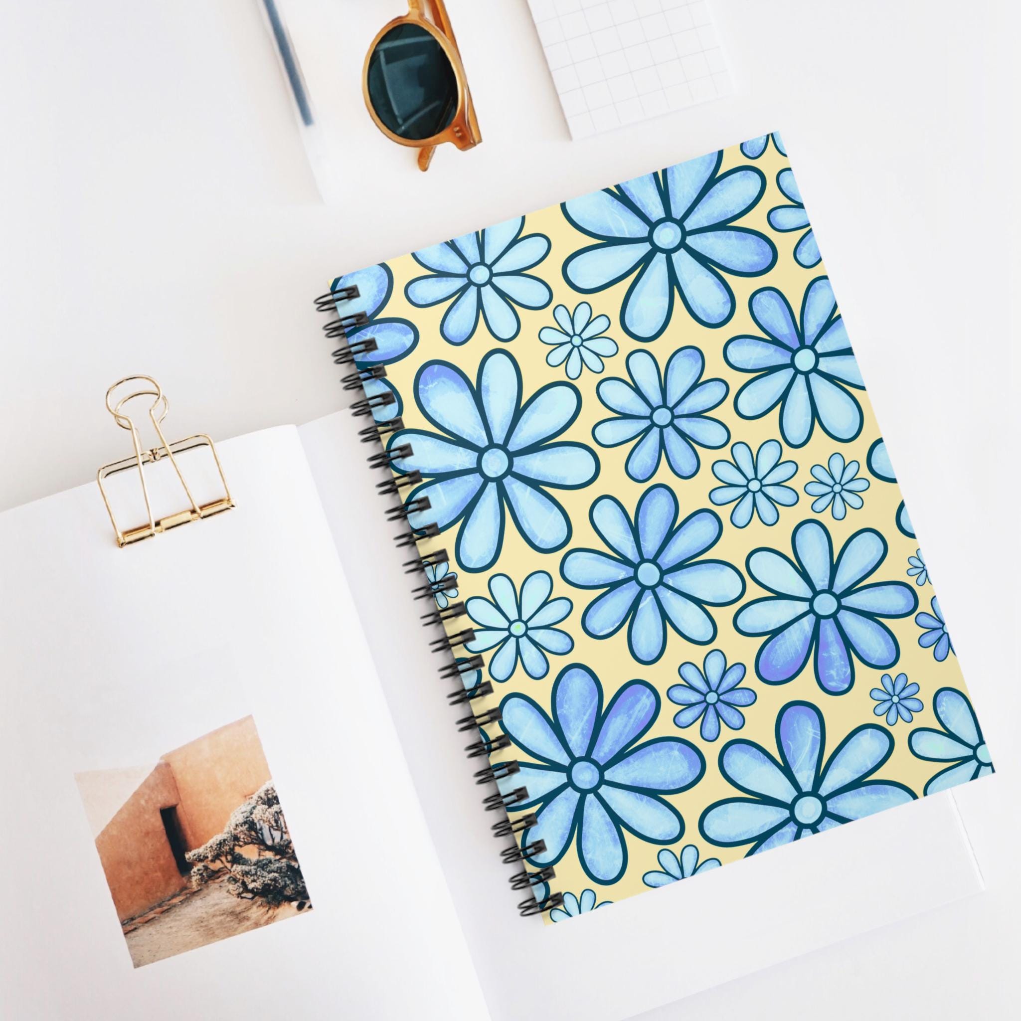 This spiral notebook brings a cheerful, hand-painted floral cover into everyday note-taking. The compact 6" x 8" size tucks into bags and sits comfortably on a lap. Inside, 118 ruled pages of smooth 90gsm paper take ink without bleed-through, while a metal spiral allows pages to lie flat or be removed cleanly. A discreet document pocket inside the back cover holds receipts, notes, or loose sketches. The bright blue blossoms against a soft yellow background create a warm, optimistic vibe—great for daily journaling, meeting notes, classwork, or creative planning.