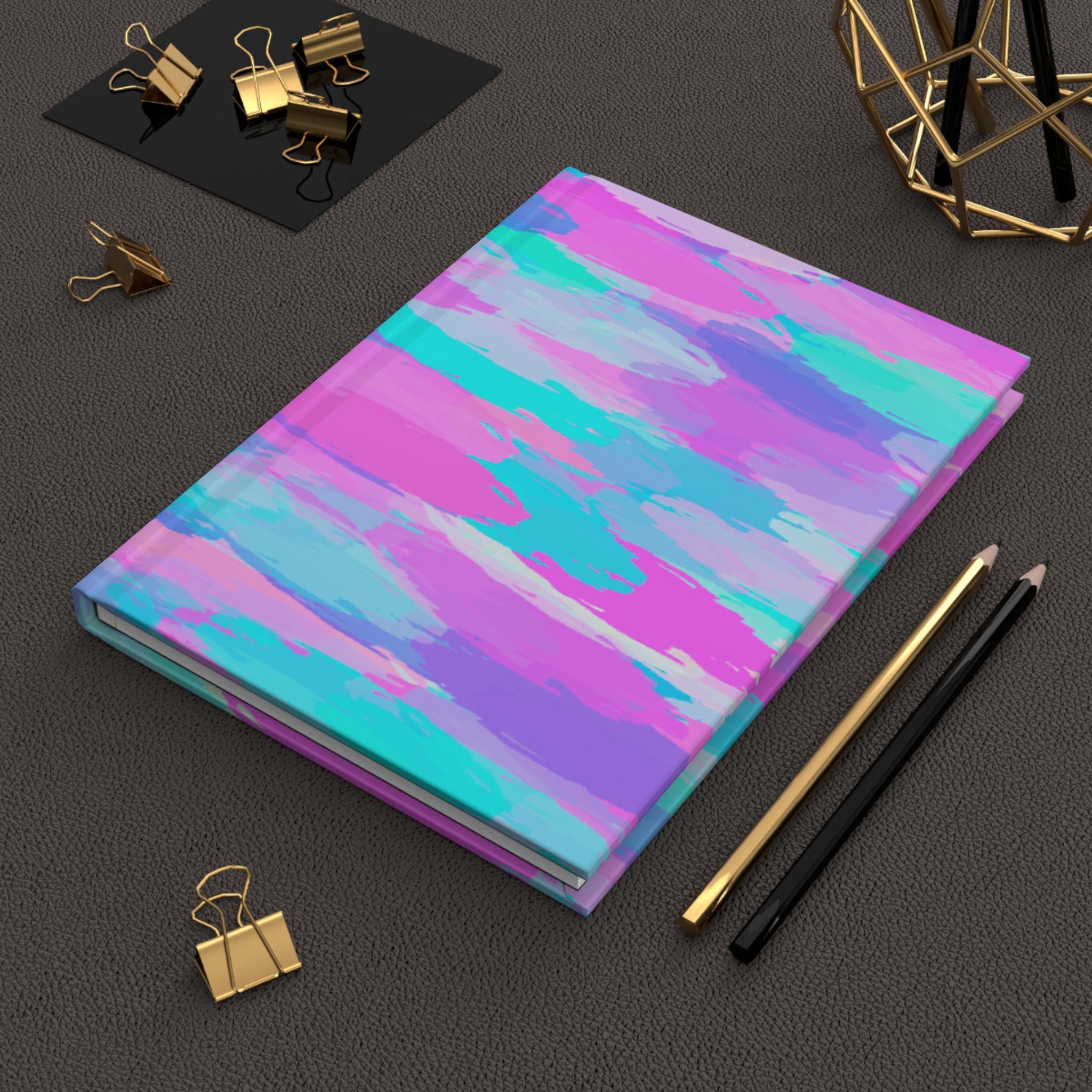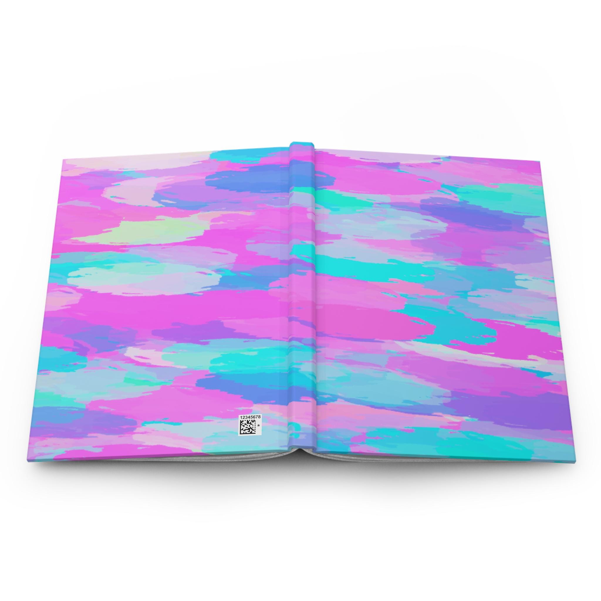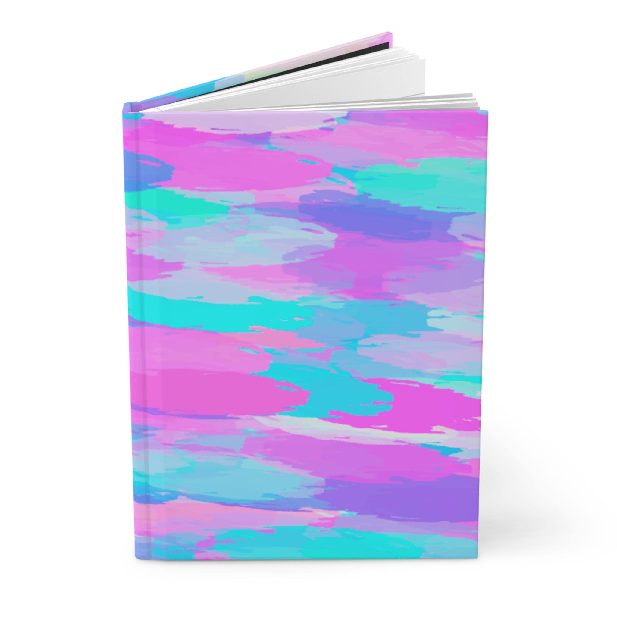 This matte hardcover journal brings bright, painterly color to everyday notes and creative bursts. The full wraparound print shows soft, cloud-like strokes of pink, teal, lavender and mint, creating a playful, dreamy surface that invites doodles, lists, and reflections. The durable matte laminated cover feels smooth in hand and resists scuffs, while the sewn case wrap binding keeps the spine flexible, so the journal opens flat for comfortable writing. Inside, 150 lined pages with perforations let you keep pages tidy or tear them out when you want to share a sketch or pin up a note. Sturdy, vibrant, and lightly whimsical — it slips into a bag or onto a shelf and quietly brightens the day.