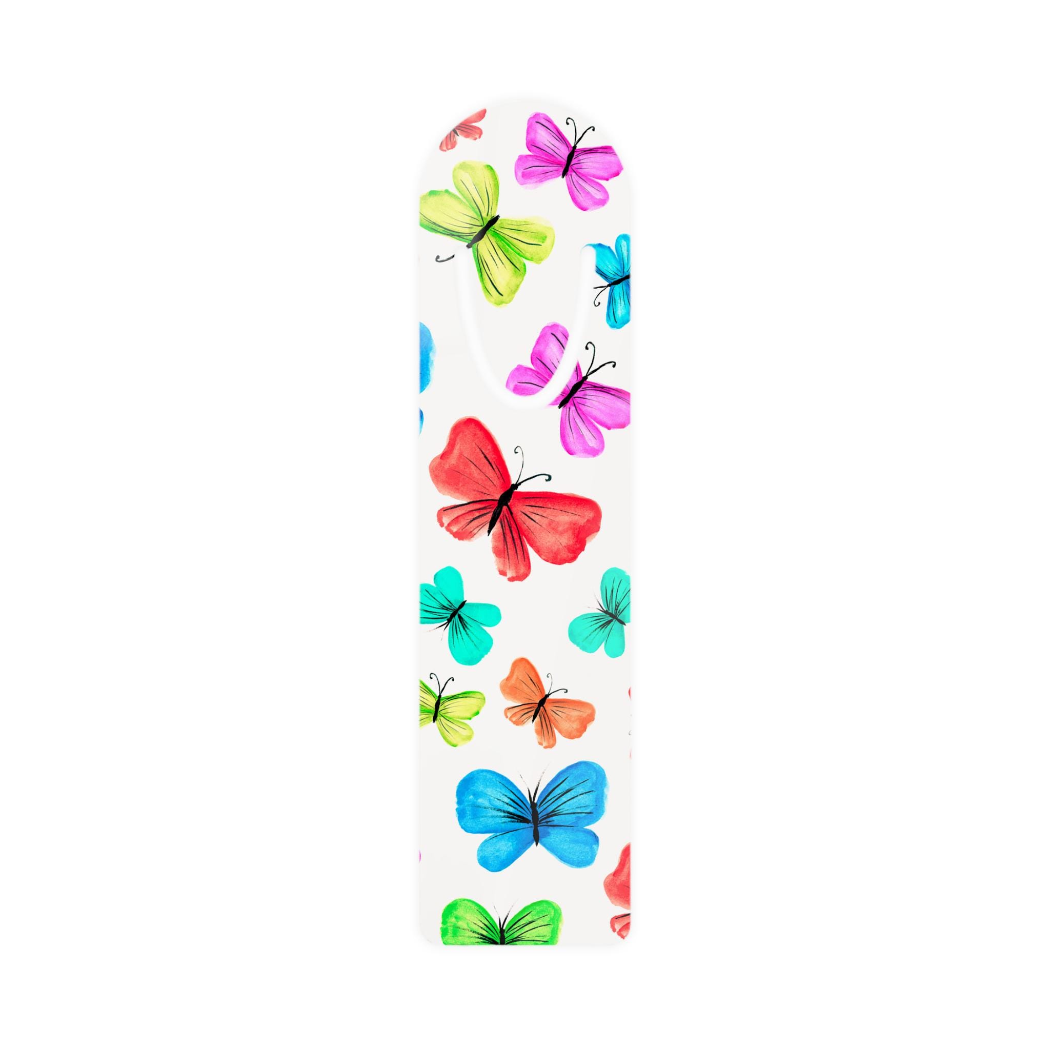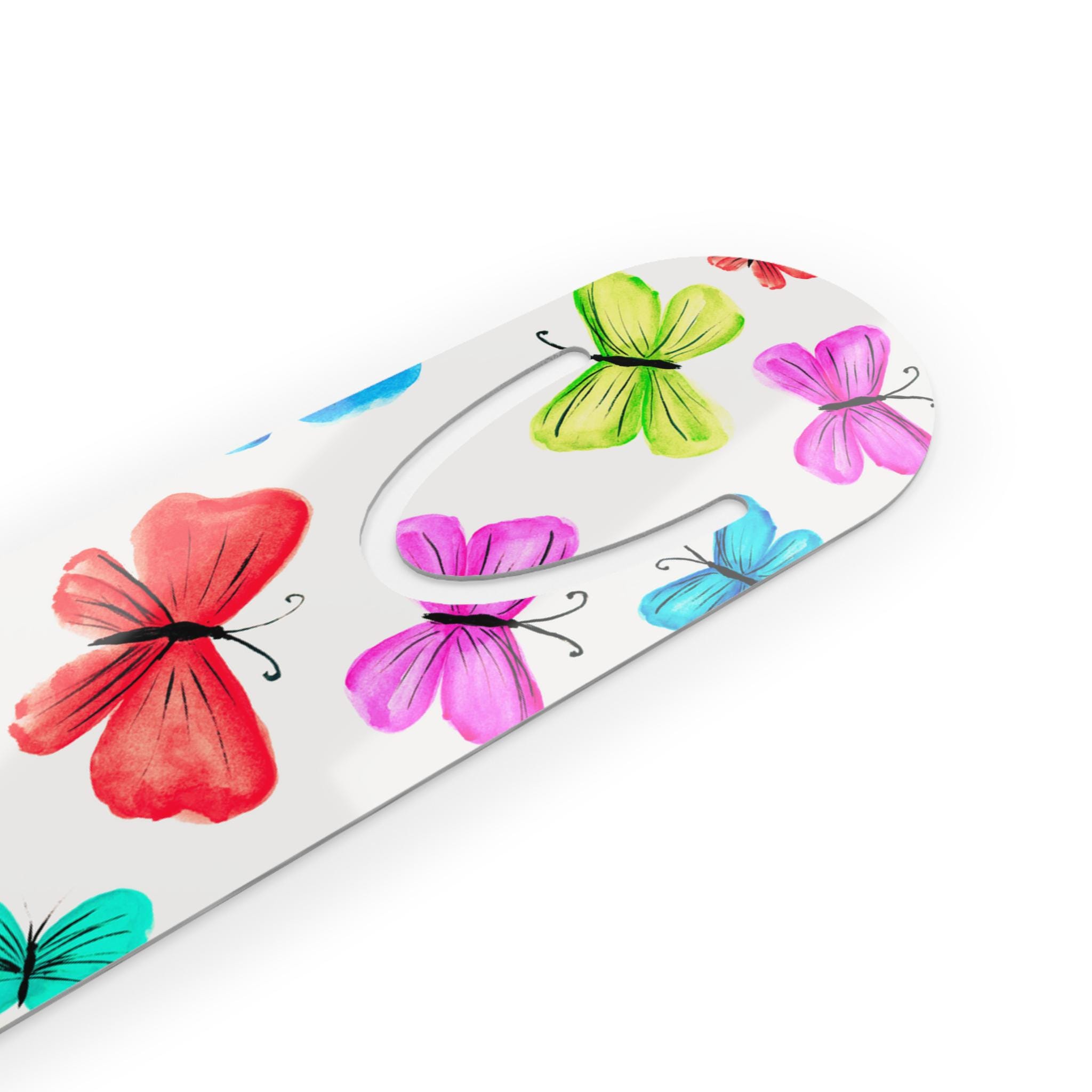 Bright, slim, and surprisingly weightless, this aluminum bookmark brings a splash of color to every quiet reading moment. One side features a lively watercolor butterfly pattern that feels playful and serene on a clean white background. The slim U-shaped slot at the top holds your place securely without damaging pages, while rounded edges make it comfortable to slide in and out. Durable aluminum construction with vivid print keeps the design popping through many reads, and the featherlight feel means it never drags down your book. Assembled in the USA from globally sourced parts, it’s a small, thoughtful touch for anyone who treats books as companions.