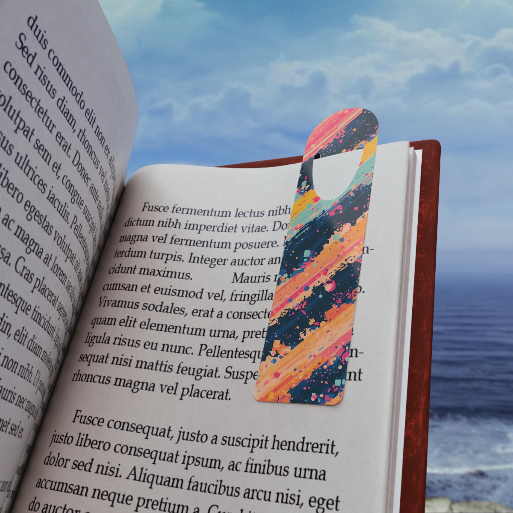Thin, lightweight aluminum bookmark with a rounded top and a clever U-shaped slot to securely hold your place. One side features a vivid, full-color print using modern printing techniques for bright, crisp imagery; the reverse shows a sleek brushed aluminum finish. It feels smooth in hand, adds a pop of color to any page, and slips easily between sheets without adding bulk. Assembled in the USA from globally sourced parts, it’s built to last and keeps your most-read books looking loved.