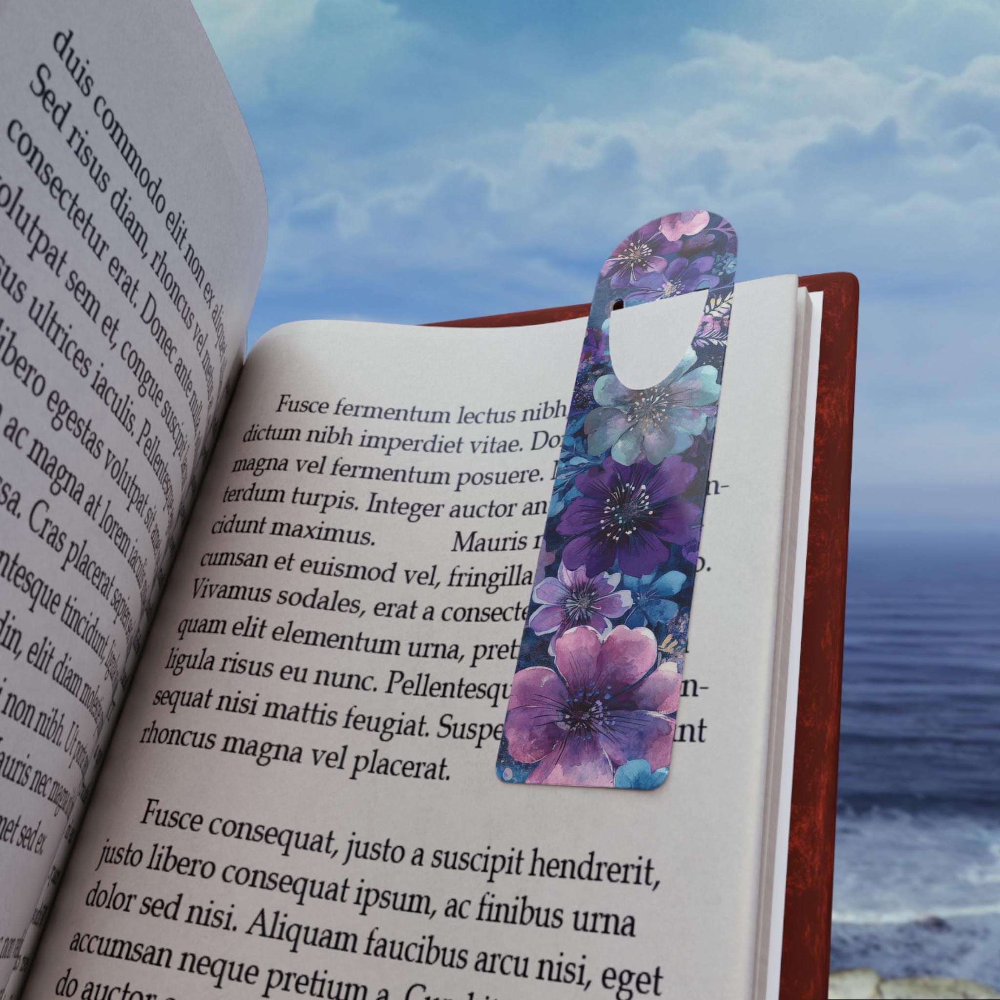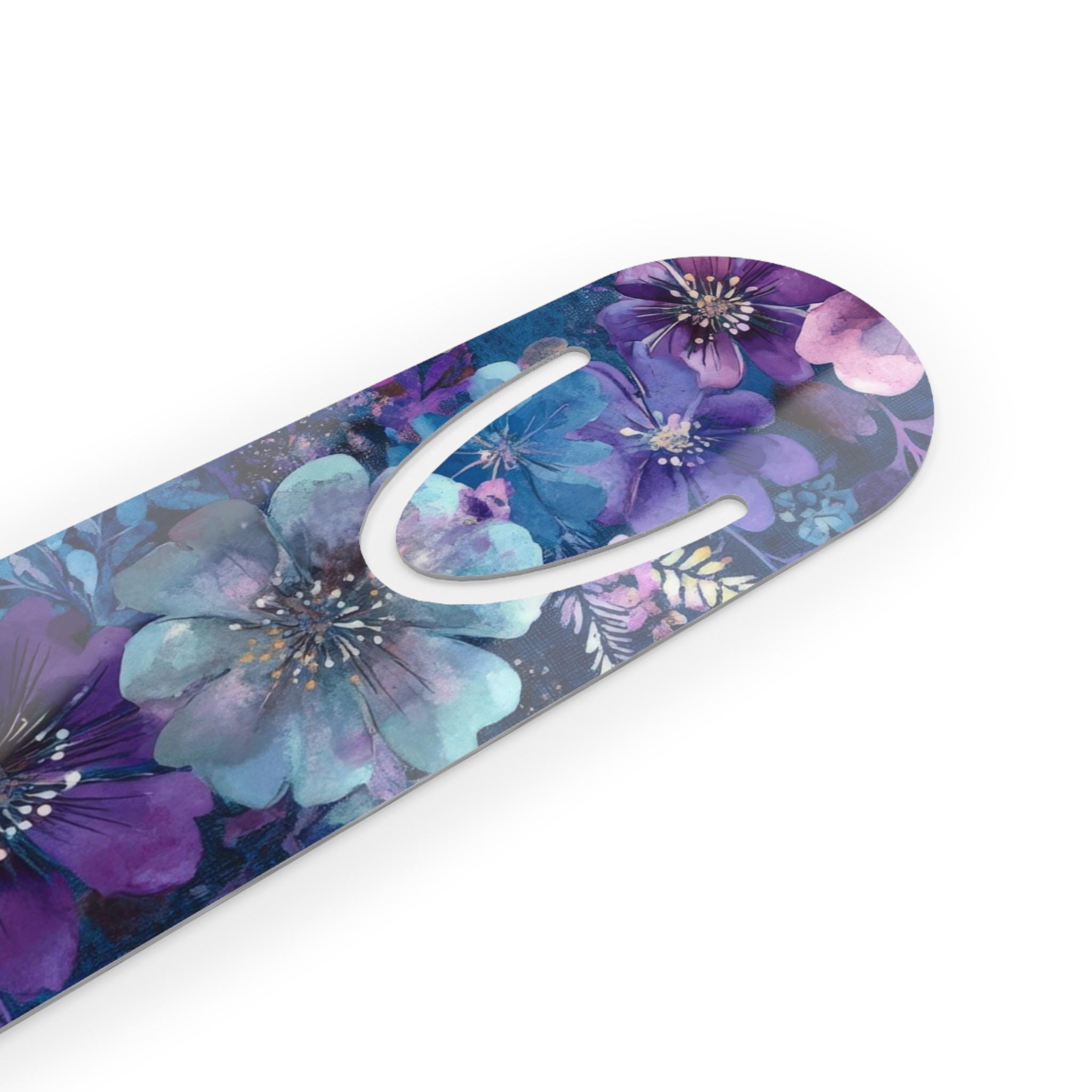 A slim, lightweight aluminum bookmark with a single-sided floral design that brings a quiet moment of beauty to every reading session. The rounded-top metal strip slides gently between pages while the U-shaped slot grips the page without tearing. Bright, crisp colors sit on a white front for vivid contrast, and the aluminum base gives it a cool, durable feel that slips easily into any book or journal. Carry it in a tote, leave it in a favorite novel, or tuck it into a planner—this bookmark adds a small, deliberate touch of charm to the everyday ritual of reading.